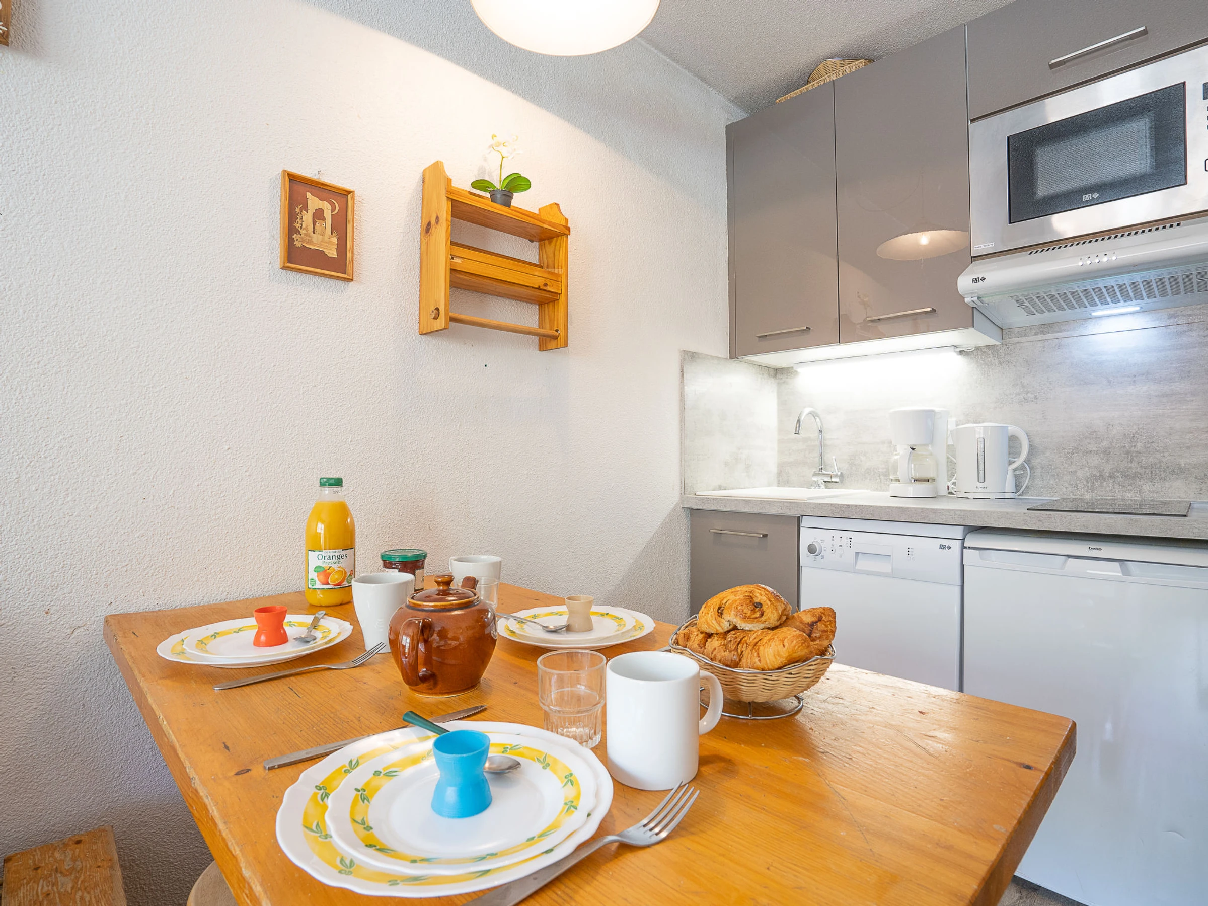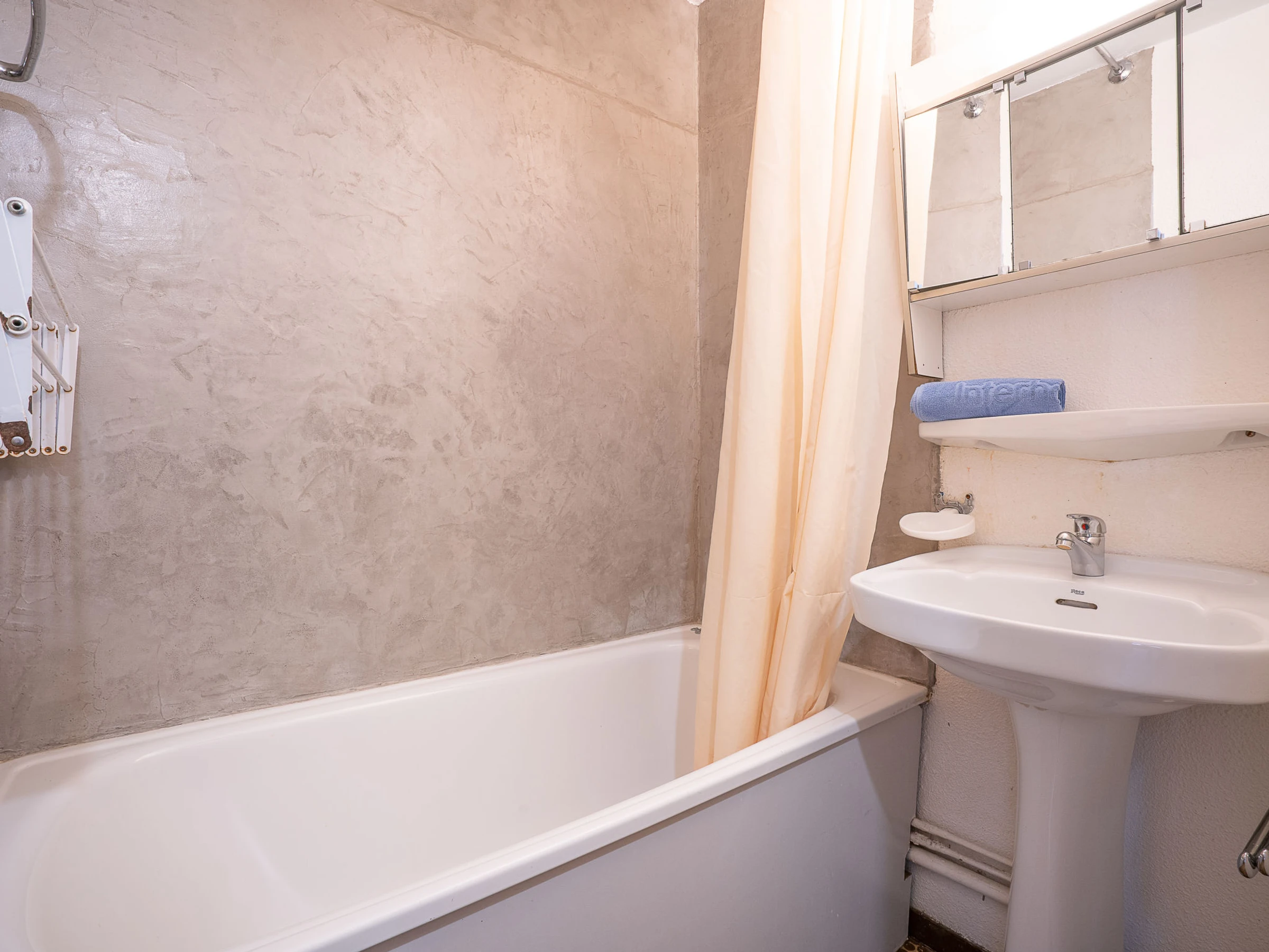 "vanoise 578", 1-Zimmer-Studio 21 m2 im 5. Stock, Nordostlage. Teilweise renoviert im Jahre 2020, zweckmässig und schön eingerichtet: Wohn-/Esszimmer mit 1 Doppeldiwanbett (1 x 140 cm, Länge 190 cm), TV (Flachbildschirm), E-Heizofen. Ausgang zum Balkon, Richtung Nordosten. Eingang mit 1 x 2 Etagenbetten (80 cm, Länge 190 cm). Kochnische (Geschirrspüler, 2 Glaskeramikplatten, Wasserkocher, Mikrowelle, elektrische Kaffeemaschine). Bad, sep. WC. Kleiner Balkon 2 m2, Nordostlage. Zur Verfügung: Internet (Wireless LAN, extra). Bitte beachten: Nichtraucher-Unterkunft. Rauchmelder. [hidden]
