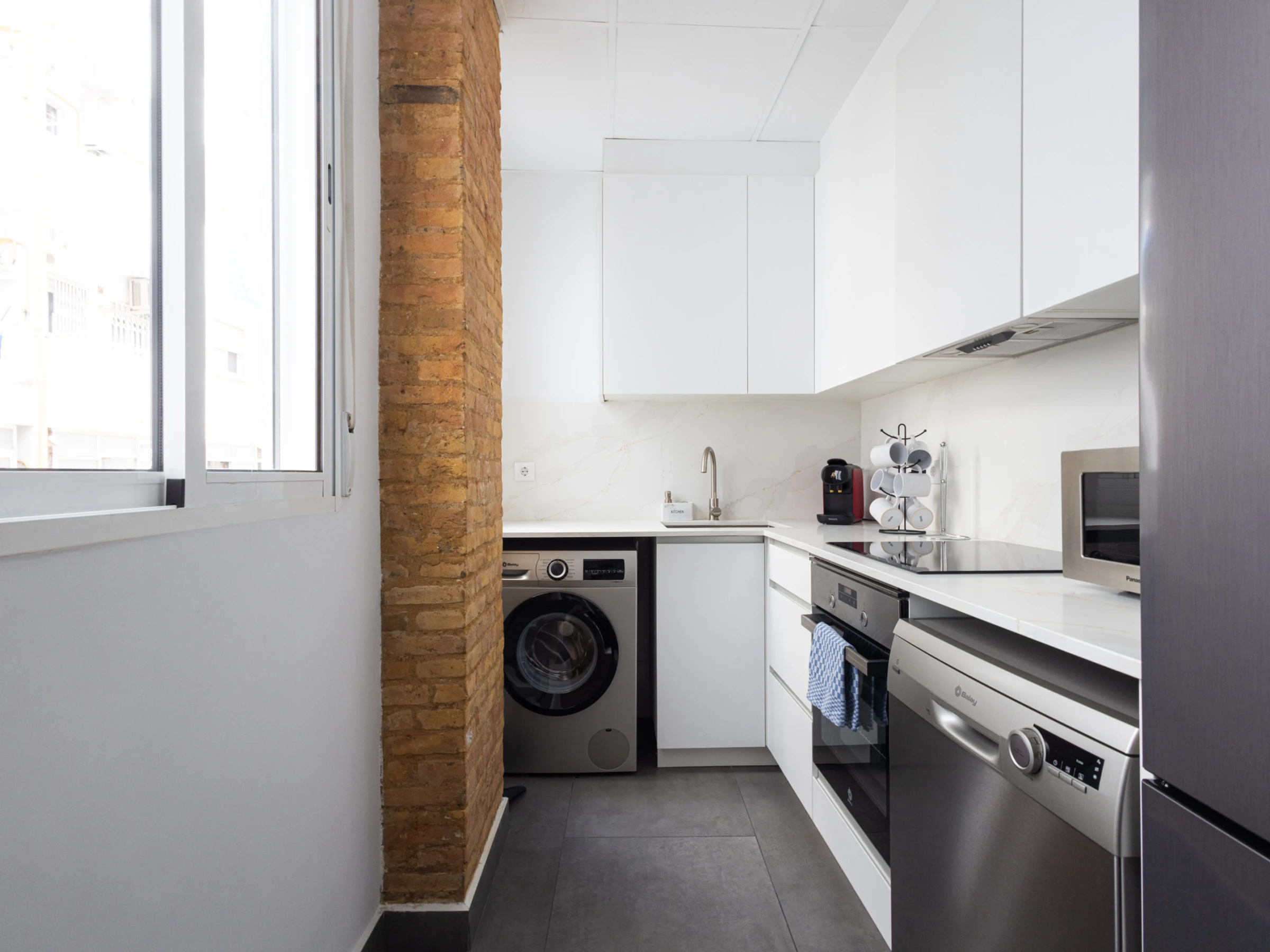 Dieses separate küche, mit ceranfeld, ist ausgestattet in kühlschrank, mikrowelle, backofen, gefrierschrank, spülmaschine, geschirr/besteck, kochutensilien, kaffeemaschine, toaster, wasserkocher und saftpresse.