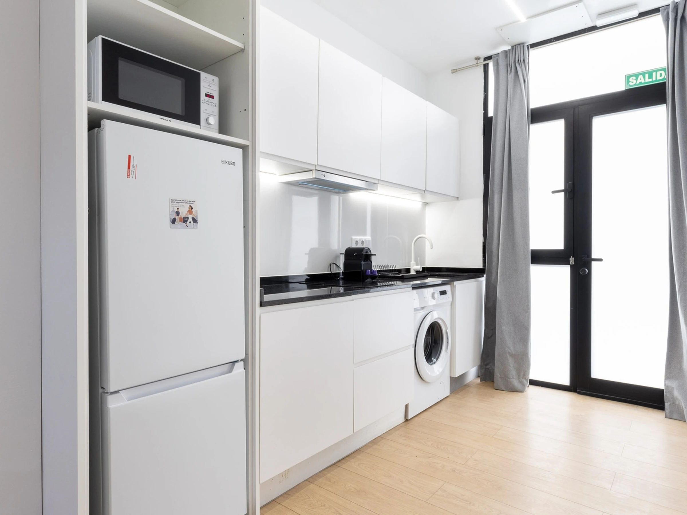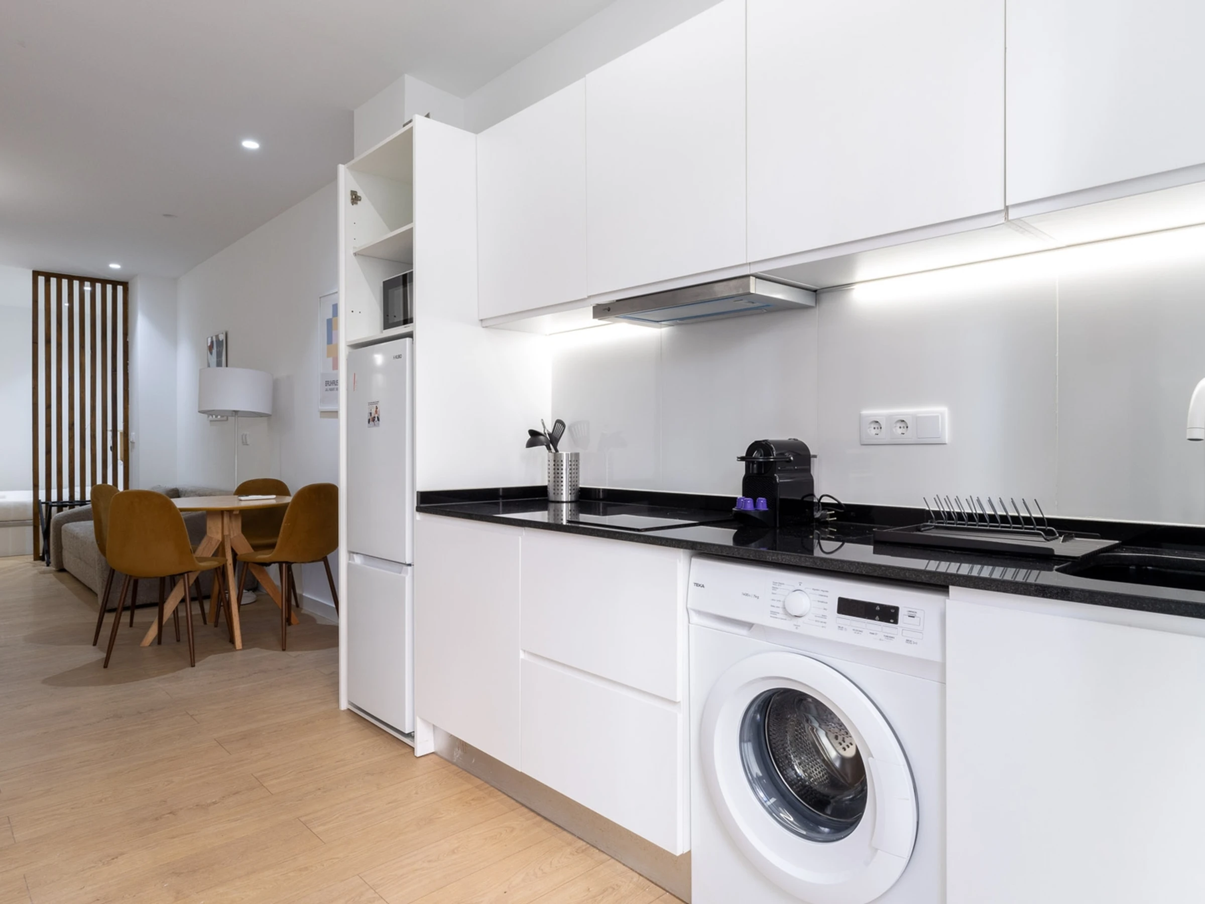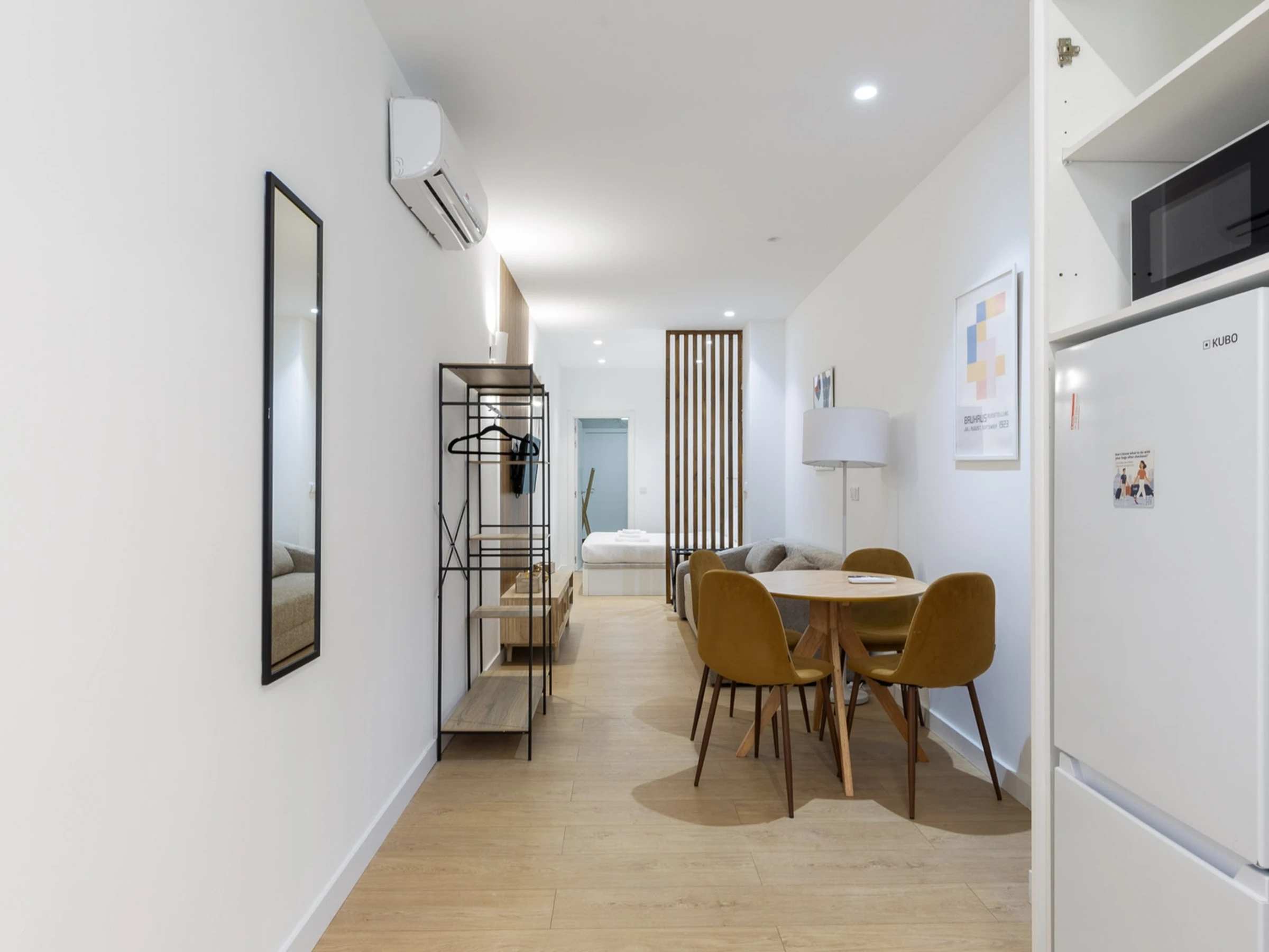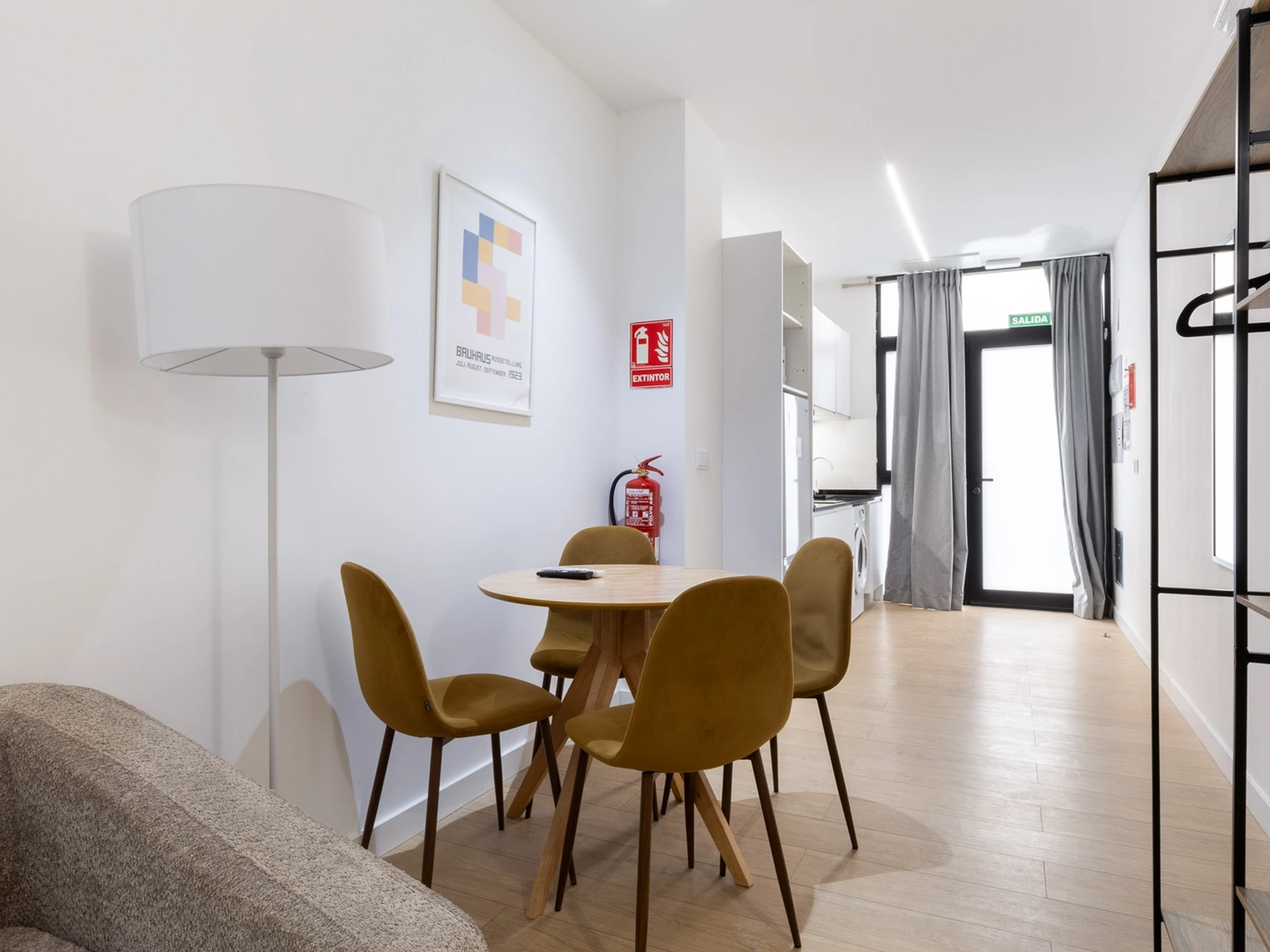 Die Küche ist komplett ausgestattet mit allen notwendigen Geräten, darunter eine Nespresso-Kaffeemaschine für einen entspannten Start in den Tag, eine Mikrowelle für die schnelle Zubereitung von Mahlzeiten und ein Wasserkocher für Ihre Lieblingsgetränke. Dank kostenlosem WLAN bleiben Sie stets in Verbindung und können private oder berufliche Angelegenheiten erledigen. Die günstige Lage ermöglicht es Ihnen, die charmanten Cafés, Restaurants und Geschäfte von Ruzafa in wenigen Schritten zu erreichen und in das pulsierende Leben der Stadt einzutauchen. Auch die beeindruckenden Kultur- und Architekturdenkmäler der Stadt der Künste und Wissenschaften mit ihren faszinierenden Ausstellungen, mitreißenden Shows und atemberaubenden Ausblicken sind bequem zu erreichen. Ob Sie geschäftlich oder privat reisen – unser Studio bietet den perfekten Ort zum Entspannen, Auftanken und Genießen all dessen, was Valencia zu bieten hat. Wir freuen uns, Sie bald bei uns begrüßen zu dürfen!