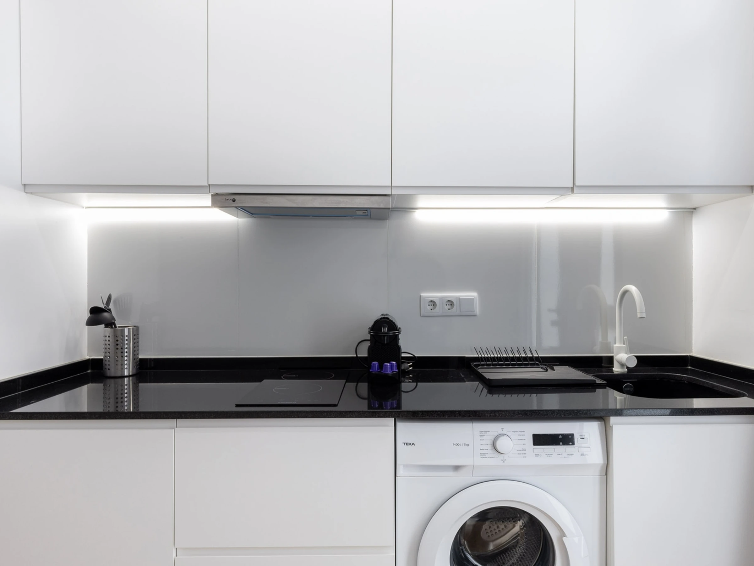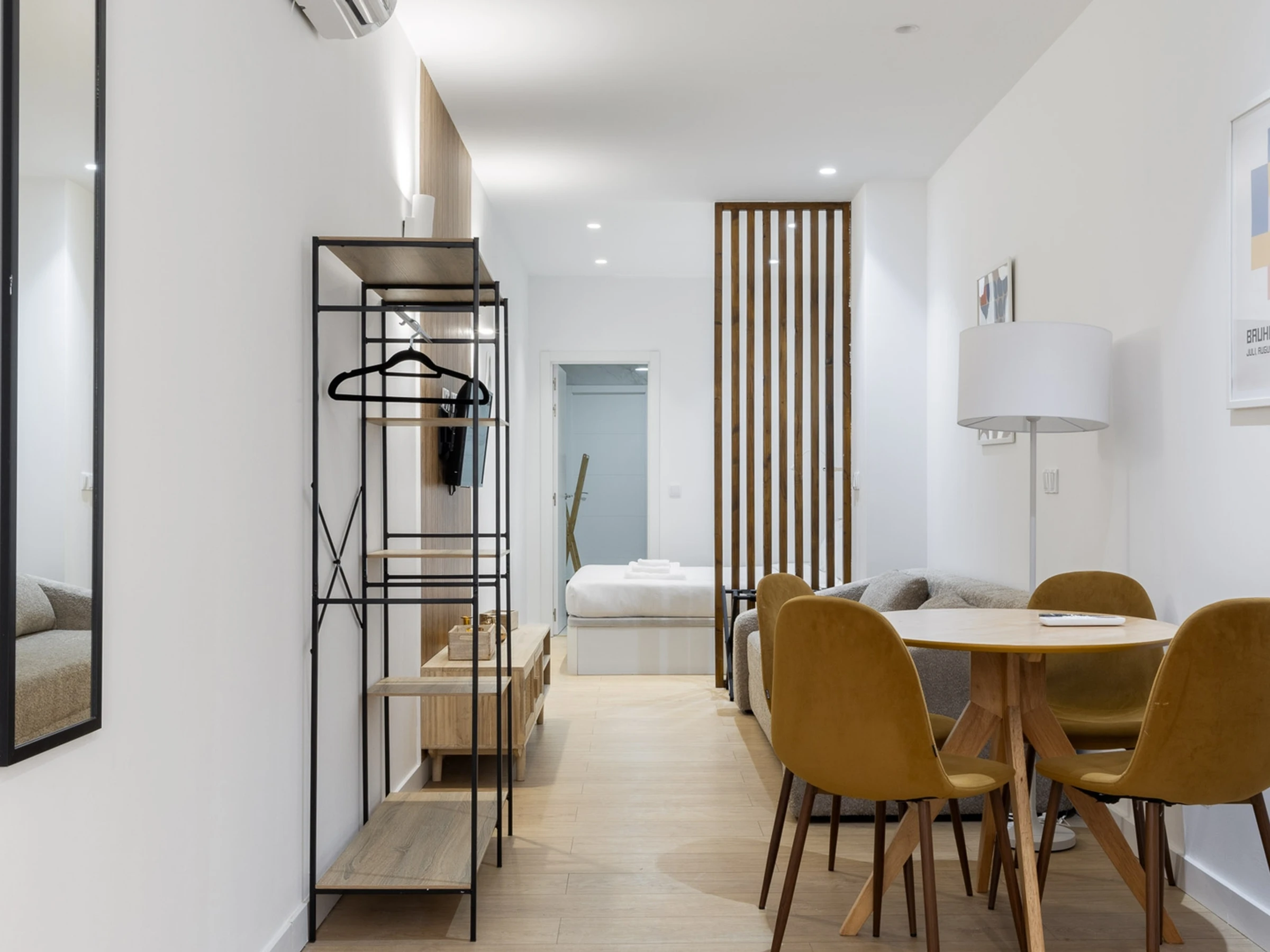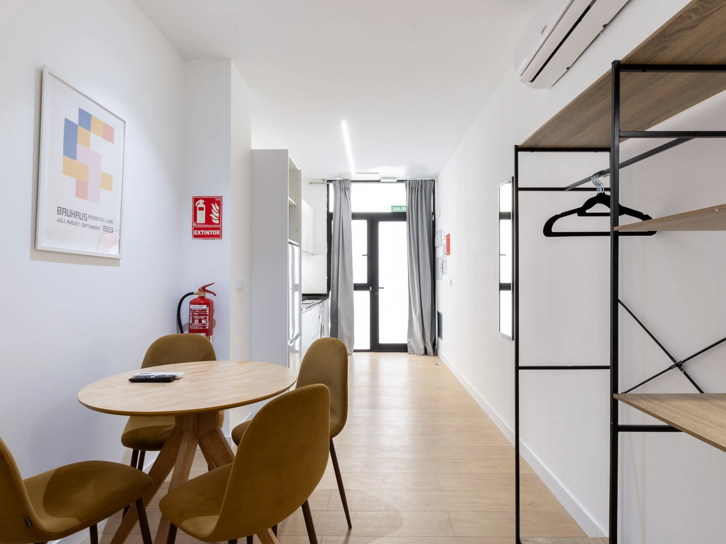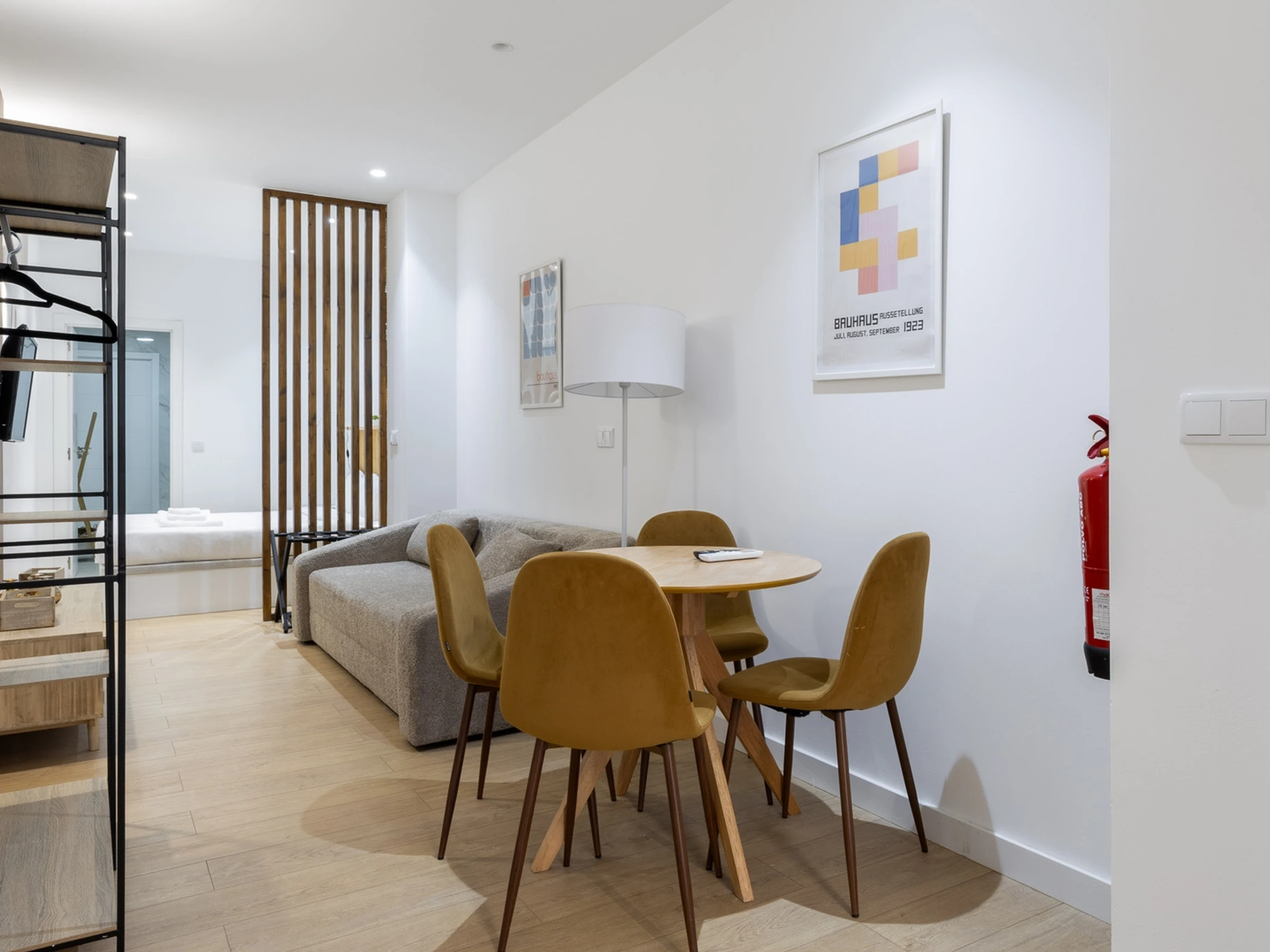 Die Küche ist komplett ausgestattet mit allen notwendigen Geräten, darunter eine Nespresso-Kaffeemaschine für einen entspannten Start in den Tag, eine Mikrowelle für die schnelle Zubereitung von Mahlzeiten und ein Wasserkocher für Ihre Lieblingsgetränke. Dank kostenlosem WLAN bleiben Sie stets in Verbindung und können private oder berufliche Angelegenheiten erledigen. Die günstige Lage ermöglicht es Ihnen, die charmanten Cafés, Restaurants und Geschäfte von Ruzafa in wenigen Schritten zu erreichen und in das pulsierende Leben der Stadt einzutauchen. Auch die beeindruckenden Kultur- und Architekturdenkmäler der Stadt der Künste und Wissenschaften mit ihren faszinierenden Ausstellungen, mitreißenden Shows und atemberaubenden Ausblicken sind bequem zu erreichen. Ob Sie geschäftlich oder privat reisen – unser Studio bietet den perfekten Ort zum Entspannen, Auftanken und Genießen all dessen, was Valencia zu bieten hat. Wir freuen uns, Sie bald bei uns begrüßen zu dürfen!