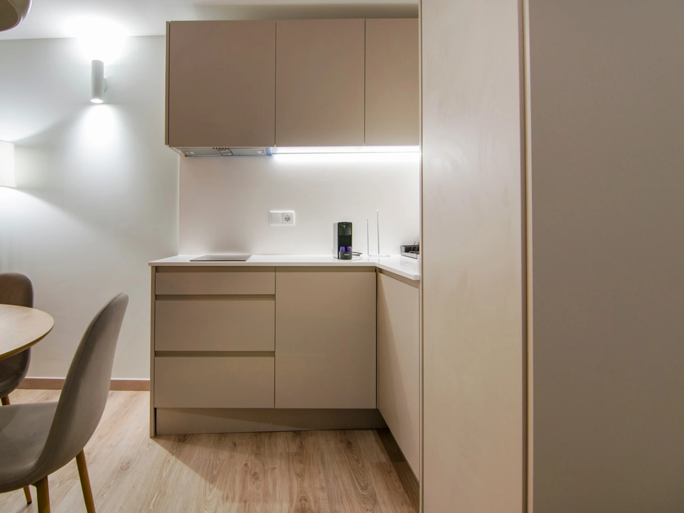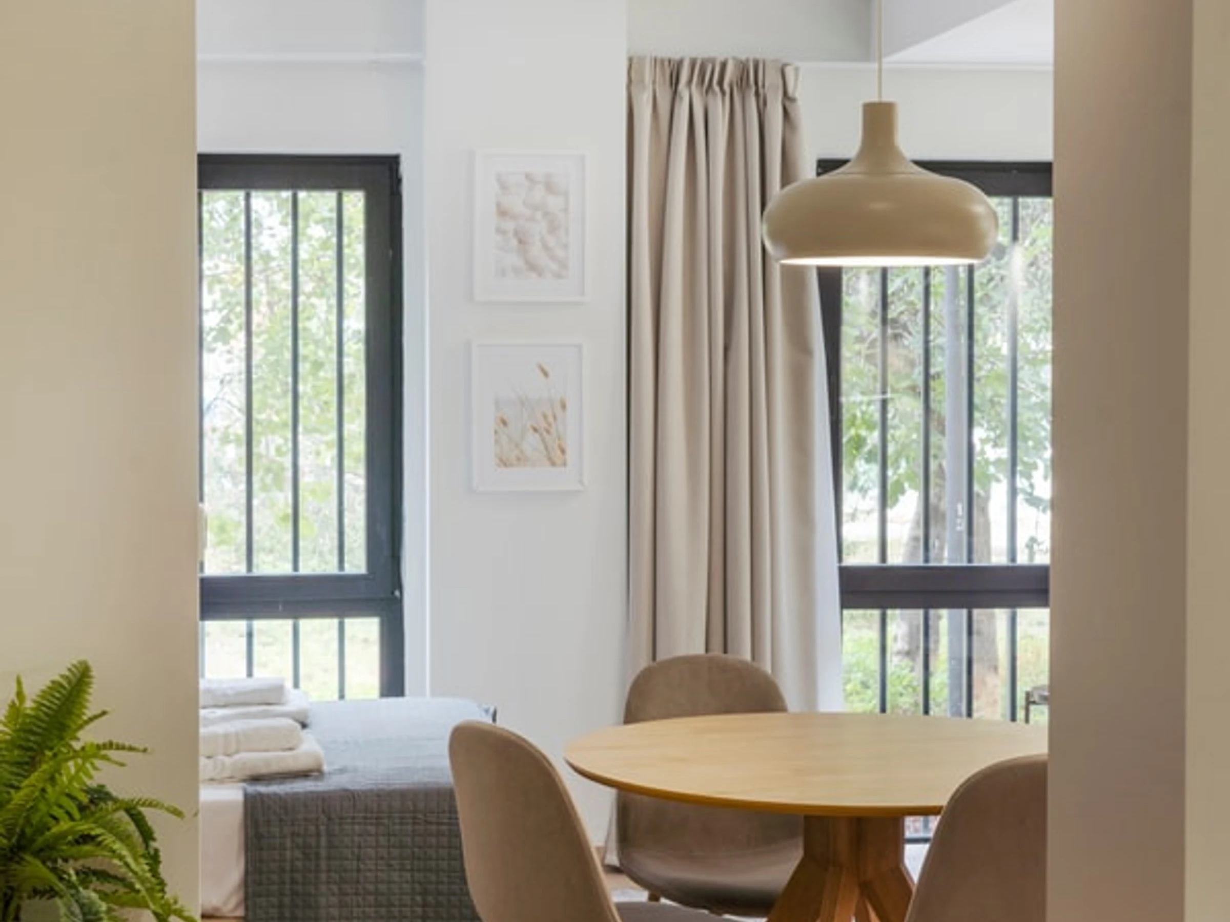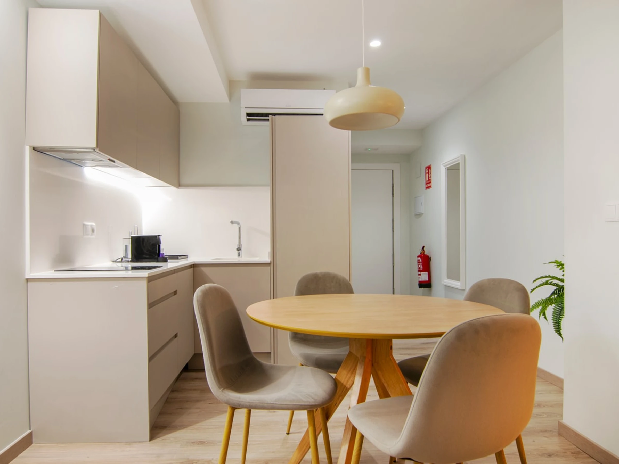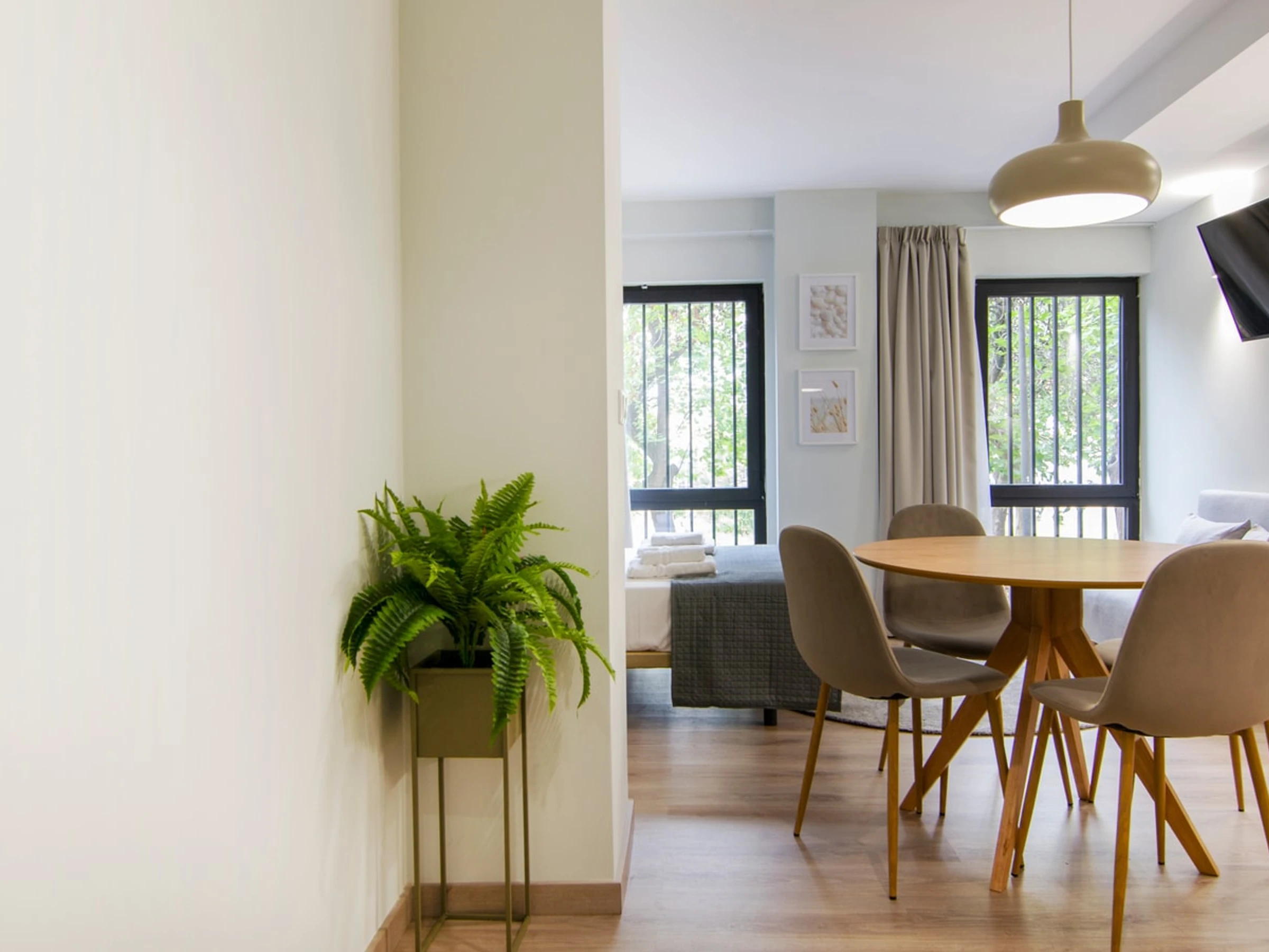 Entdecken Sie den Charme von Ruzafa in diesem modernen und kürzlich renovierten Studio-Apartment, das auf Komfort und Bequemlichkeit ausgelegt ist. Ideal für Alleinreisende oder Paare: Dieser schicke Wohnraum bietet eine einladende Atmosphäre zum Entspannen und Auftanken. Der offene Grundriss verbindet den gemütlichen Schlafbereich, das stilvolle Badezimmer und den gut gestalteten Wohnbereich harmonisch. Die Küchenzeile ist mit allen wichtigen Annehmlichkeiten wie Kochfeld, Mikrowelle und Kühlschrank ausgestattet, sodass Sie sich während Ihres Aufenthalts einfache Mahlzeiten zubereiten können. Erkunden Sie das künstlerische und trendige Flair von Ruzafa mit seiner vielfältigen Auswahl an Modeboutiquen, angesagten Cafés, Gourmetrestaurants und lebhaften Bars – alles nur wenige Schritte von Ihrer Wohnungstür entfernt.