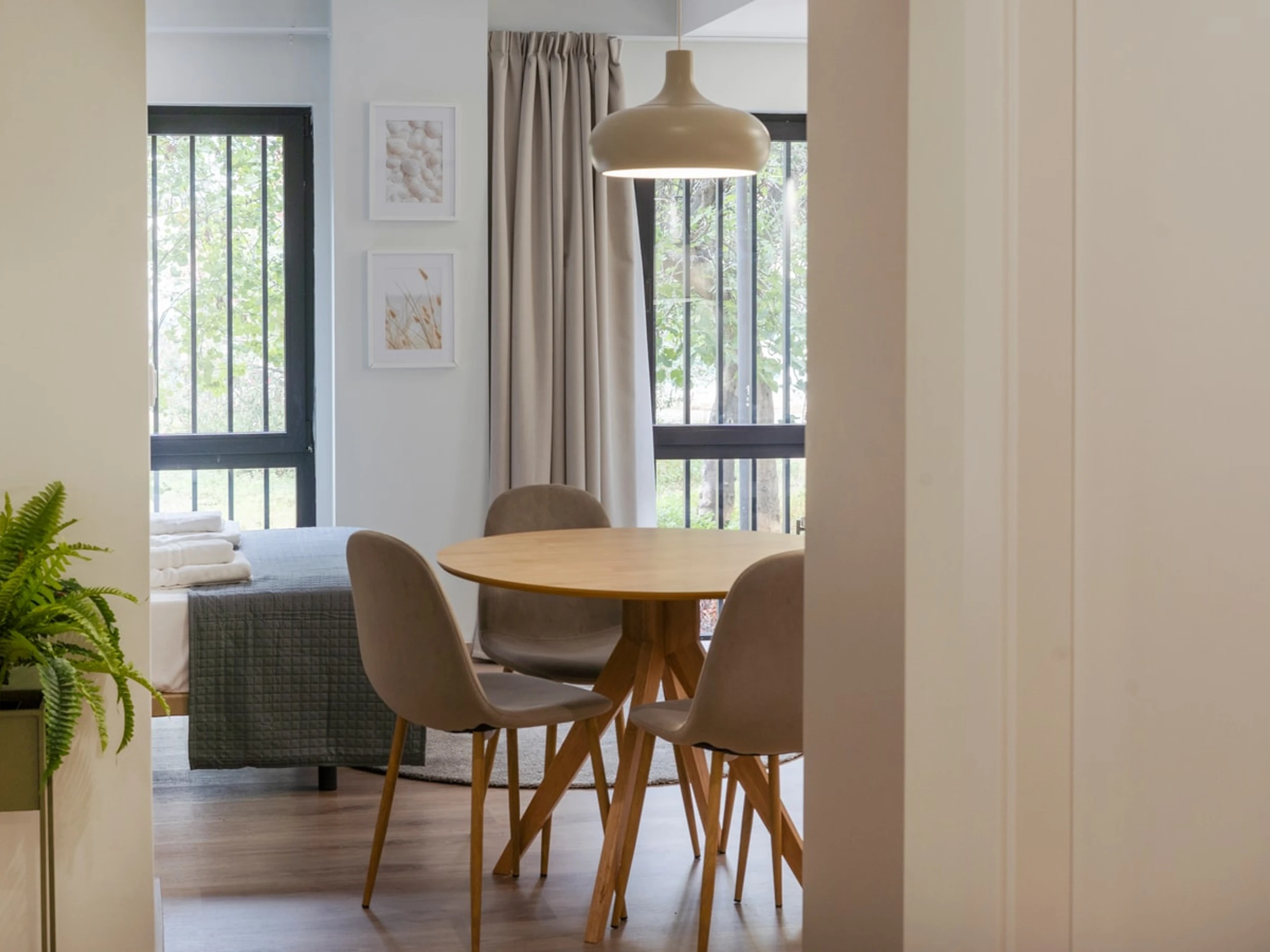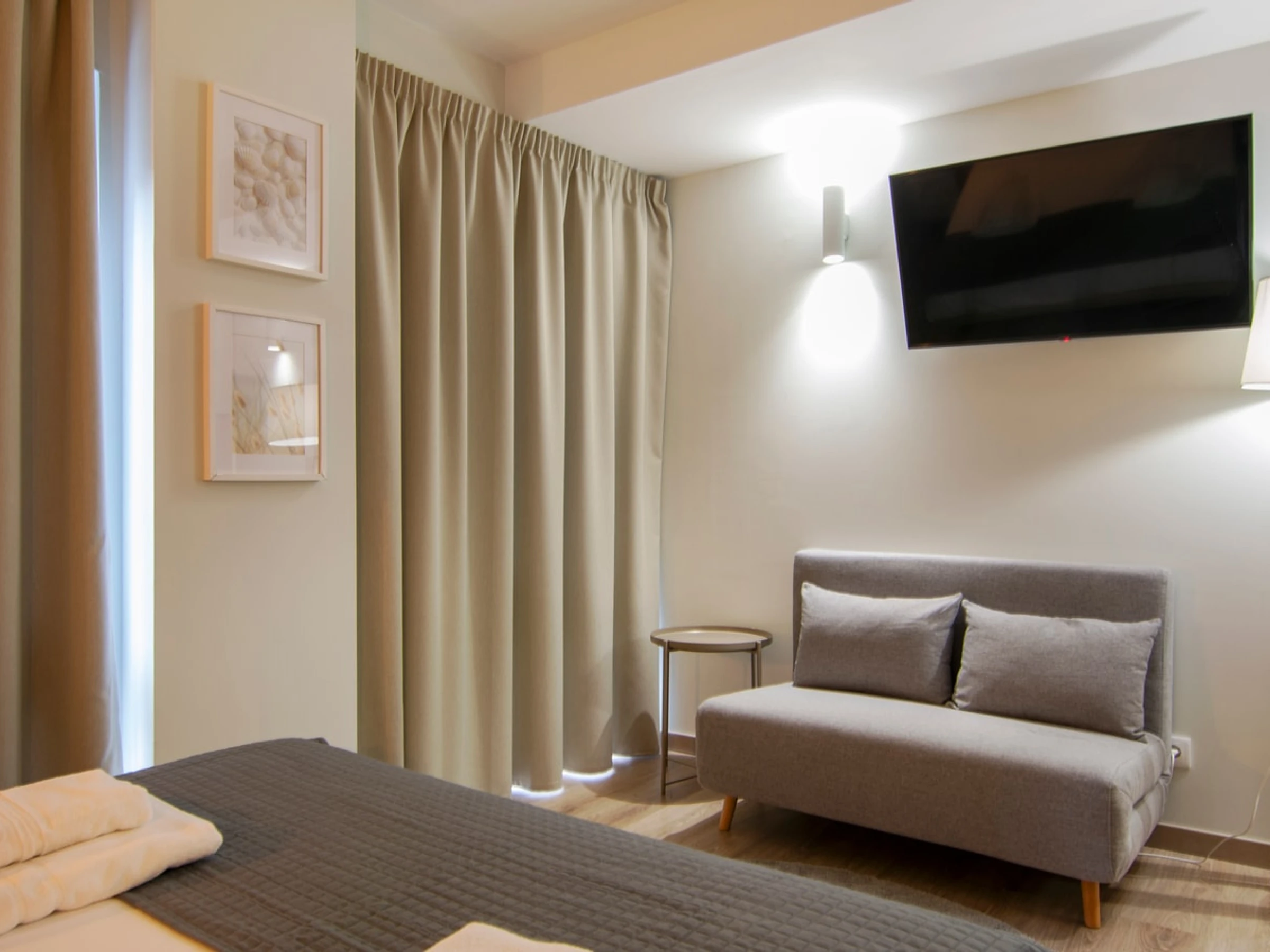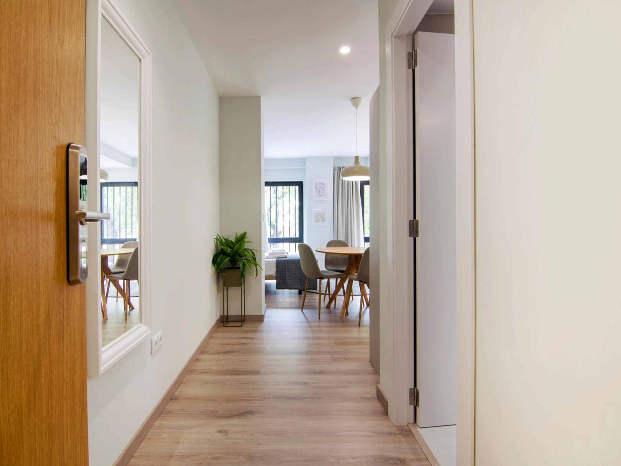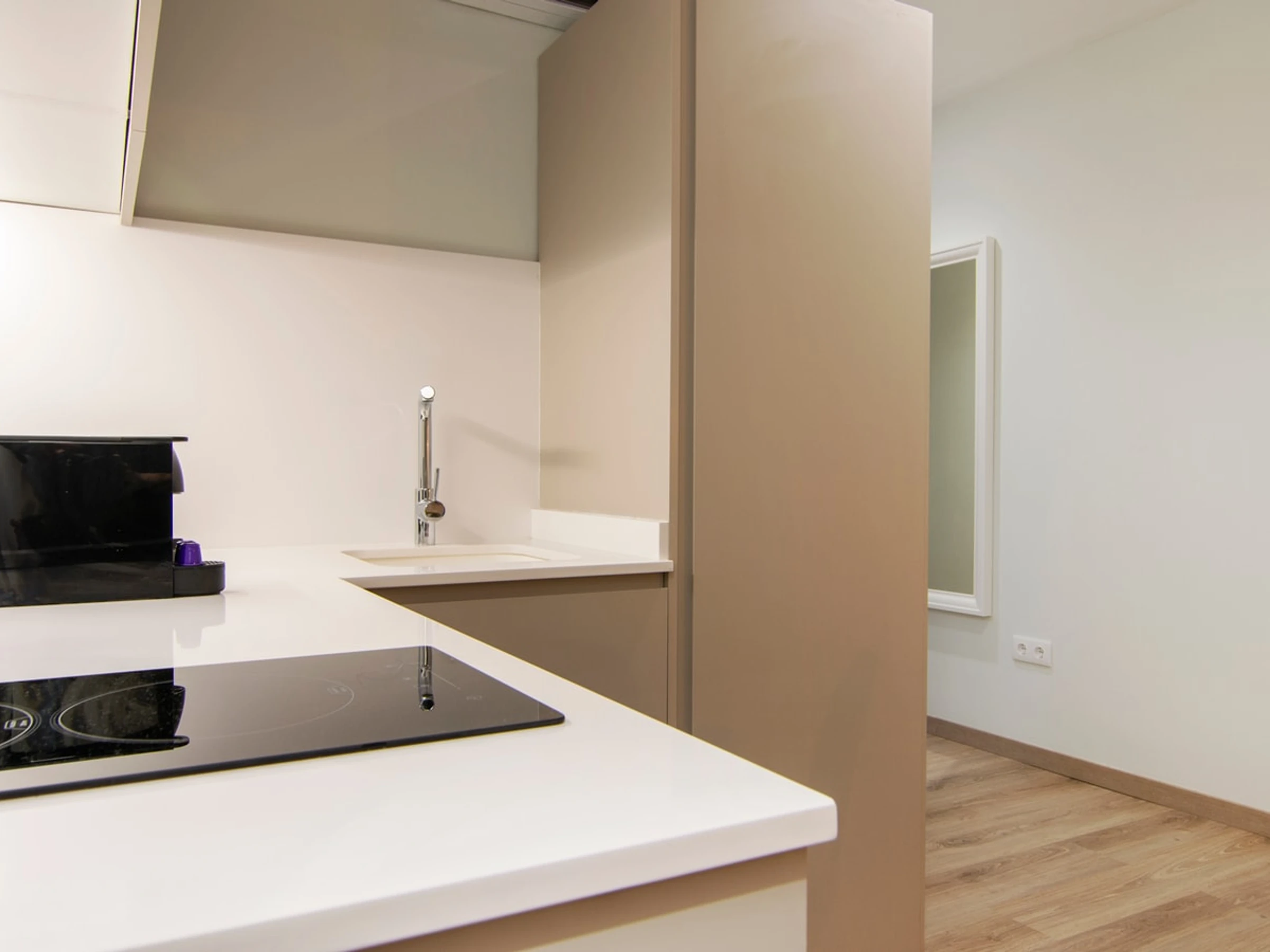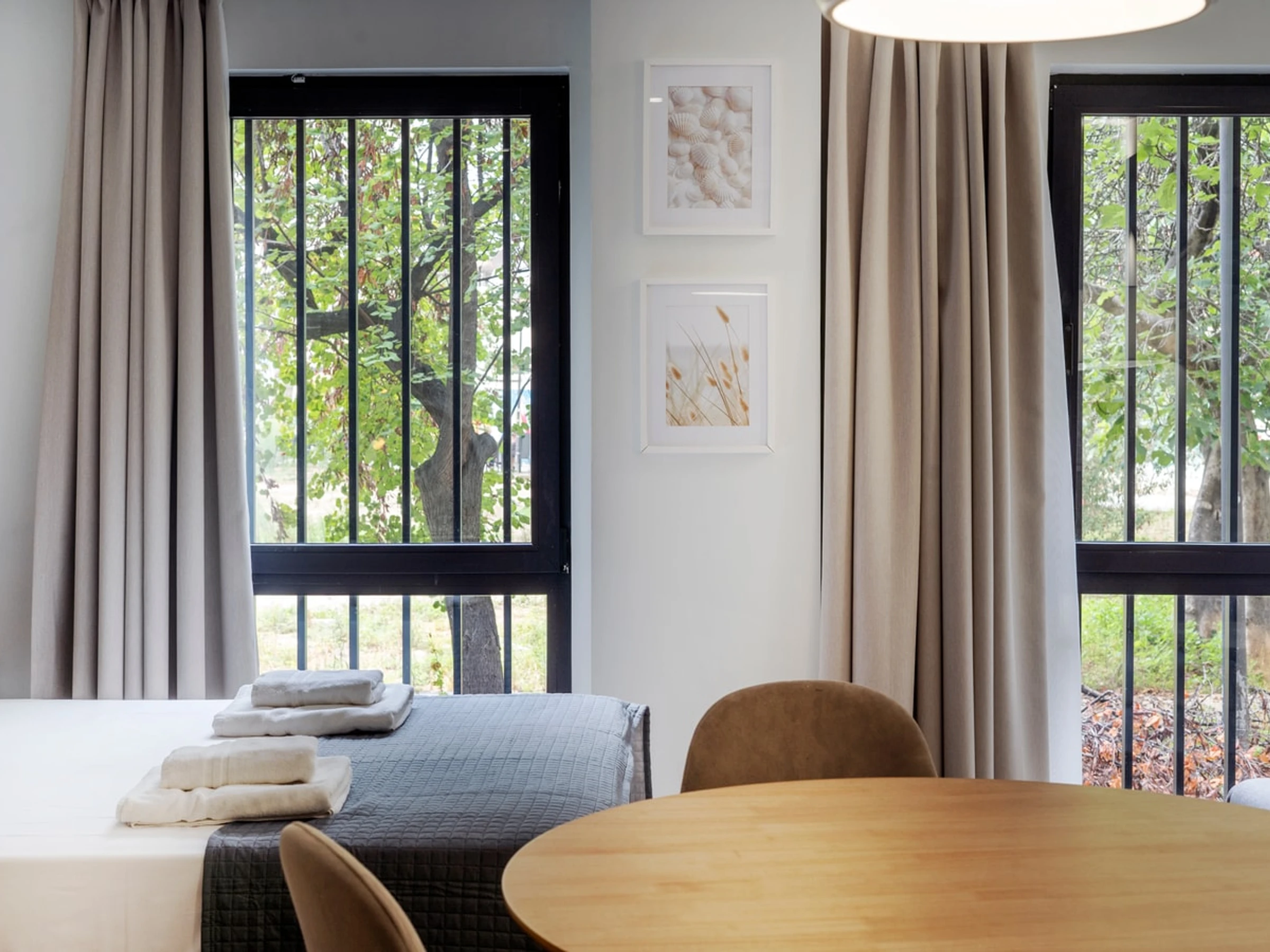 Entdecken Sie den Charme von Ruzafa in diesem modernen und kürzlich renovierten Studio-Apartment, das auf Komfort und Bequemlichkeit ausgelegt ist. Ideal für Alleinreisende oder Paare: Dieser schicke Wohnraum bietet eine einladende Atmosphäre zum Entspannen und Auftanken. Der offene Grundriss verbindet den gemütlichen Schlafbereich, das stilvolle Badezimmer und den gut gestalteten Wohnbereich harmonisch. Die Küchenzeile ist mit allen wichtigen Annehmlichkeiten wie Kochfeld, Mikrowelle und Kühlschrank ausgestattet, sodass Sie sich während Ihres Aufenthalts einfache Mahlzeiten zubereiten können. Erkunden Sie das künstlerische und trendige Flair von Ruzafa mit seiner vielfältigen Auswahl an Modeboutiquen, angesagten Cafés, Gourmetrestaurants und lebhaften Bars – alles nur wenige Schritte von Ihrer Wohnungstür entfernt.