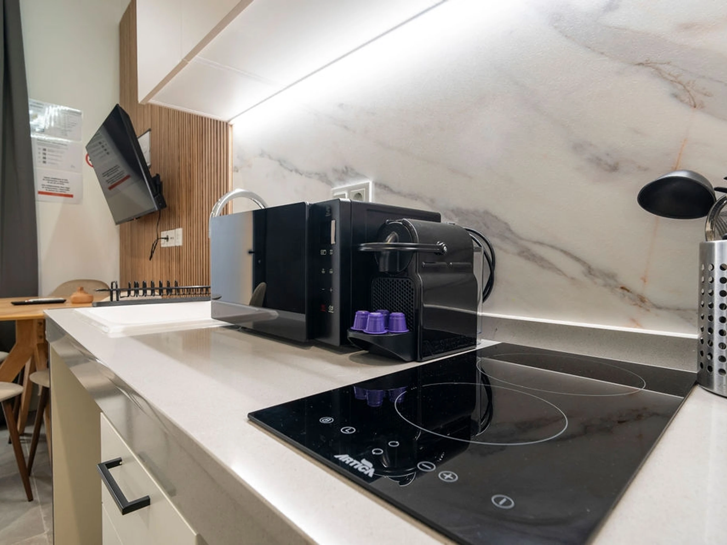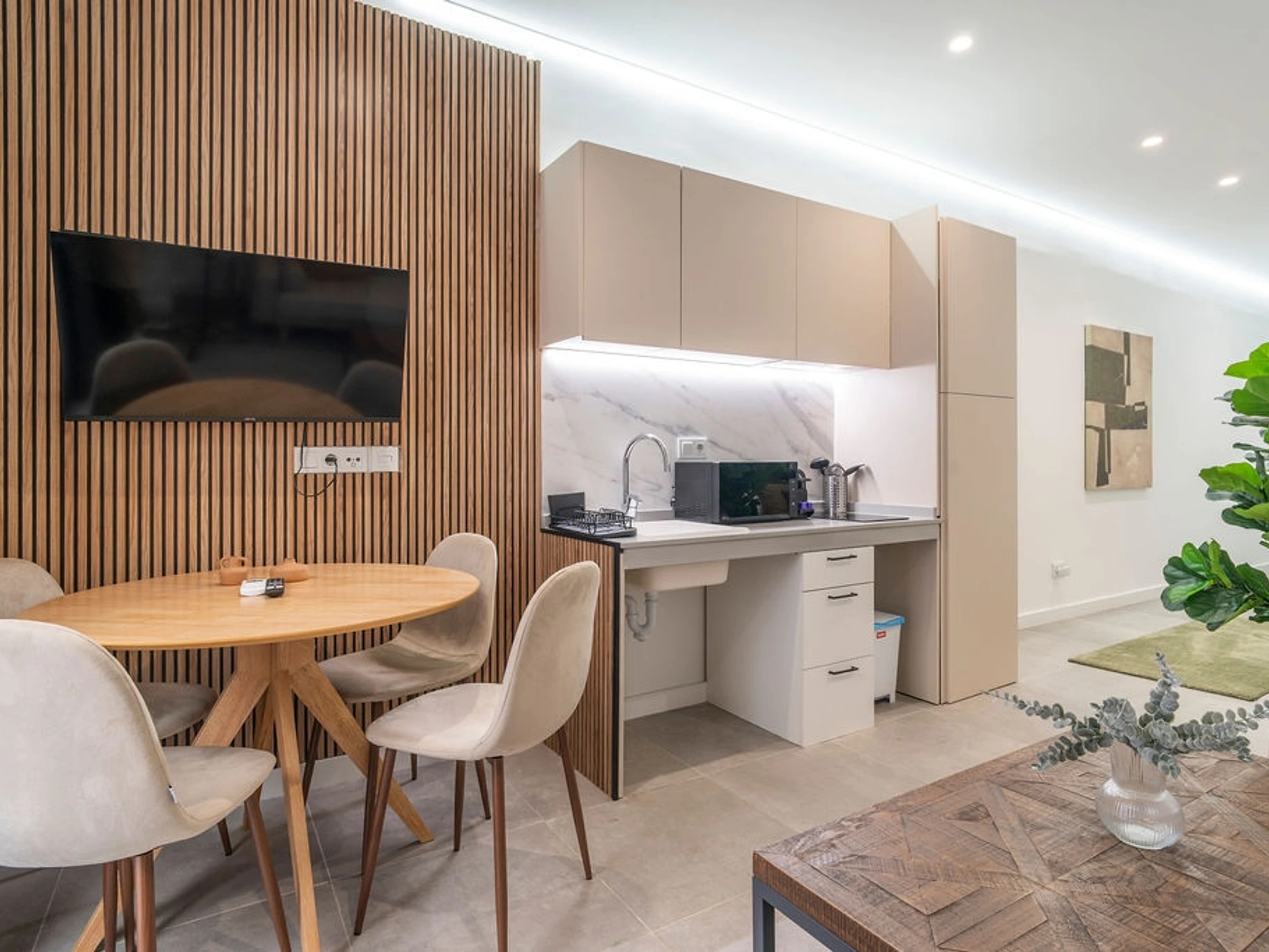 Ein ideales Studio-Apartment für einen Kurzurlaub in Valencia, direkt neben Ruzafa und in der Nähe der Stadt der Künste und Wissenschaften. Hell, modern und funktional – hier trifft zeitgenössisches Design auf warme Holzelemente. Zur Ausstattung gehören ein Doppelbett, ein Schlafsofa, eine voll ausgestattete Küche, schnelles WLAN, Klimaanlage und ein Smart Lock. Dank der zentralen Lage mit guter Anbindung an die Innenstadt und den Strand ist es die perfekte Wahl für Städtetrips und Geschäftsreisen.
