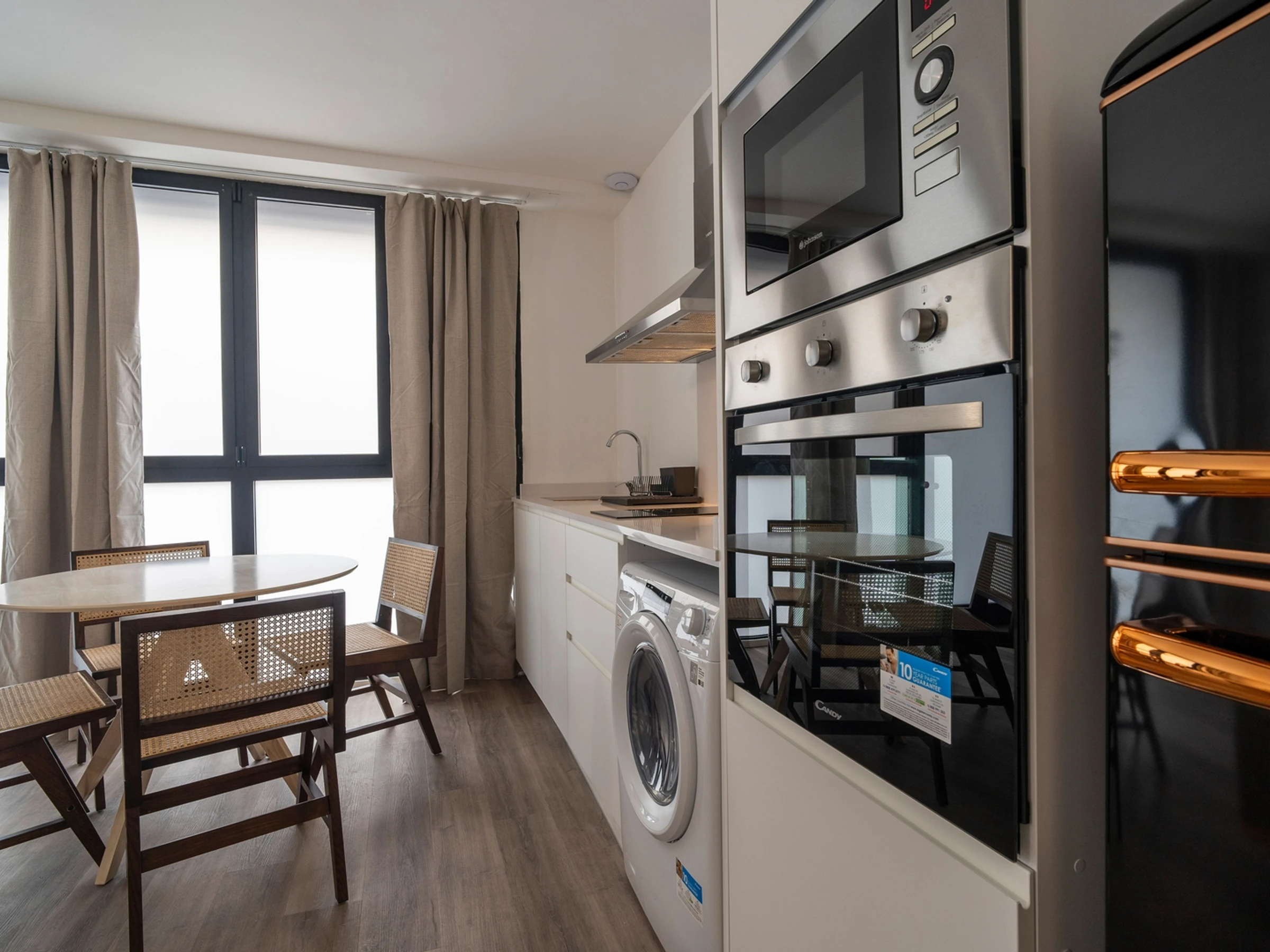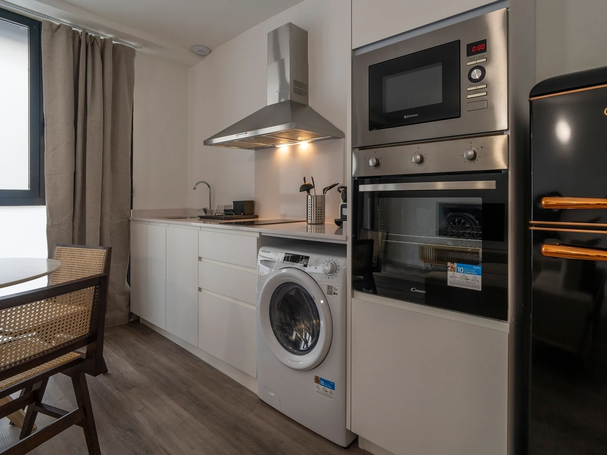 Dieses Studio bietet eine gemütliche und moderne Atmosphäre und ist gleichzeitig optimal an das Stadtzentrum, die öffentlichen Verkehrsmittel und die wichtigsten Sehenswürdigkeiten angebunden.