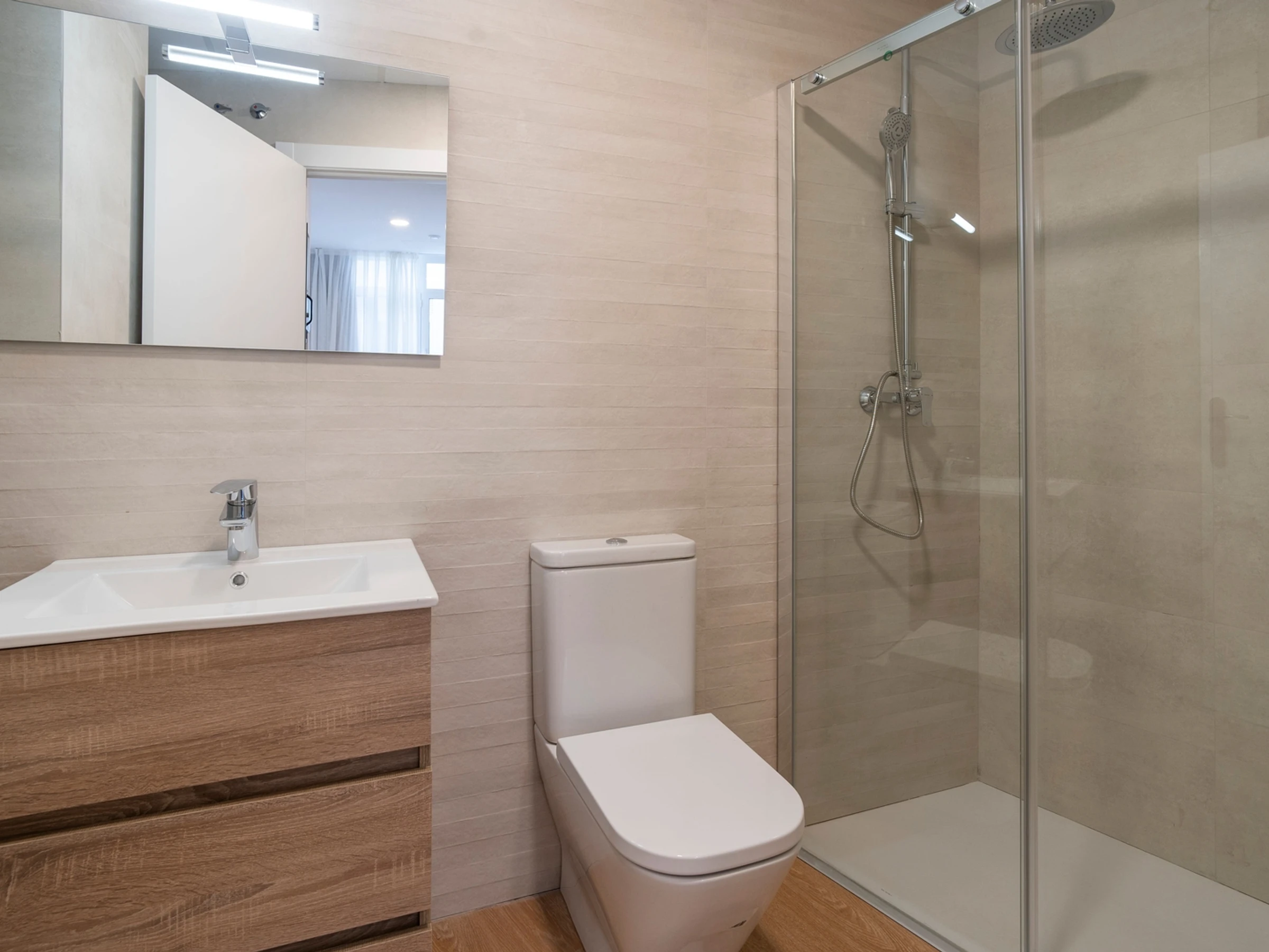 Das Badezimmer verfügt über eine moderne Dusche – perfekt zum Entspannen nach einem erlebnisreichen Tag.