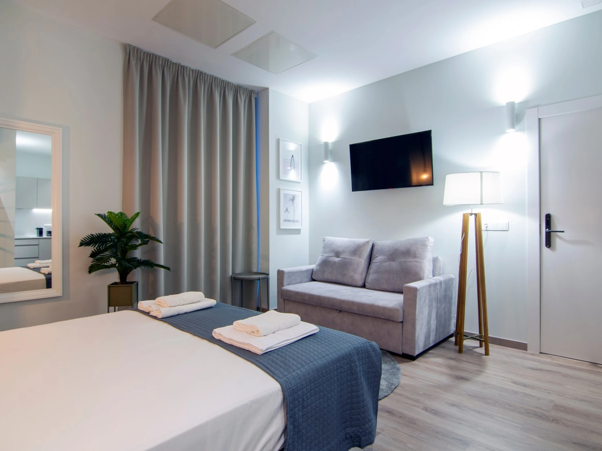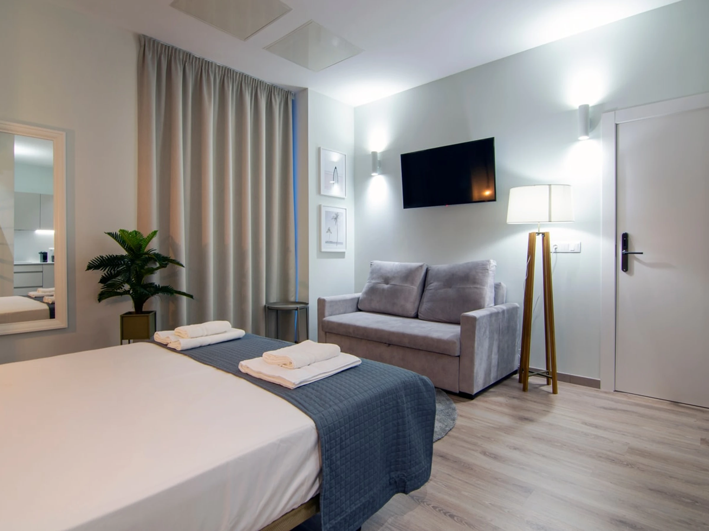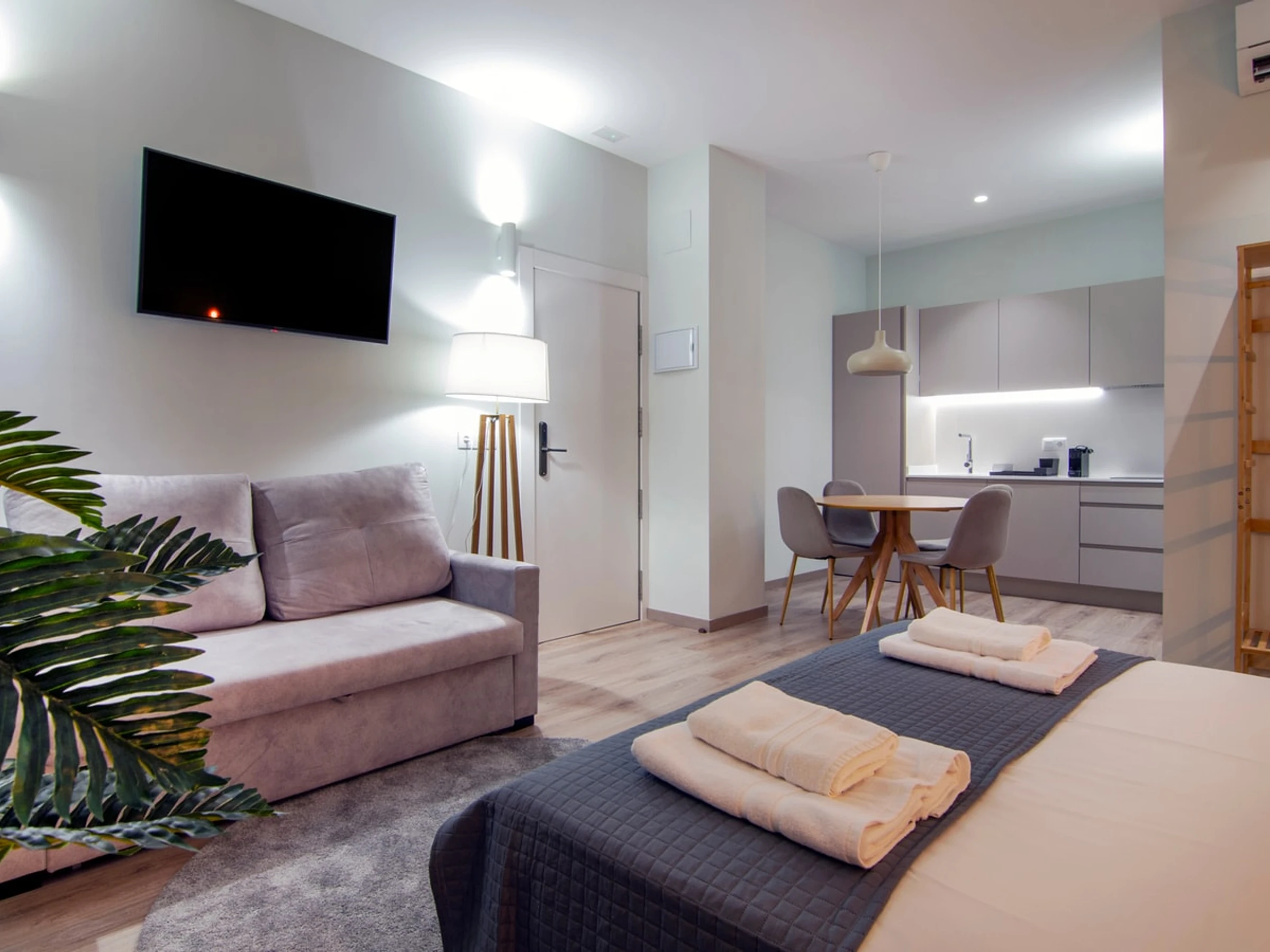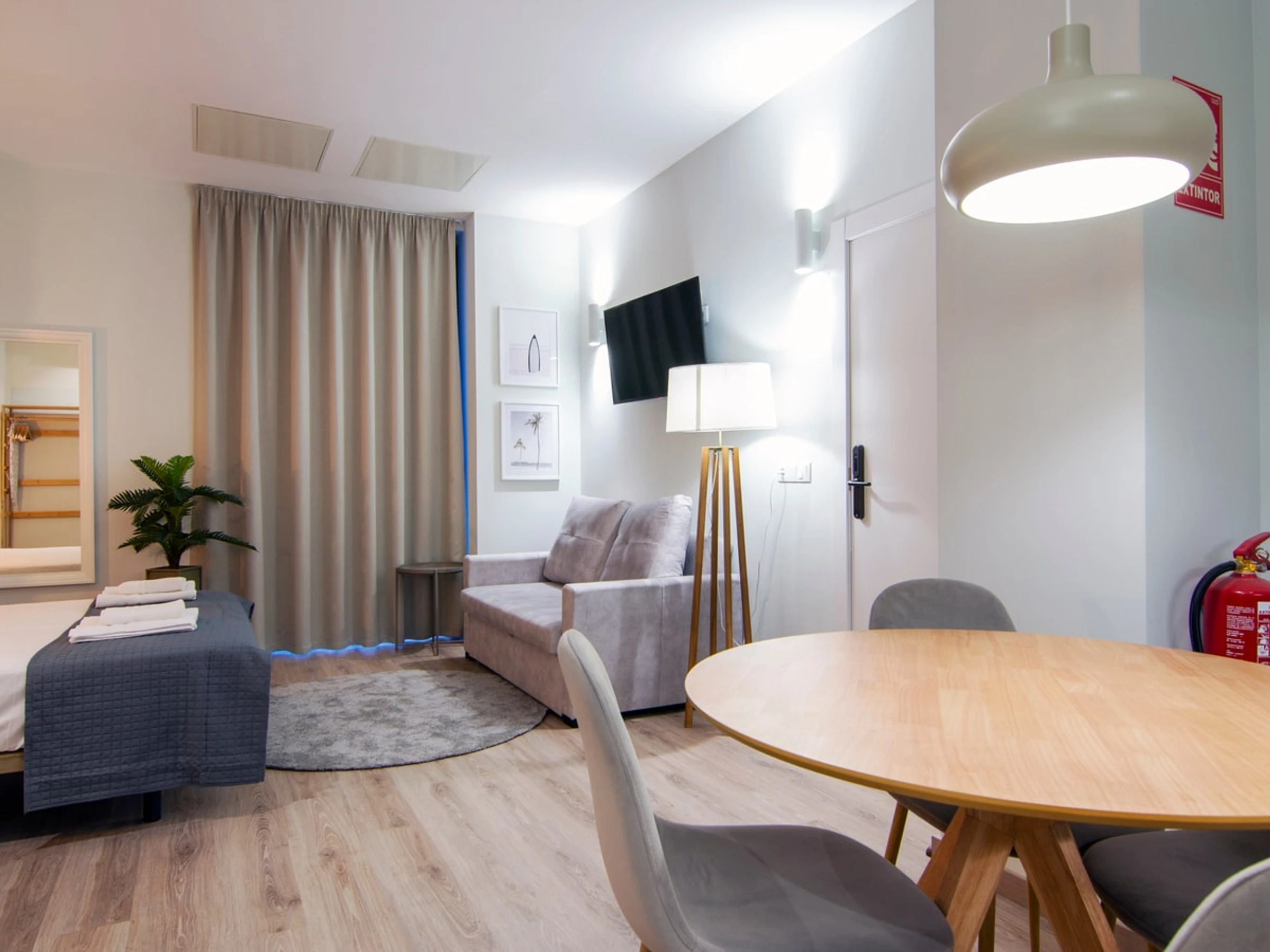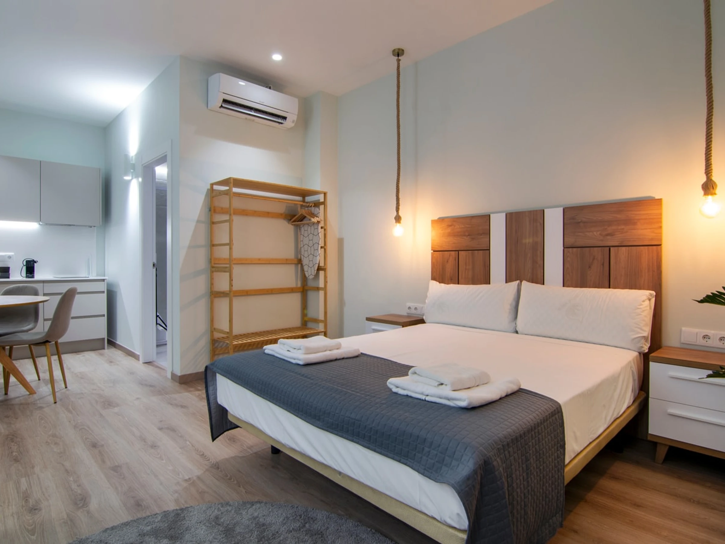 Entdecken Sie den Reiz von Ruzafa in diesem modernen und durchdacht gestalteten Studio-Apartment, das höchsten Komfort bietet. Ob Alleinreisender oder Paar – dieser stilvolle Wohnraum lädt zum Entspannen und Auftanken ein. Der offene Grundriss verbindet harmonisch den gemütlichen Schlafbereich, das moderne Badezimmer und den gut ausgestatteten Wohnbereich. Die Küchenzeile ist mit allen wichtigen Annehmlichkeiten wie Kochfeld, Mikrowelle und Kühlschrank ausgestattet und sorgt so für einen unkomplizierten Aufenthalt. Erkunden Sie die lebendige Atmosphäre von Ruzafa mit ihren Kunstschätzen, trendigen Cafés, köstlichen Restaurants und einem pulsierenden Flair, das Sie in die einzigartige Kultur Valencias eintauchen lässt.