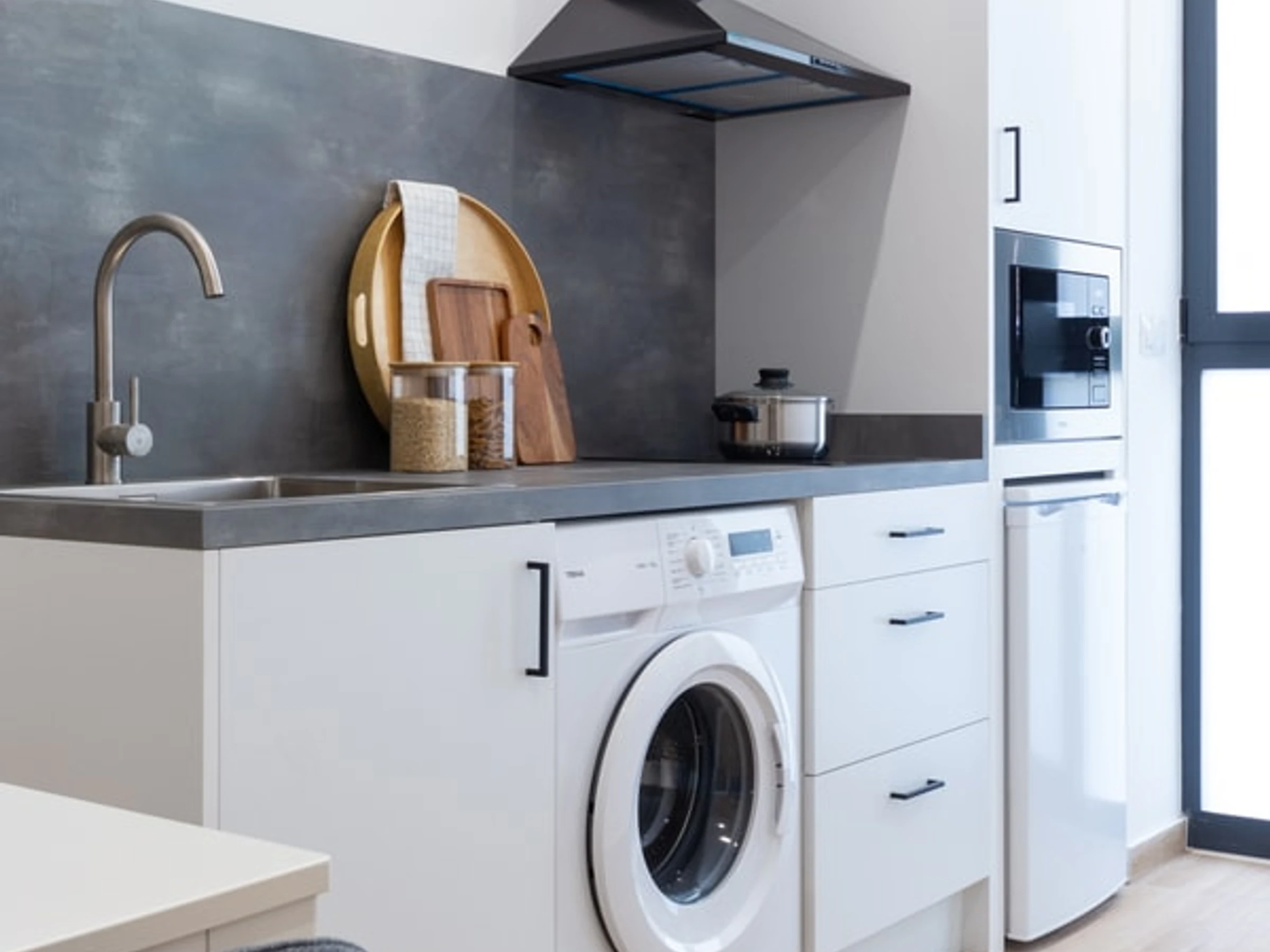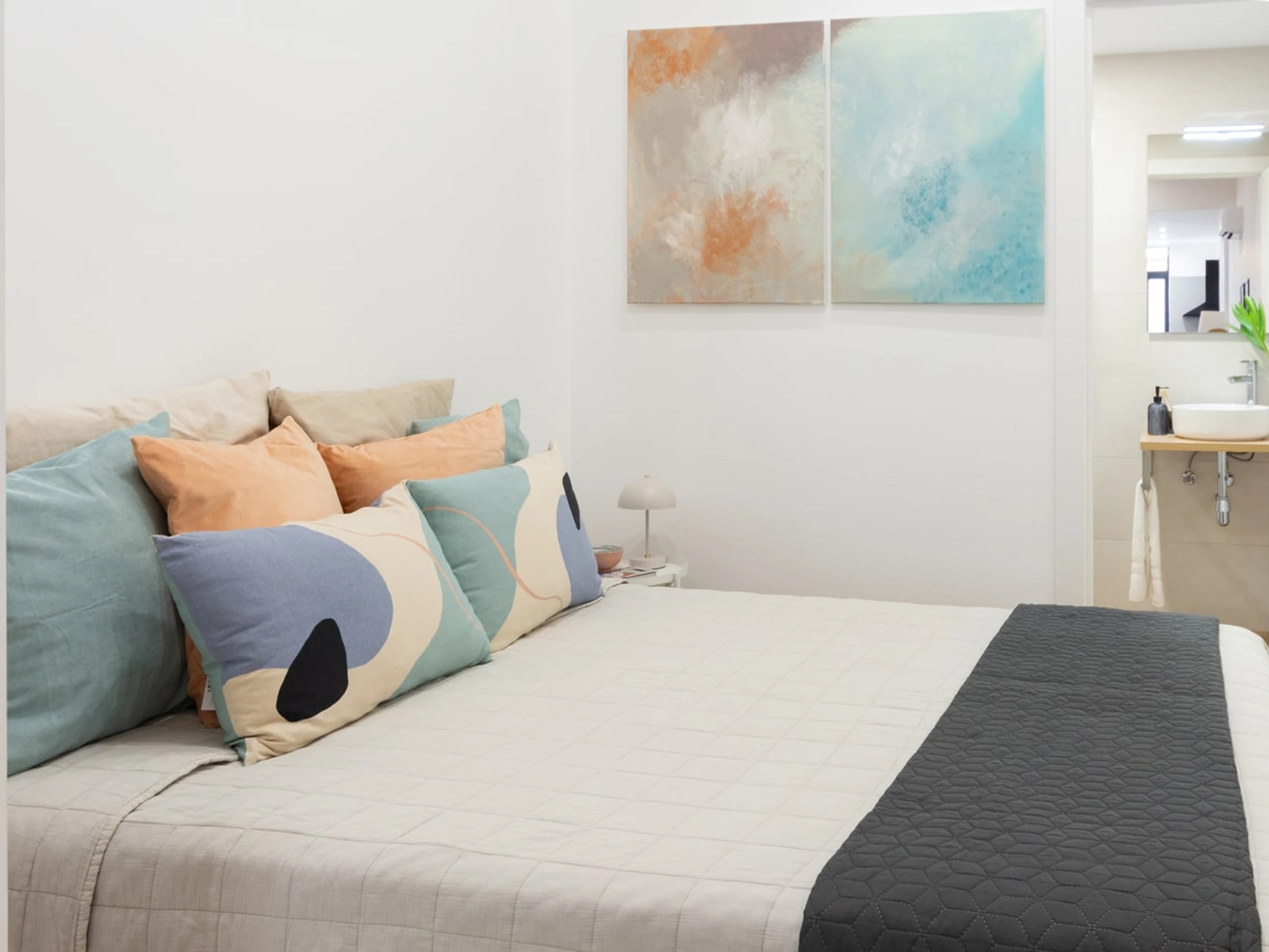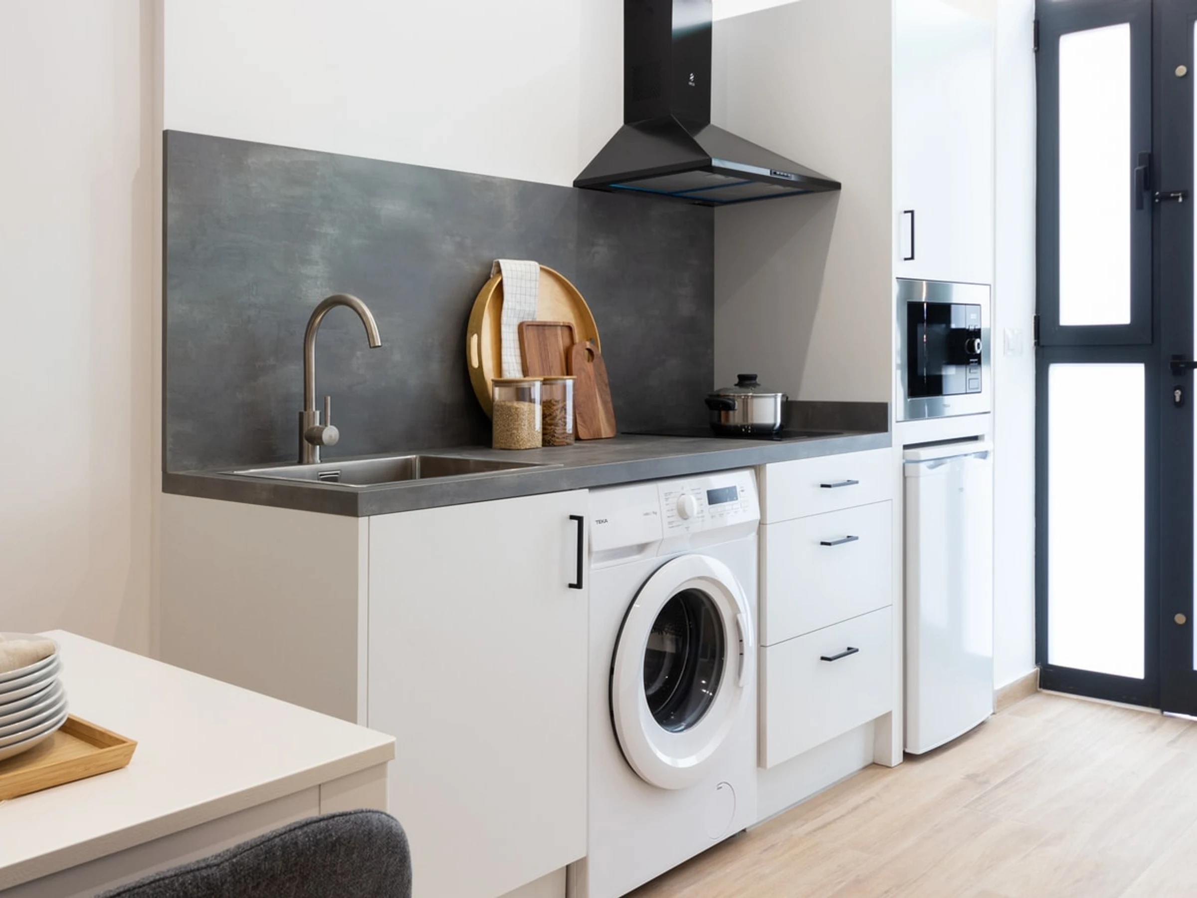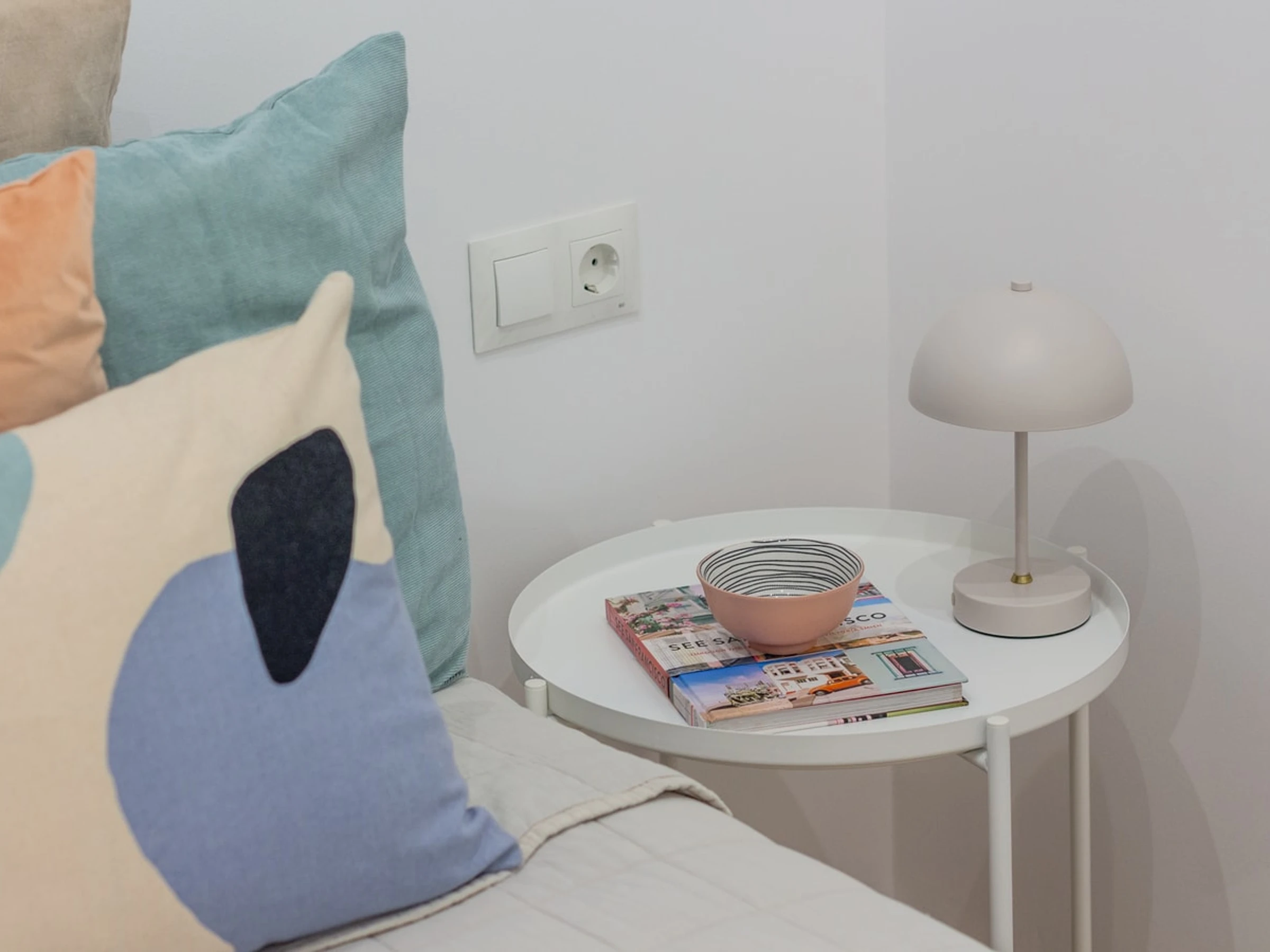 Treten Sie ein in den offenen und durchdacht gestalteten Grundriss, der den gemütlichen Schlafbereich nahtlos mit dem einladenden Wohnbereich verbindet. Die voll ausgestattete Küchenzeile ermöglicht Ihnen die einfache Zubereitung von Mahlzeiten. Die moderne Einrichtung und die stilvollen Möbel schaffen ein einladendes Ambiente und eignen sich für Alleinreisende, Paare oder kleine Gruppen. Direkt neben dem pulsierenden Viertel Ruzafa finden Sie eine vielfältige Auswahl an trendigen Cafés, Künstlerateliers, Restaurants und ein aufregendes Nachtleben.