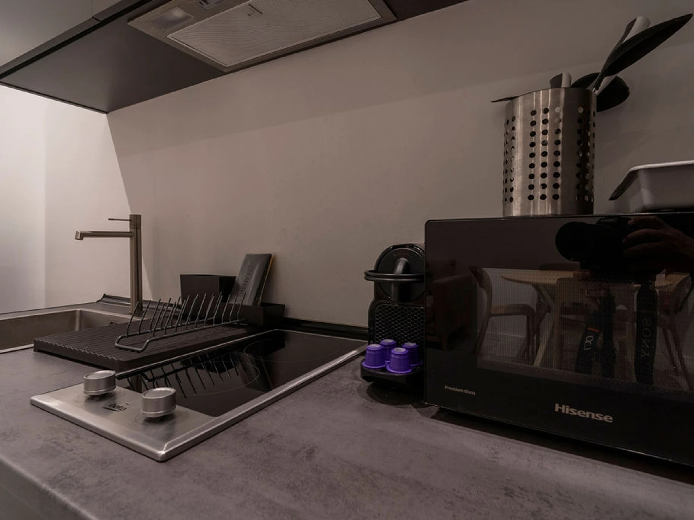Mit einem gemütlichen Queensize-Bett und einem ausziehbaren Schlafsofa bietet unser Studio Platz für bis zu vier Gäste und garantiert einen angenehmen Aufenthalt.