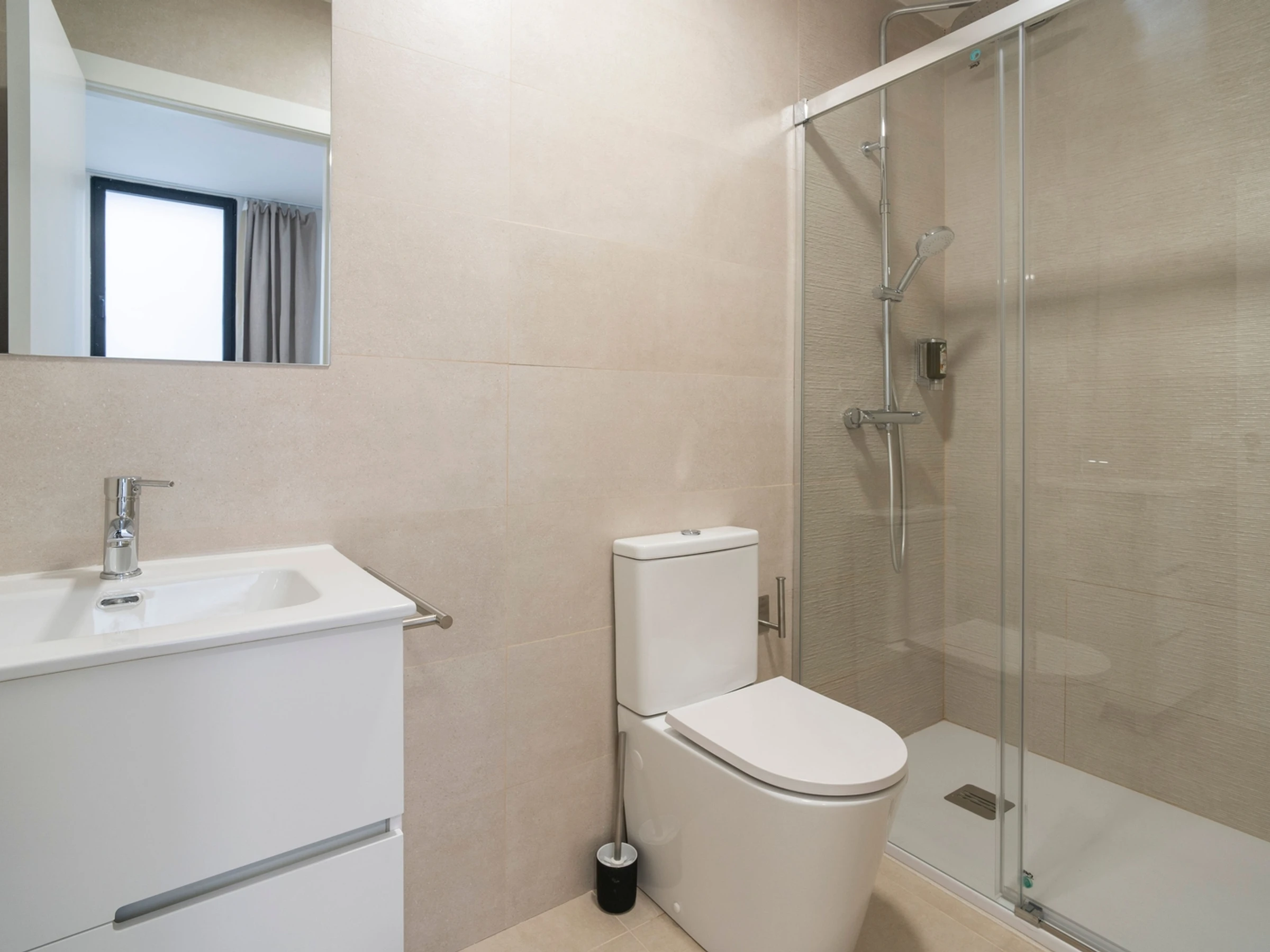 Es verfügt über alle Annehmlichkeiten für einen komfortablen Aufenthalt, darunter eine Waschmaschine, ein Badezimmer mit Regendusche, einen Ruhebereich mit Schlafsofa und eine praktische Küche.