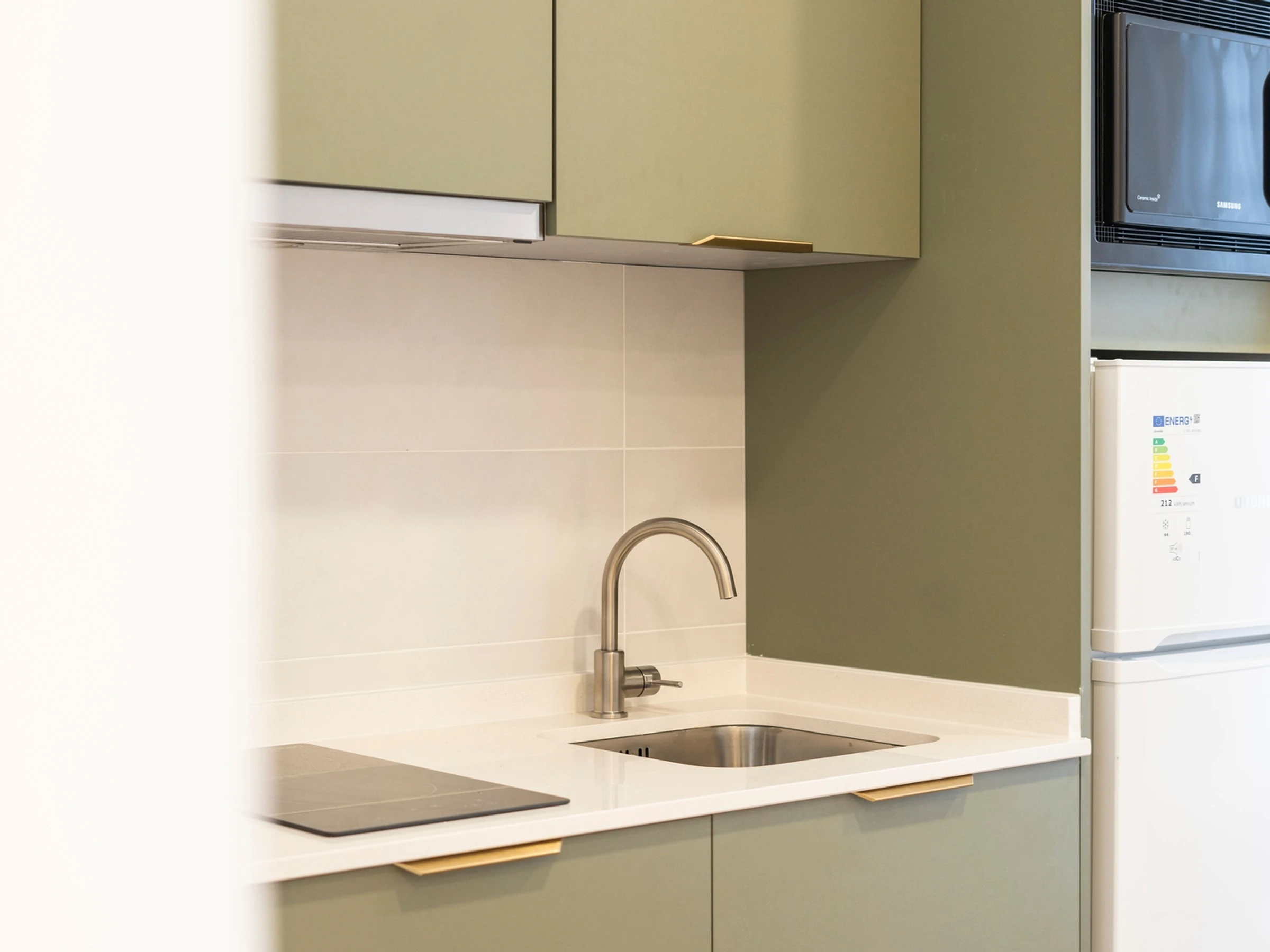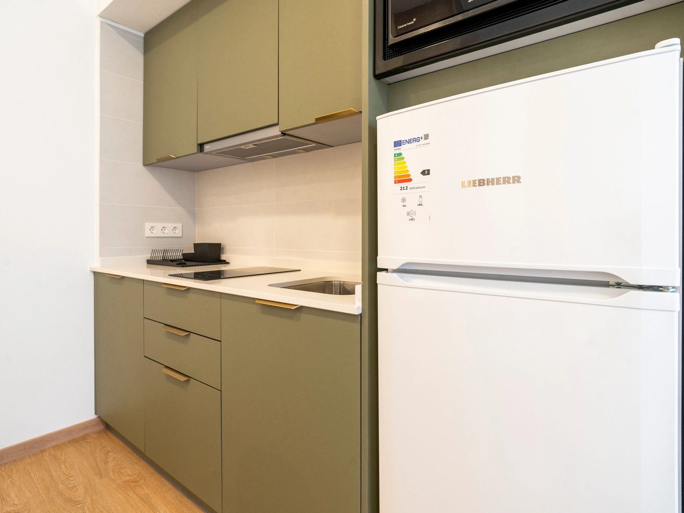 Die Küche ist komplett ausgestattet mit Mikrowelle, Cerankochfeld, Nespresso-Kaffeemaschine, Kühlschrank und allem, was Sie zum Zubereiten köstlicher Mahlzeiten oder für ein entspanntes Frühstück benötigen.