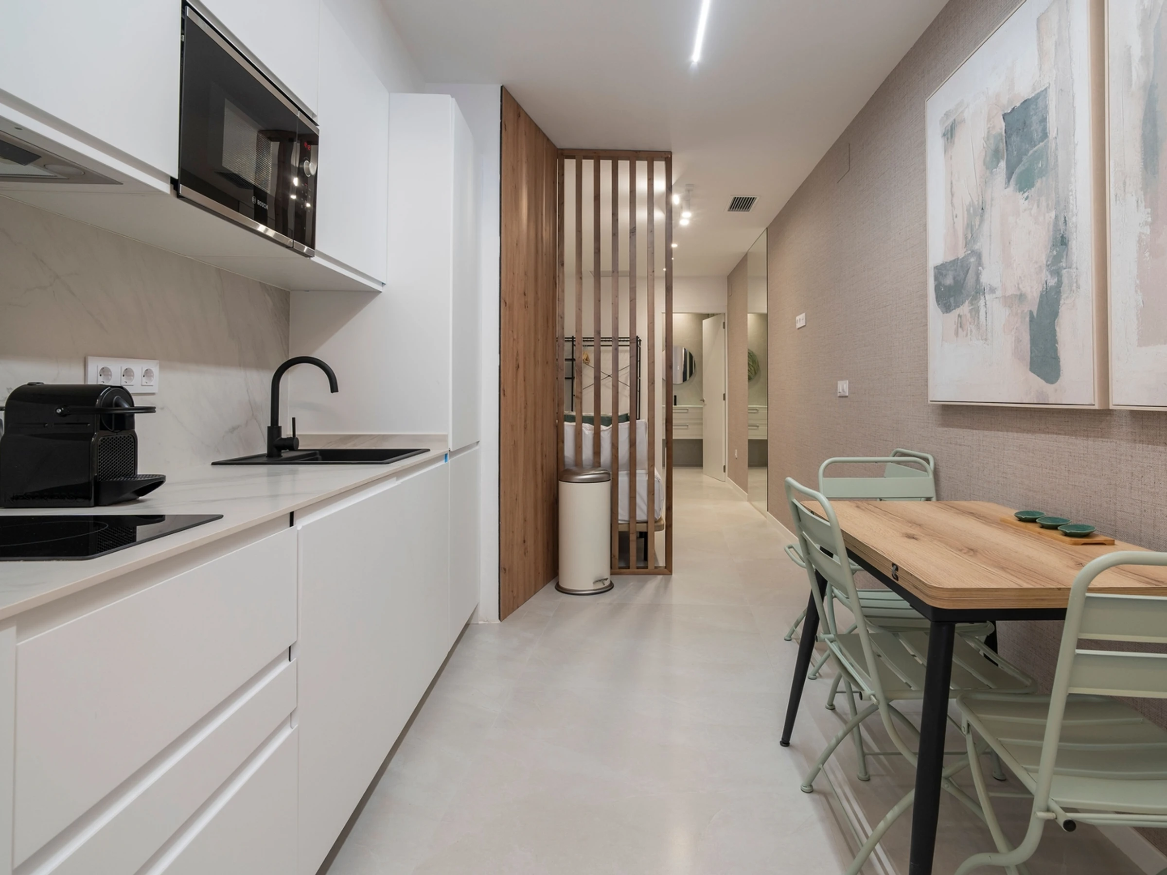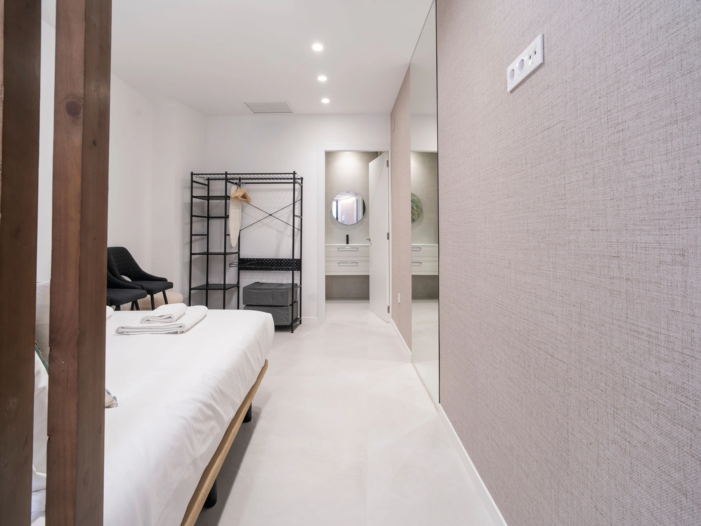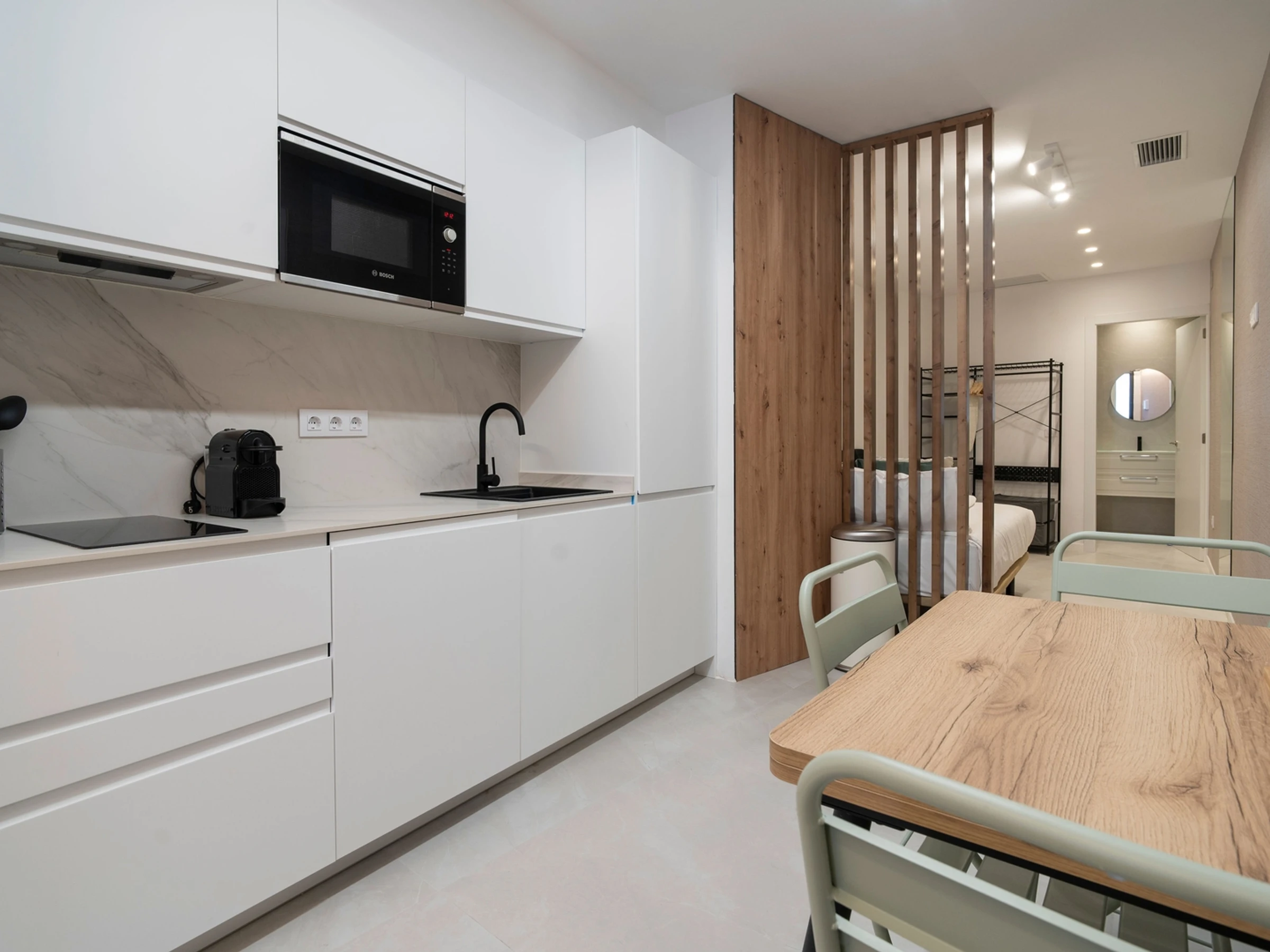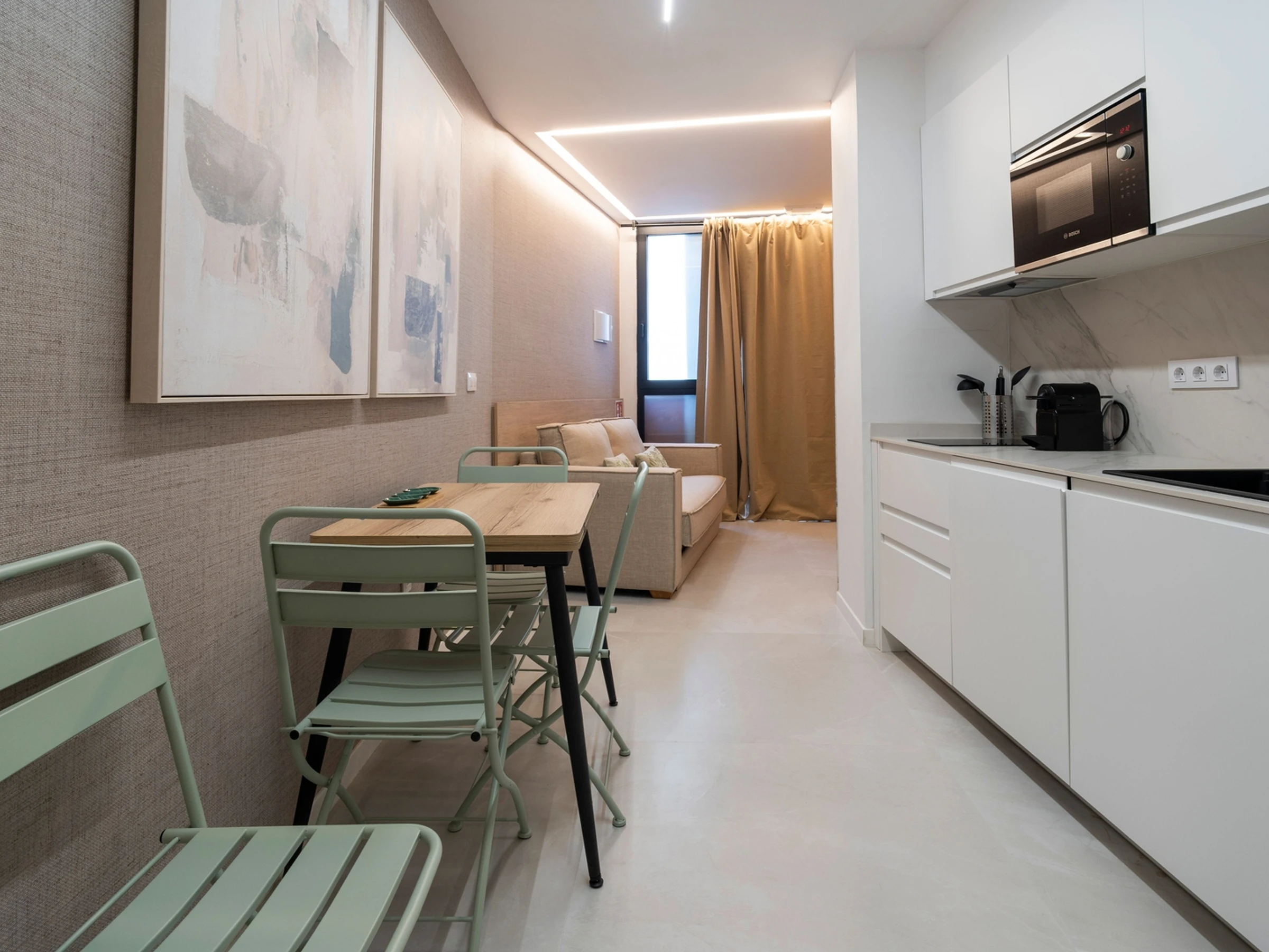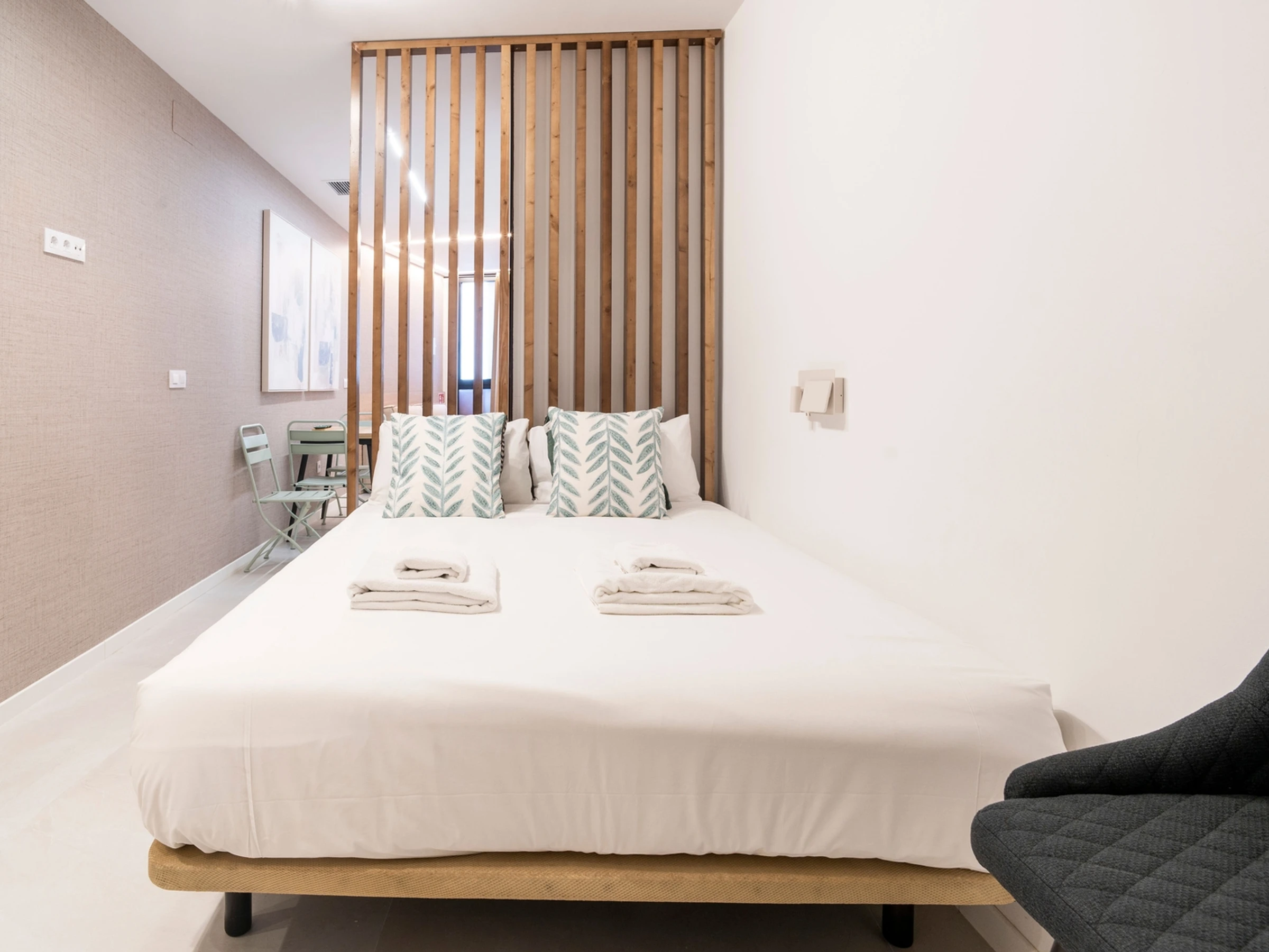 Willkommen in diesem stilvollen und modernen Studio in der Calle Palleter, eingebettet in das ruhige und zentrale Viertel Arrancapins. Nur wenige Gehminuten von Ruzafa, dem AVE-Bahnhof Joaquín Sorolla und der Altstadt entfernt, ist dies der ideale Ausgangspunkt, um Valencia zu erkunden. Dieses Apartment in Valencia ist perfekt für Kurzaufenthalte oder Geschäftsreisen und besticht durch natürliche Materialien, sanfte Farbtöne und einen offenen, lichtdurchfluteten Grundriss, der eine ruhige und wohnliche Atmosphäre schafft.