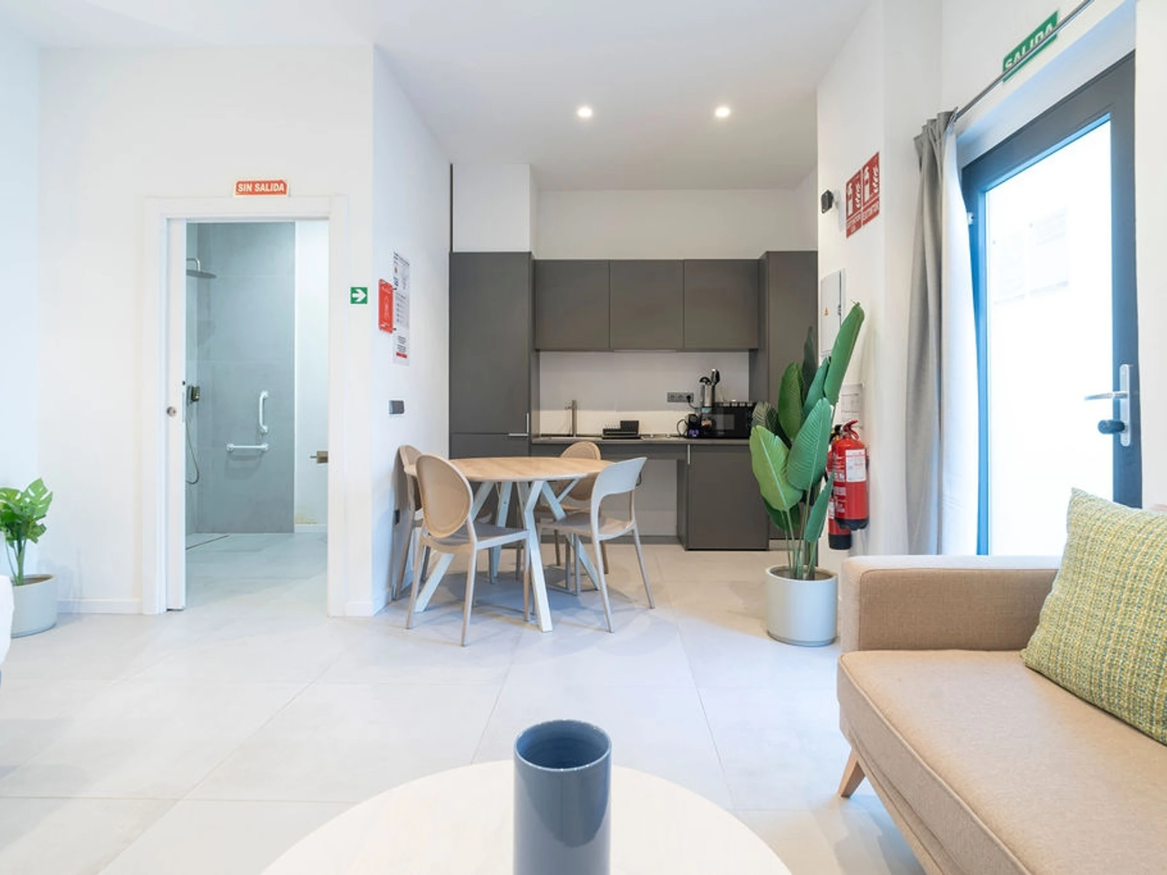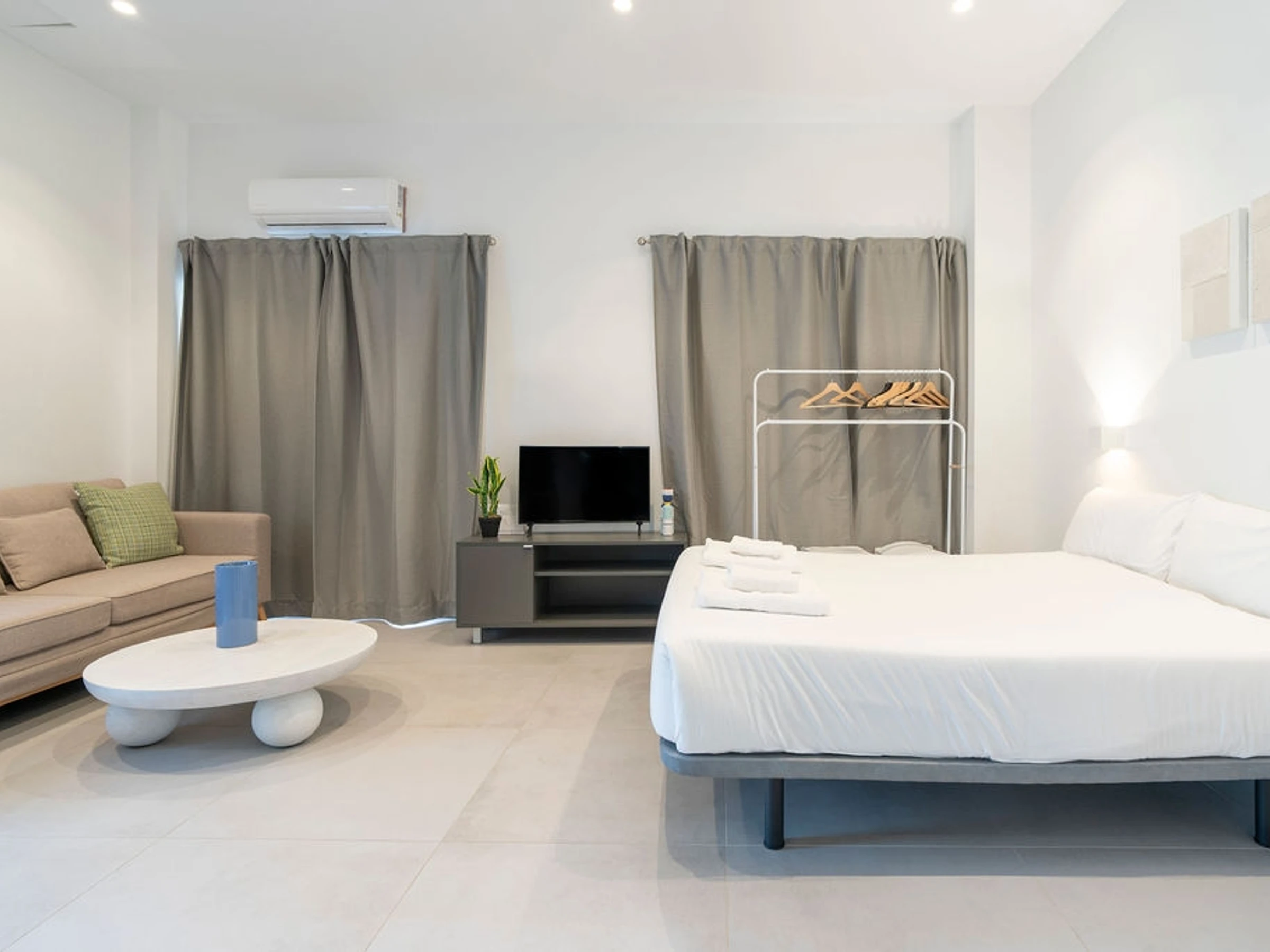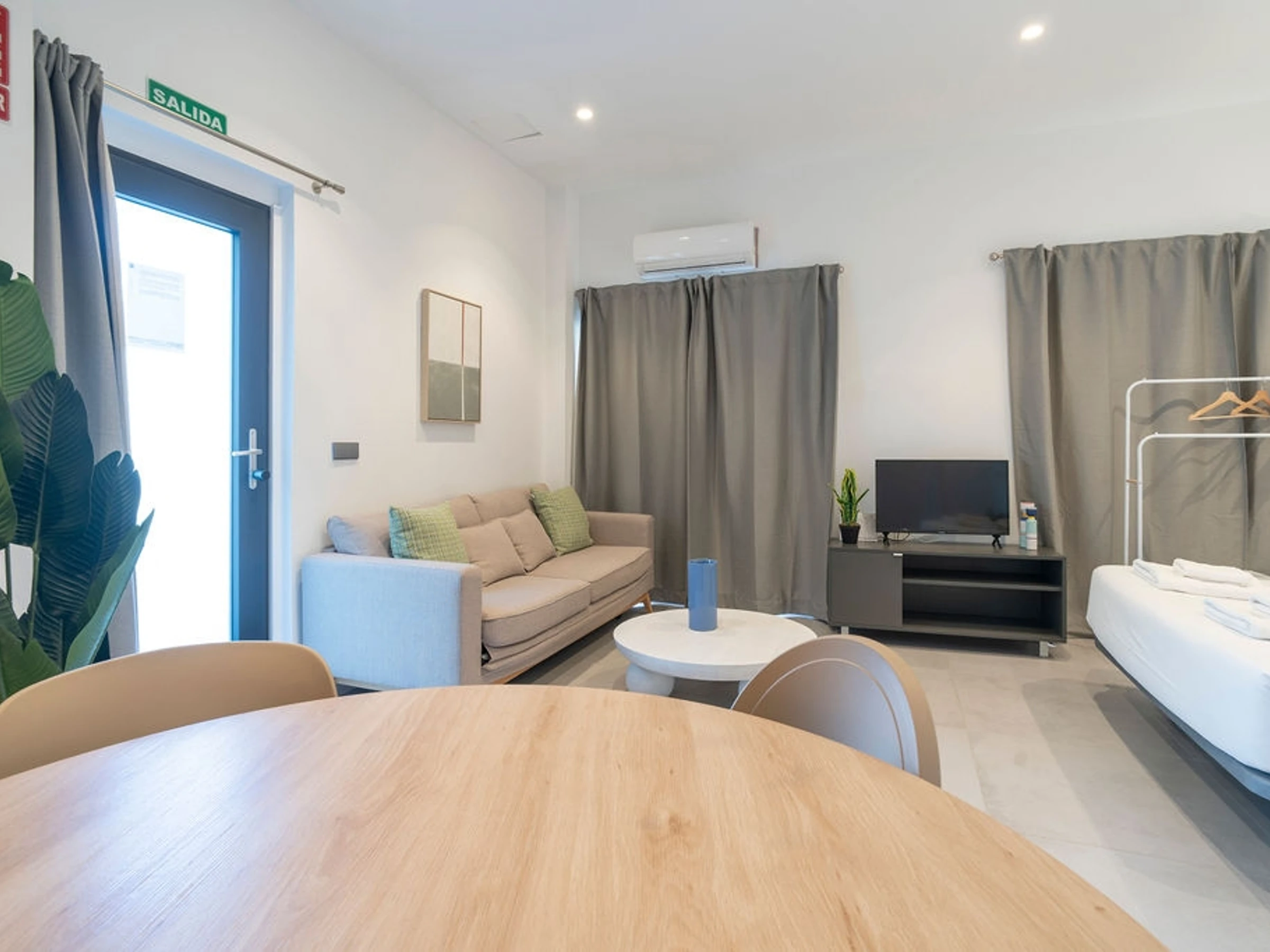 Unser Studio im Erdgeschoss, in der Nähe des lebhaften Viertels Serrería, wurde liebevoll renoviert und bietet Ihnen ein modernes und komfortables Wohnerlebnis.
