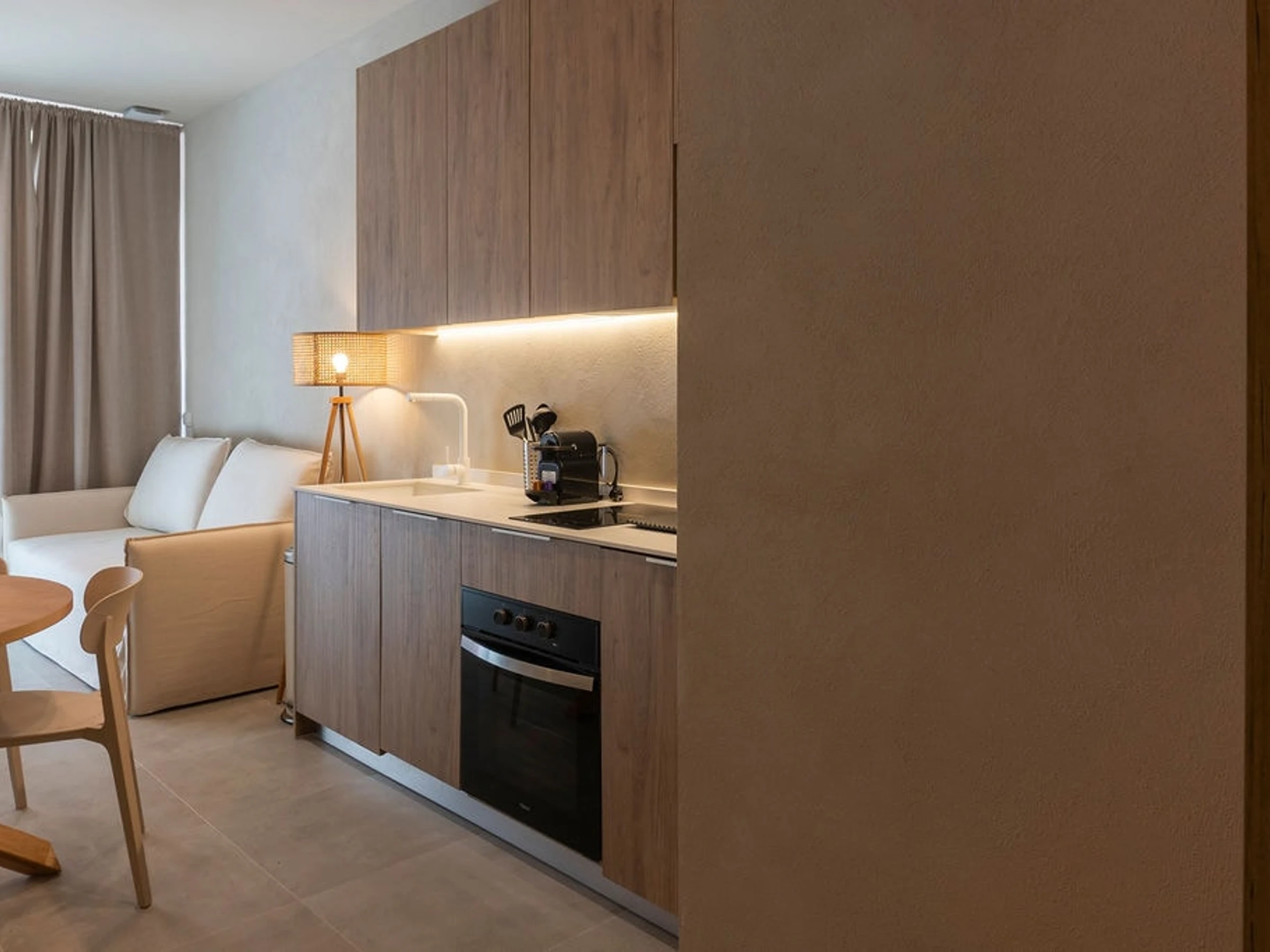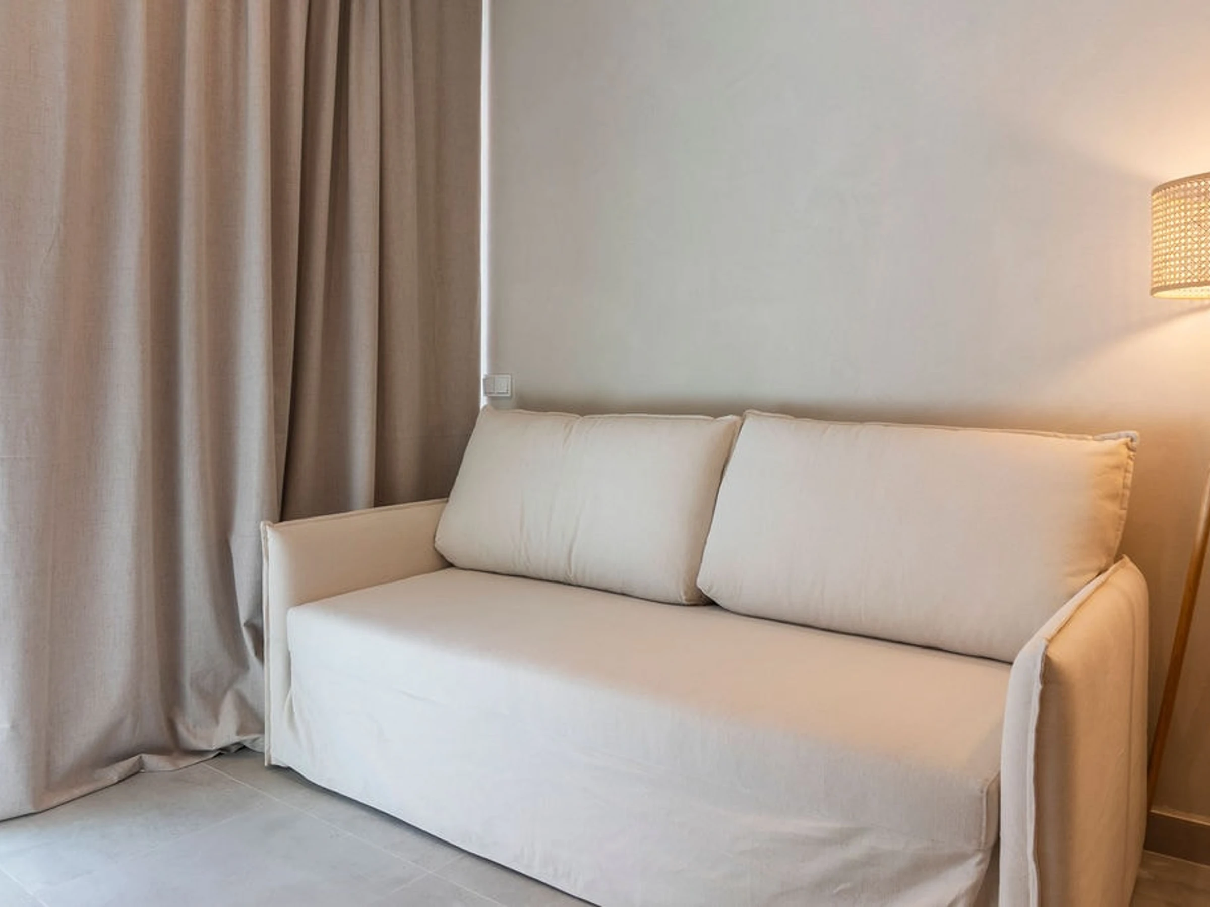 Das Studio bietet Platz für vier Personen und verfügt über ein Schlafsofa, das sich in ein bequemes Doppelbett verwandeln lässt, sowie ein geräumiges Queensize-Bett für erholsamen Schlaf.