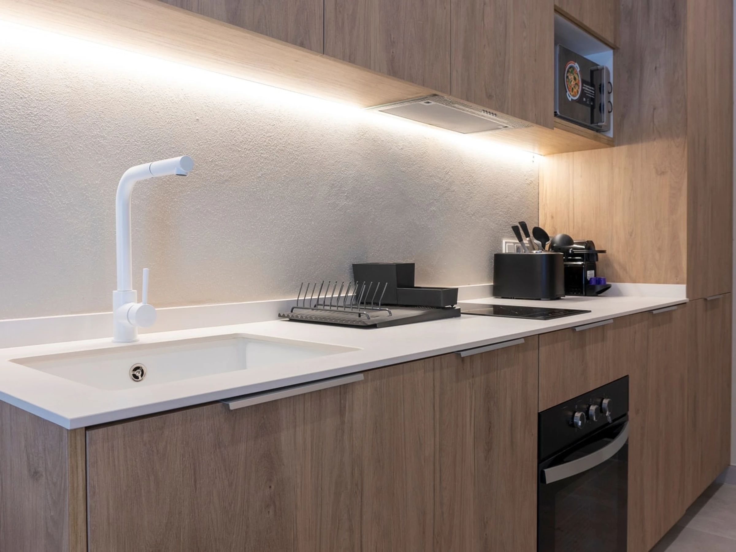 Die Küche ist komplett ausgestattet mit allen Geräten, die Sie benötigen, darunter eine Nespresso-Kaffeemaschine für köstlichen Kaffee am Morgen, eine Mikrowelle zum schnellen Aufwärmen Ihrer Mahlzeiten und ein Wasserkocher für Ihren Lieblingstee zu jeder Tageszeit. Für alle, die in Verbindung bleiben möchten, steht WLAN zur Verfügung, damit Sie Ihre privaten oder beruflichen Angelegenheiten erledigen können.