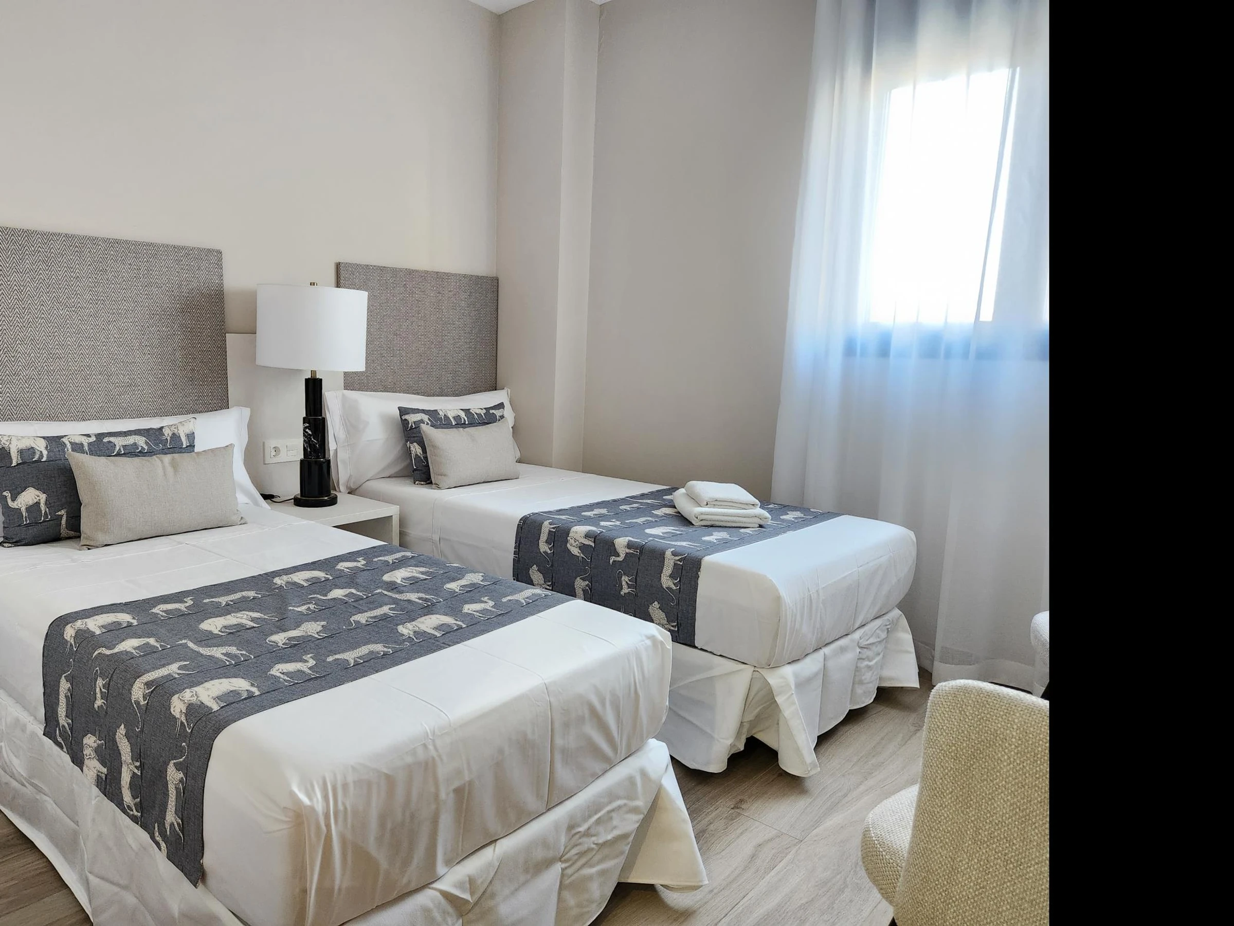 Das Apartment befindet sich in einem Neubau mit Aufzug. Es verfügt über ein Hauptschlafzimmer mit einem 150 x 190 cm großen Bett, ein zweites Schlafzimmer mit zwei Einzelbetten, ein Badezimmer mit Dusche, eine voll ausgestattete Küche und ein geräumiges Wohnzimmer mit einem 140 x 200 cm großen Doppelschlafsofa. Hochwertige Möbel, viel Tageslicht und geschmackvolle Einrichtung schaffen eine moderne und einladende Atmosphäre.