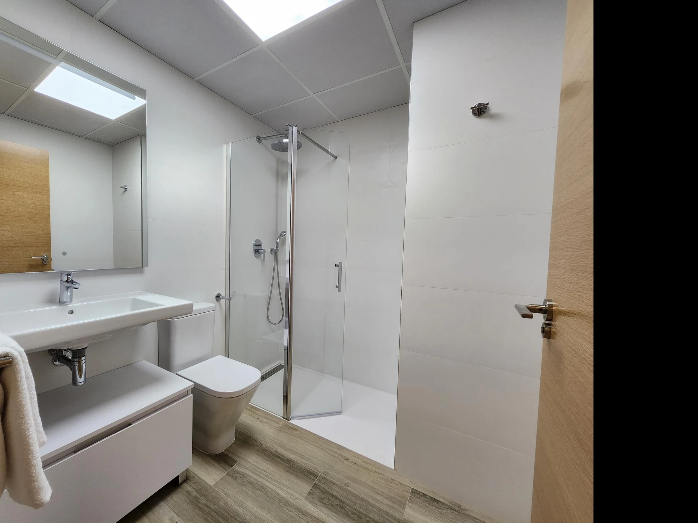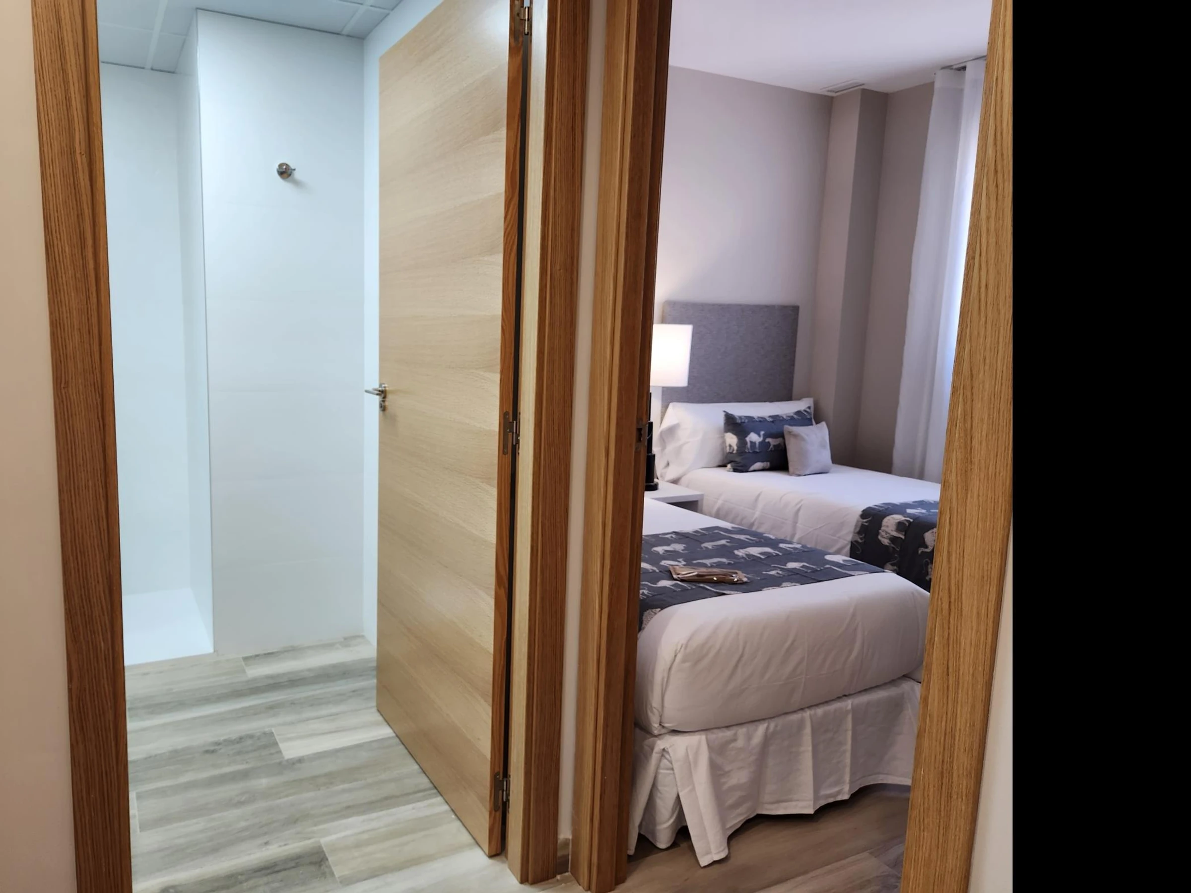 Das Apartment befindet sich in einem Neubau mit Aufzug. Es verfügt über ein Hauptschlafzimmer mit einem 150 x 190 cm großen Bett, ein zweites Schlafzimmer mit zwei Einzelbetten, ein Badezimmer mit Dusche, eine voll ausgestattete Küche und ein geräumiges Wohnzimmer mit einem 140 x 200 cm großen Doppelschlafsofa. Hochwertige Möbel, viel Tageslicht und geschmackvolle Einrichtung schaffen eine moderne und einladende Atmosphäre.