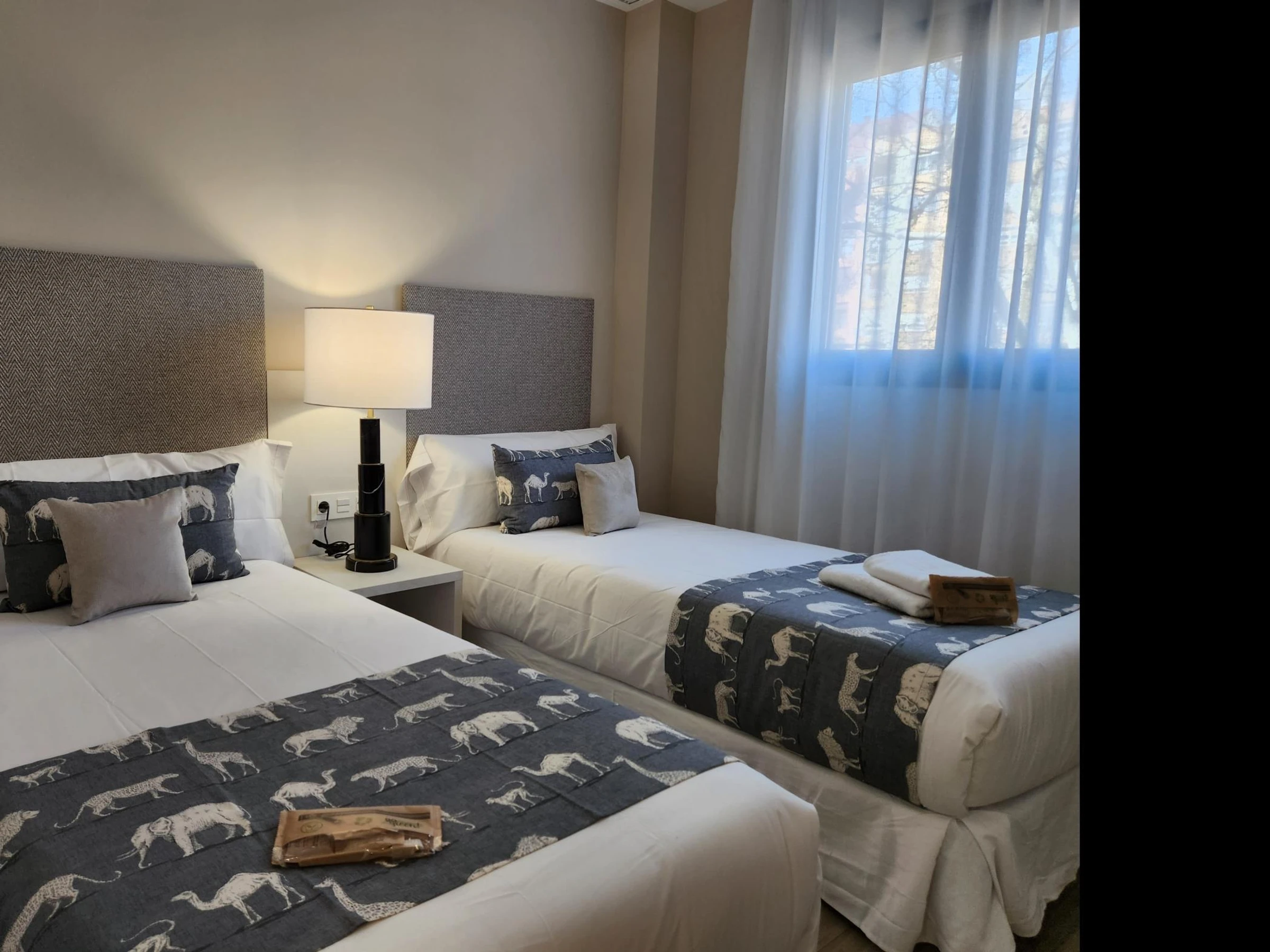 Das Apartment befindet sich in einem Neubau mit Aufzug. Es verfügt über ein Hauptschlafzimmer mit einem 150 x 190 cm großen Bett, ein zweites Schlafzimmer mit zwei Einzelbetten, ein Badezimmer mit Dusche, eine voll ausgestattete Küche und ein geräumiges Wohnzimmer mit einem 140 x 200 cm großen Doppelschlafsofa. Hochwertige Möbel, viel Tageslicht und geschmackvolle Einrichtung schaffen eine moderne und einladende Atmosphäre.