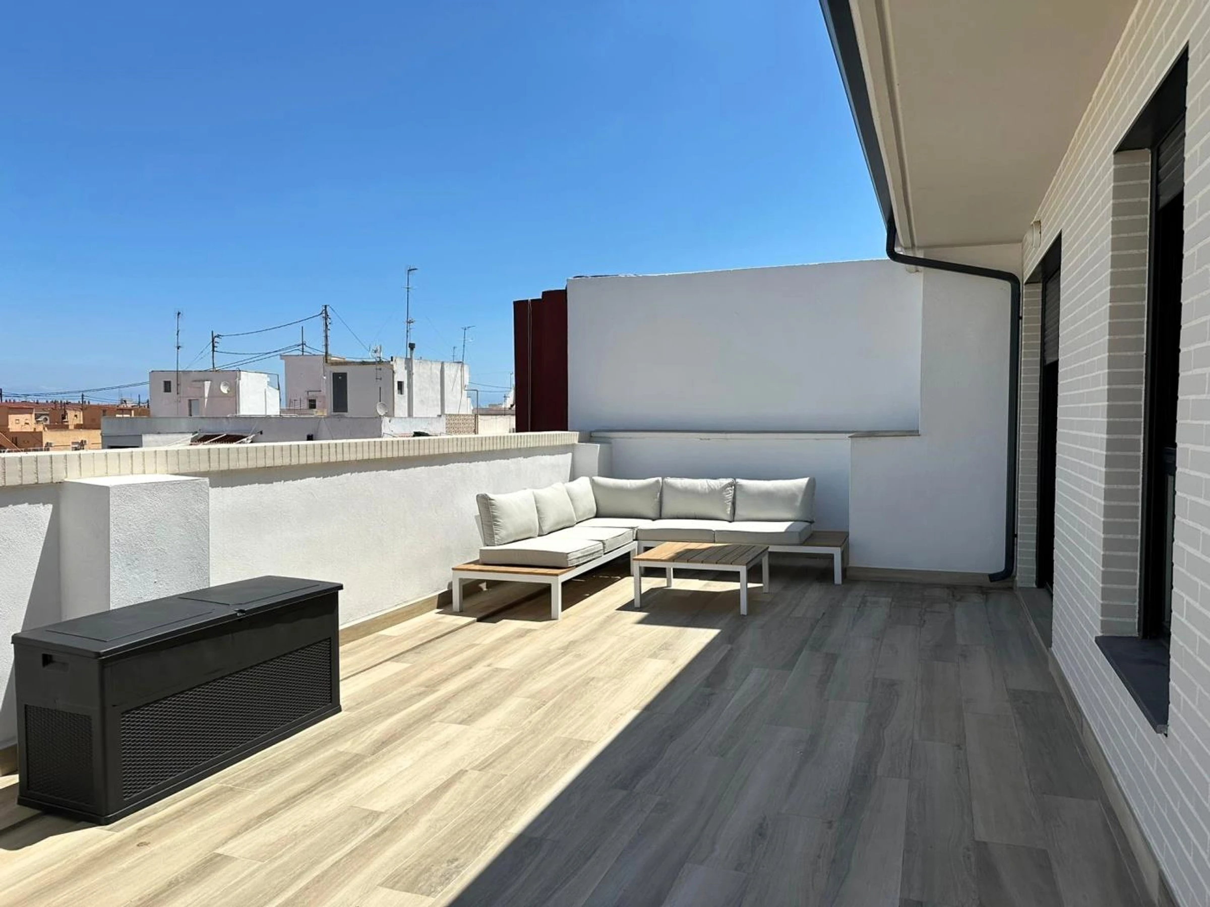 Entdecken Sie dieses atemberaubende Penthouse-Apartment in der Calle Almazora, ganz in der Nähe der Fusta-Brücke in Valencia. Mit sorgfältig ausgewähltem, urbanem und modernem Dekor besticht dieses Apartment durch seine Großzügigkeit, das natürliche Licht und die ruhige Atmosphäre. Es bietet eine zentrale Klimaanlage und WLAN im gesamten Apartment für einen komfortablen und angenehmen Aufenthalt.