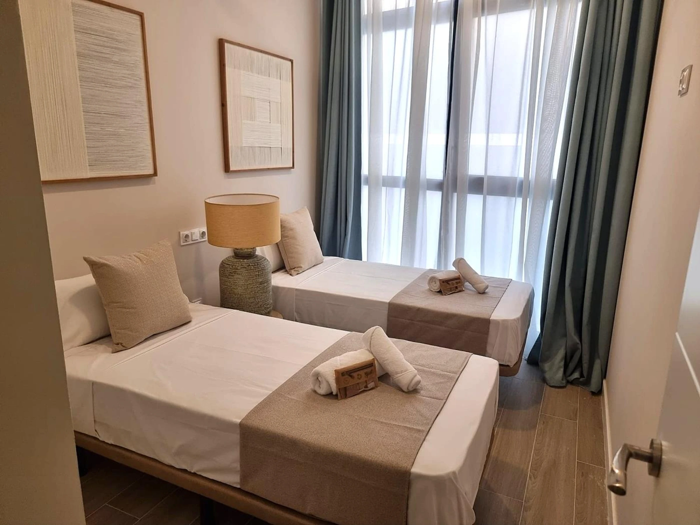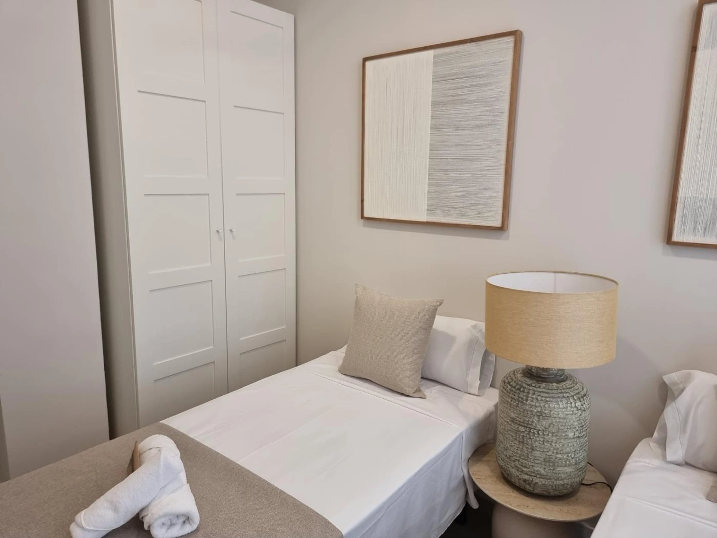 Die Wohnung bietet Platz für bis zu 6 Personen und verfügt über 2 geschmackvoll eingerichtete Schlafzimmer und 2 Badezimmer, die Privatsphäre und Komfort für den Alltag bieten. Das Wohnzimmer ist mit einem Schlafsofa ausgestattet, und die gesamte Wohnung verfügt über eine zentrale Klimaanlage, die ganzjährig für angenehme Temperaturen sorgt.