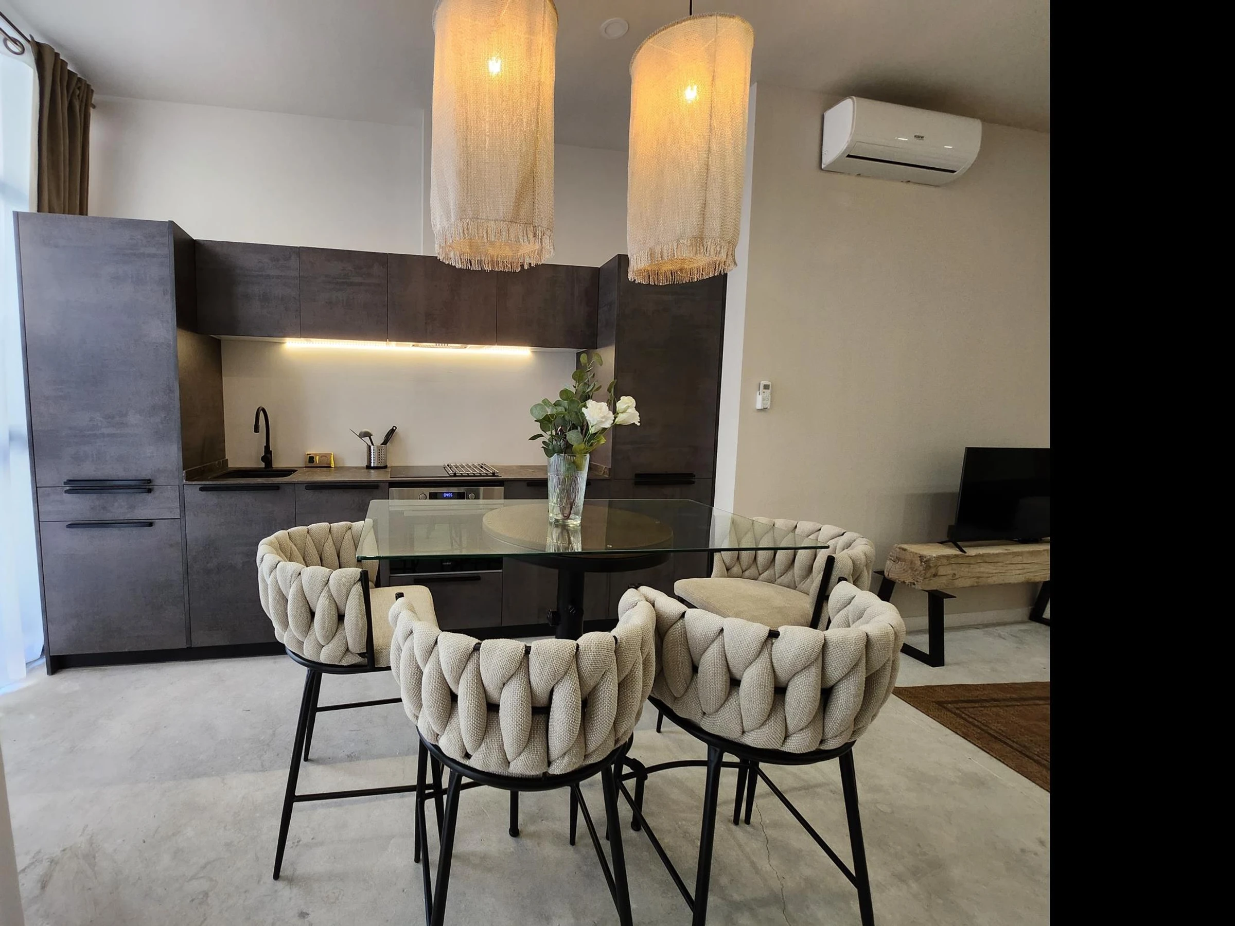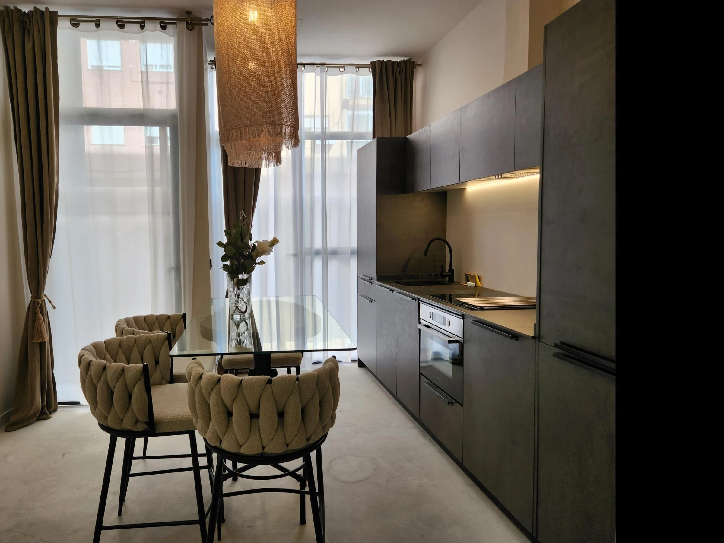 Entdecken Sie dieses spektakuläre Studio im Erdgeschoss – ein modernes, helles und geschmackvoll eingerichtetes Apartment, das Stil und Komfort vereint. Das Studio verfügt über eine voll ausgestattete Küche und ein Badezimmer und bietet Ihnen alles, was Sie für einen angenehmen und komfortablen Aufenthalt benötigen.