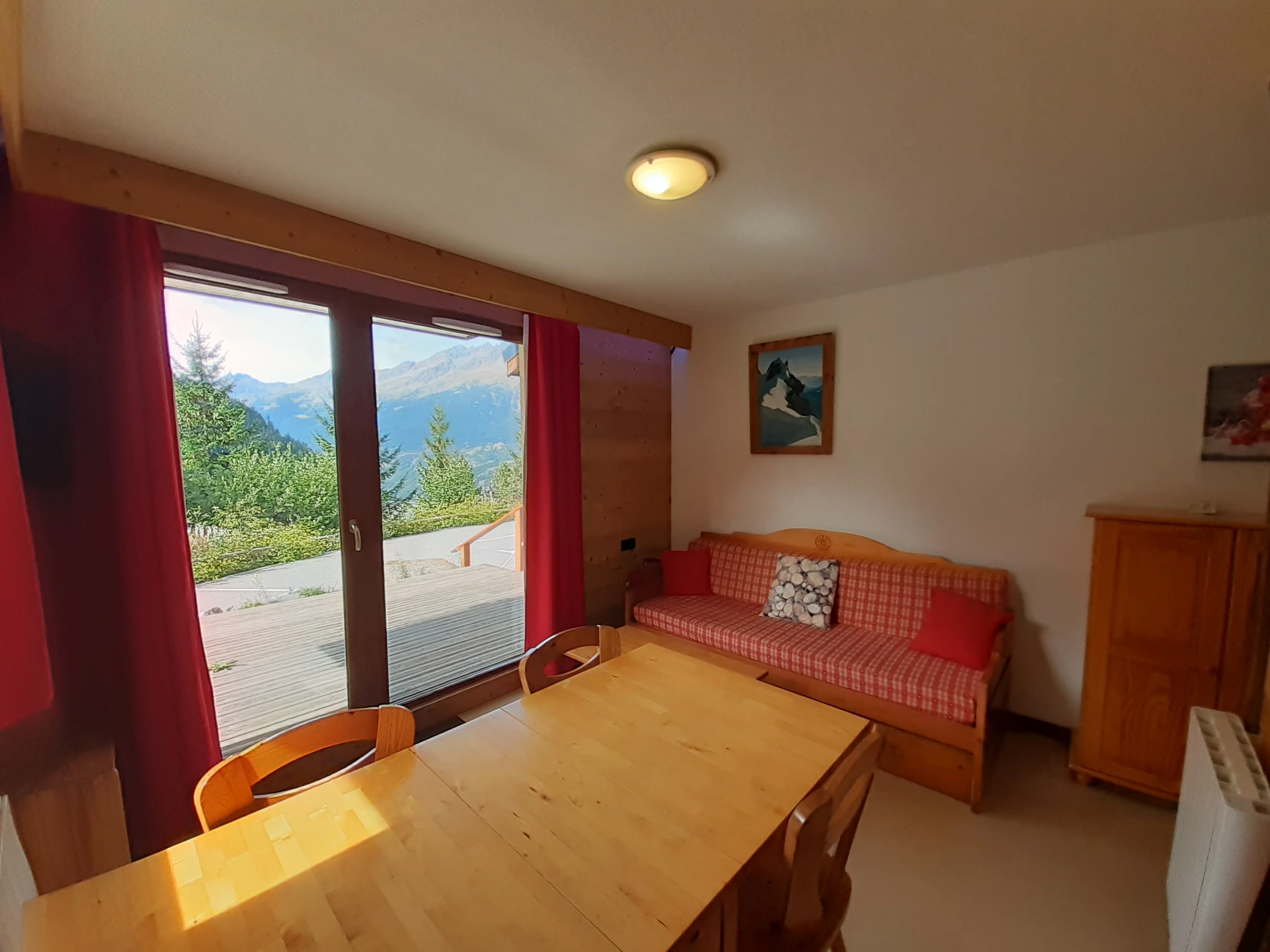Lage: Erdgeschoss, kein Aufzug. Westterrasse mit Blick auf den Nationalpark Vanoise.