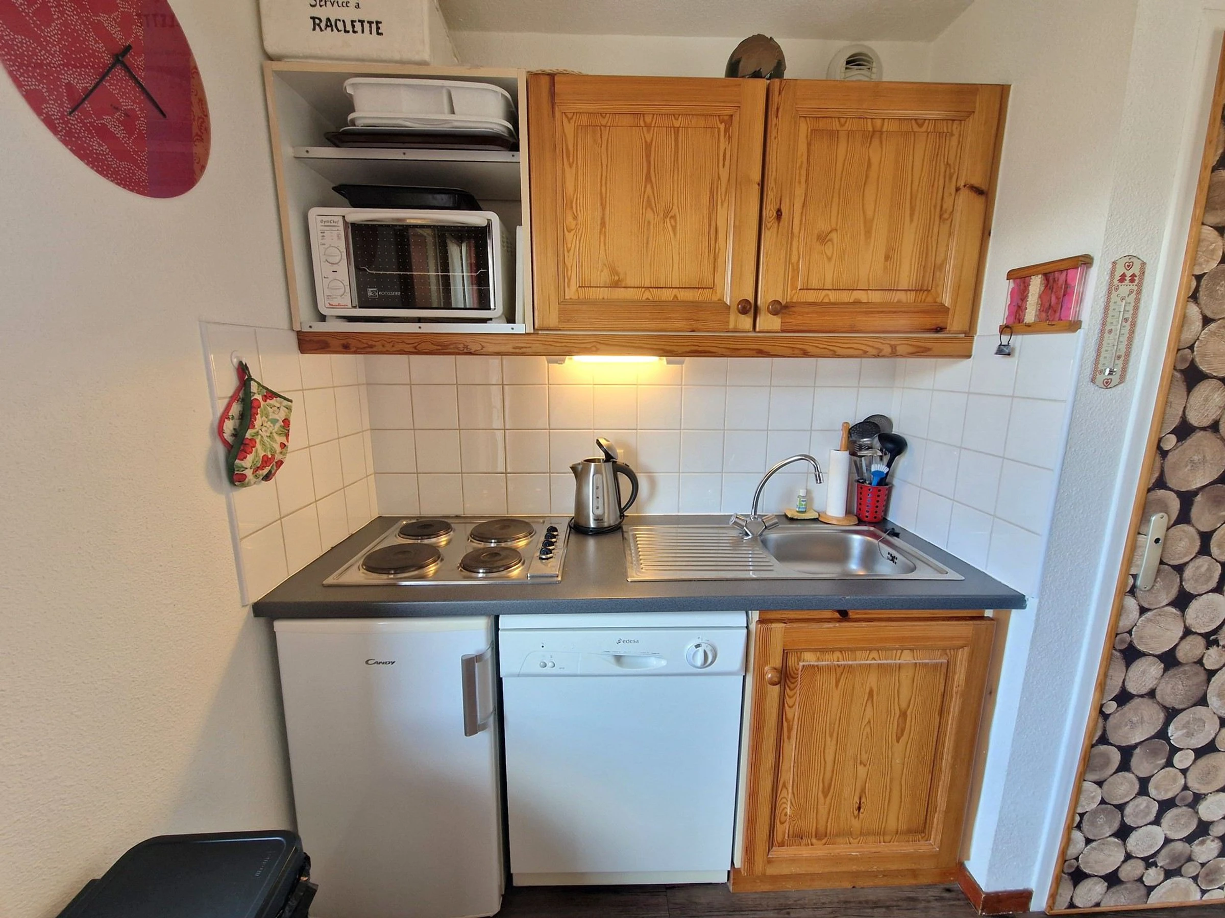 - Kochnische mit 4 Kochplatten, Kühlschrank, Spüle, Geschirrspüler, Mikrowelle und Backofen.