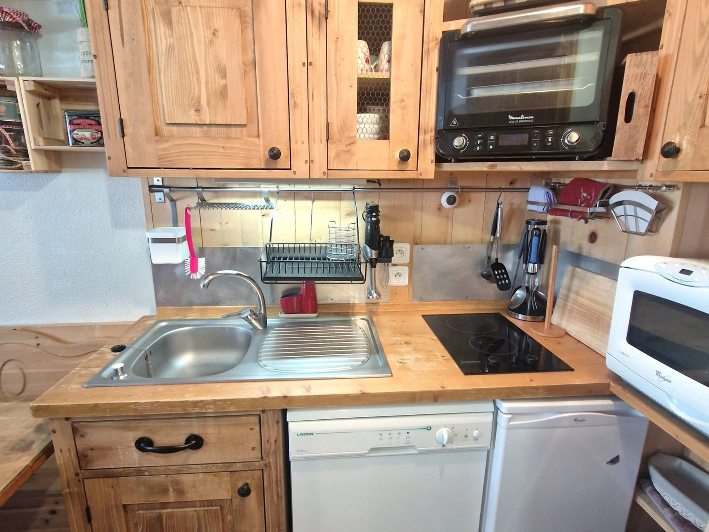 - Kochnische mit 4 Kochplatten, Kühlschrank, Spüle, Geschirrspüler, Backofen.