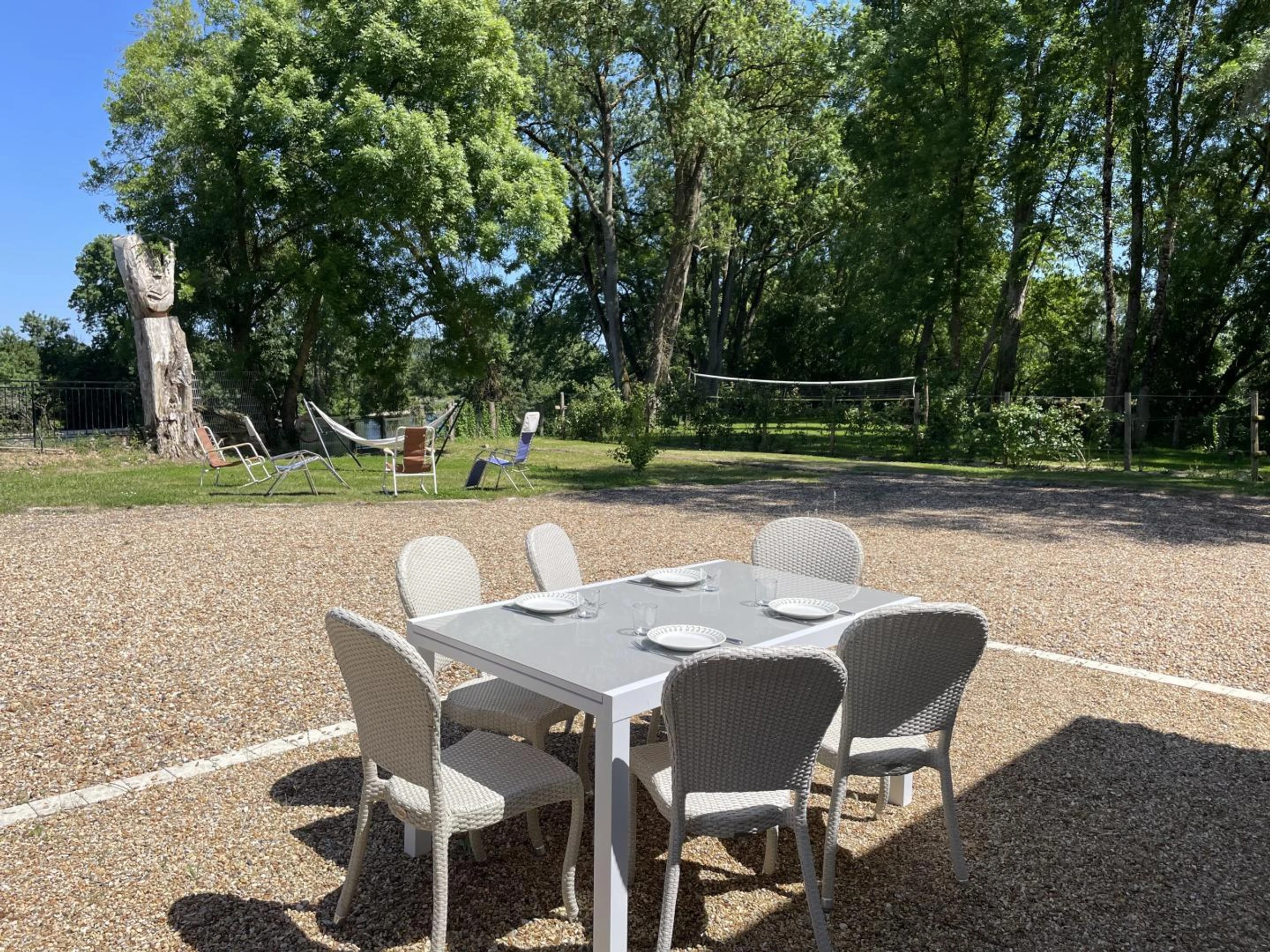 Der Eigentümer stellt Angelausrüstung sowie einen Freizeitbereich mit einem Netz zur Verfügung, das für Volleyball- oder Badmintonspiele genutzt werden kann. Im Inneren erwartet Sie ein charmantes und geräumiges Haus mit Platz für bis zu 8 Personen. Im Winter können Sie es sich am Kamin gemütlich machen (Holz wird gestellt). Durch den ungewöhnlichen Türmchen haben Sie Zugang zu den oberen Stockwerken und von der Terrasse im ersten Stock eine herrliche Aussicht. Die 180 m² große Unterkunft (alles inklusive außer Kurtaxe) grenzt an eine Wassermühle.