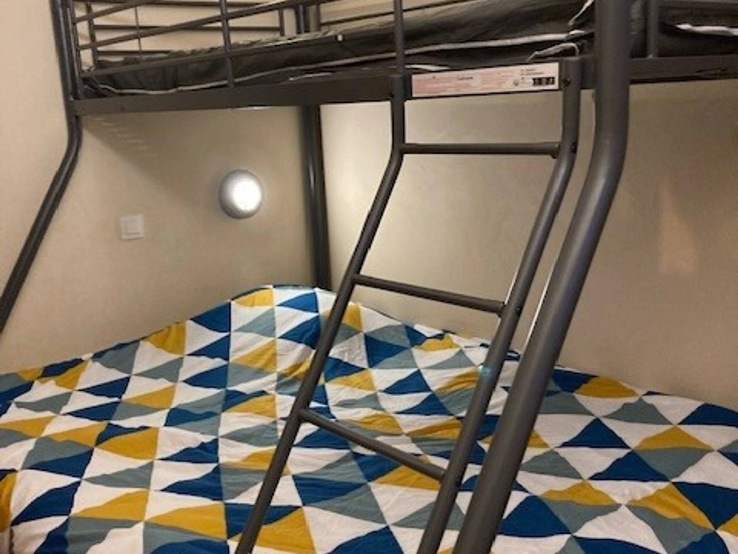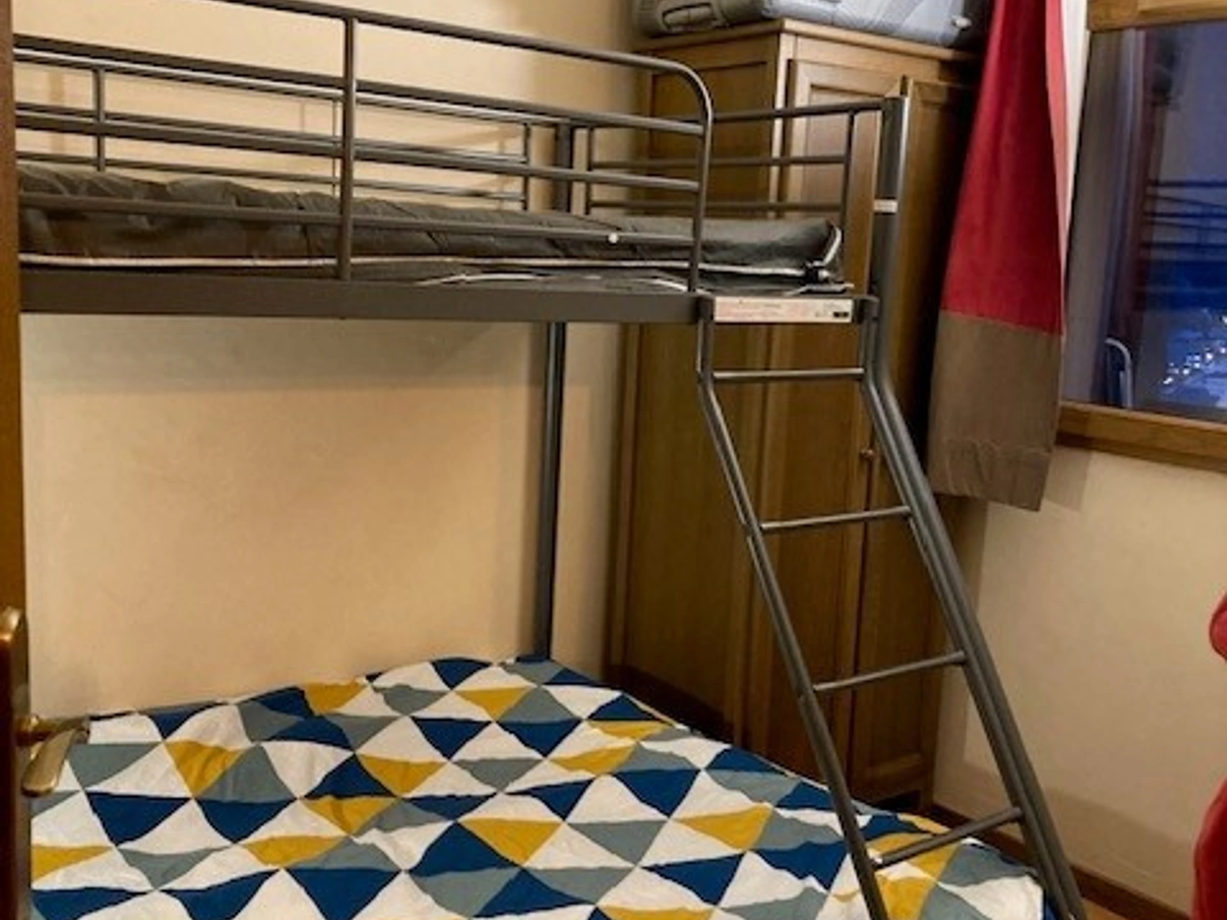 Schlafzimmer (6 m²/West): 1 Doppelbett (140 cm) + 1 Etagenbett (90 cm)
