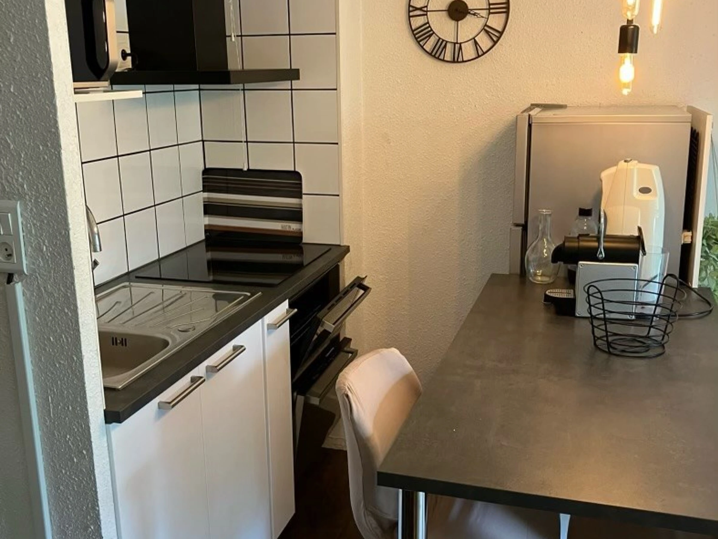 - Küchenbereich: Backofen, Mikrowelle, Induktionskochfeld (4 Kochzonen), Geschirrspüler, Kühlschrank (200 l) mit Gefrierfach (50 l).