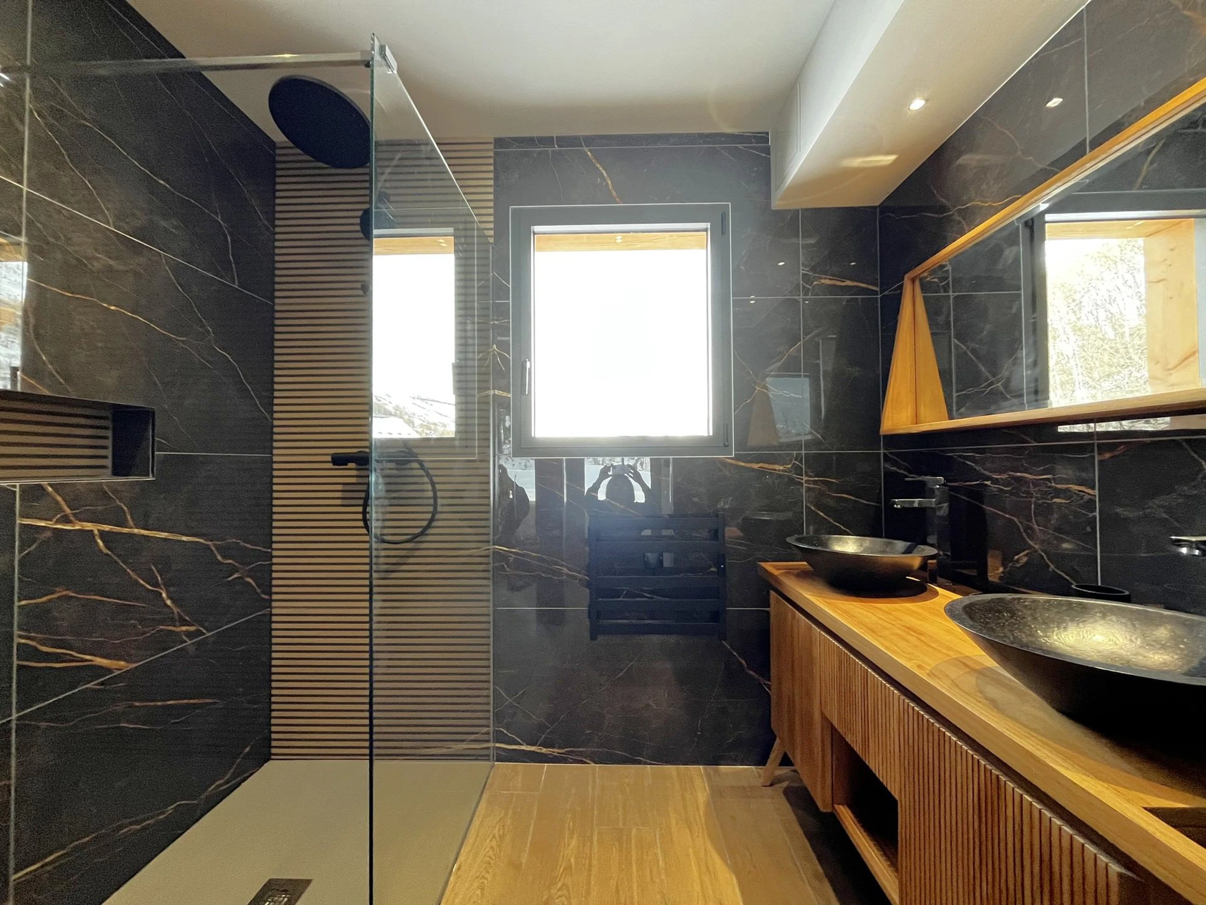 Privates Badezimmer (Ebene +1/ 4 m²/ Schlafzimmer 3): Waschbecken und Dusche.