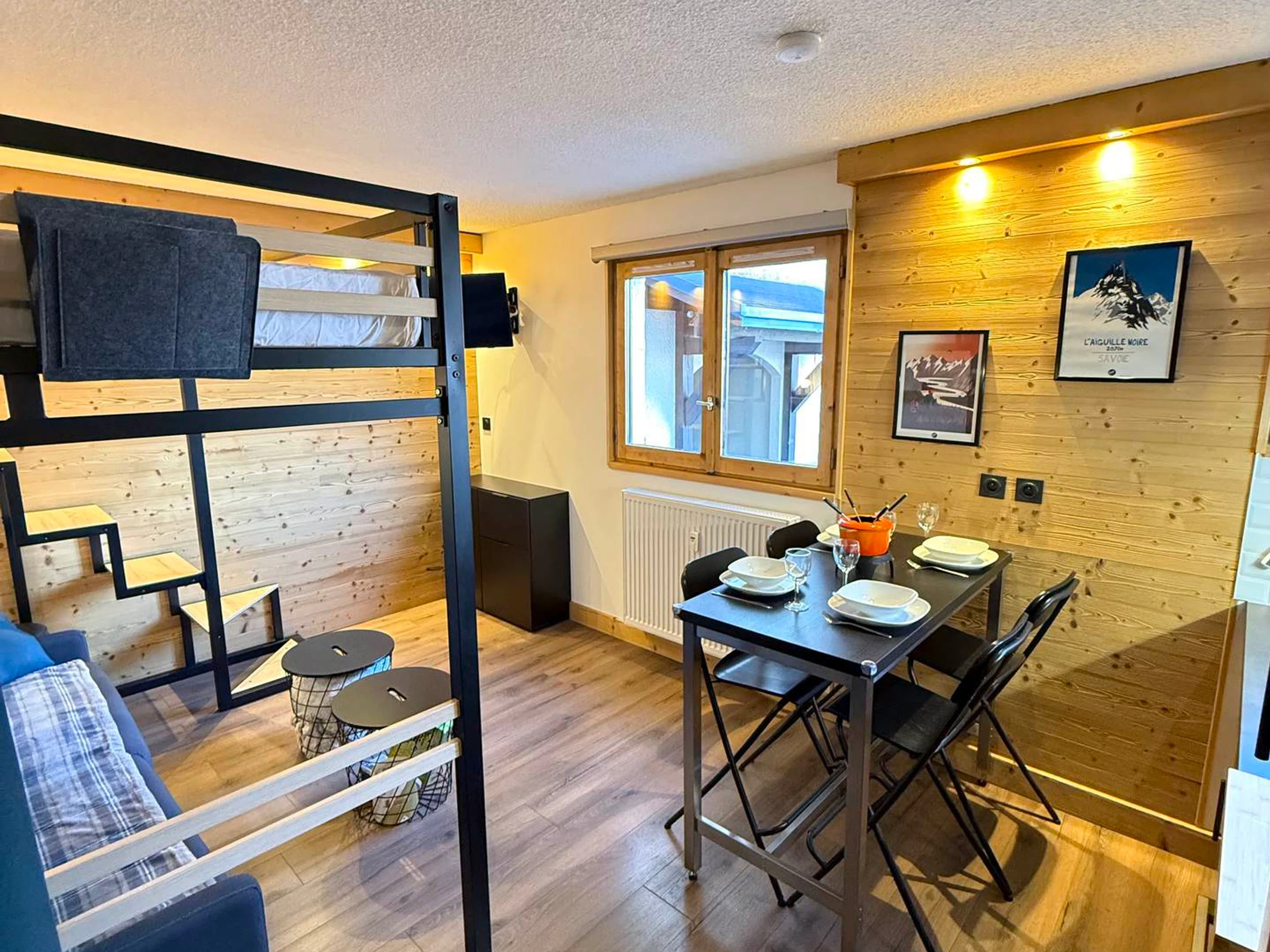 Wohnzimmer: 1 Schlafsofa (160 x 200 cm) + 1 Etagenbett (160 x 200 cm)