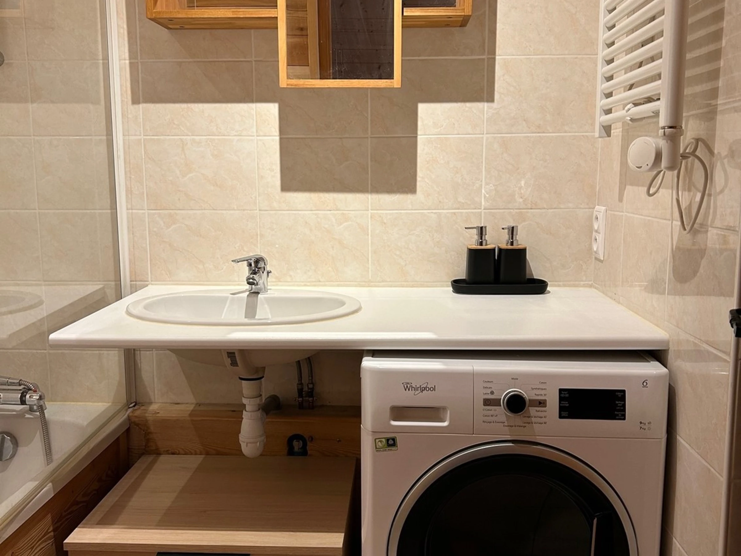 Badezimmer (5 m²): Badewanne, Föhn, Waschtrockner und WC