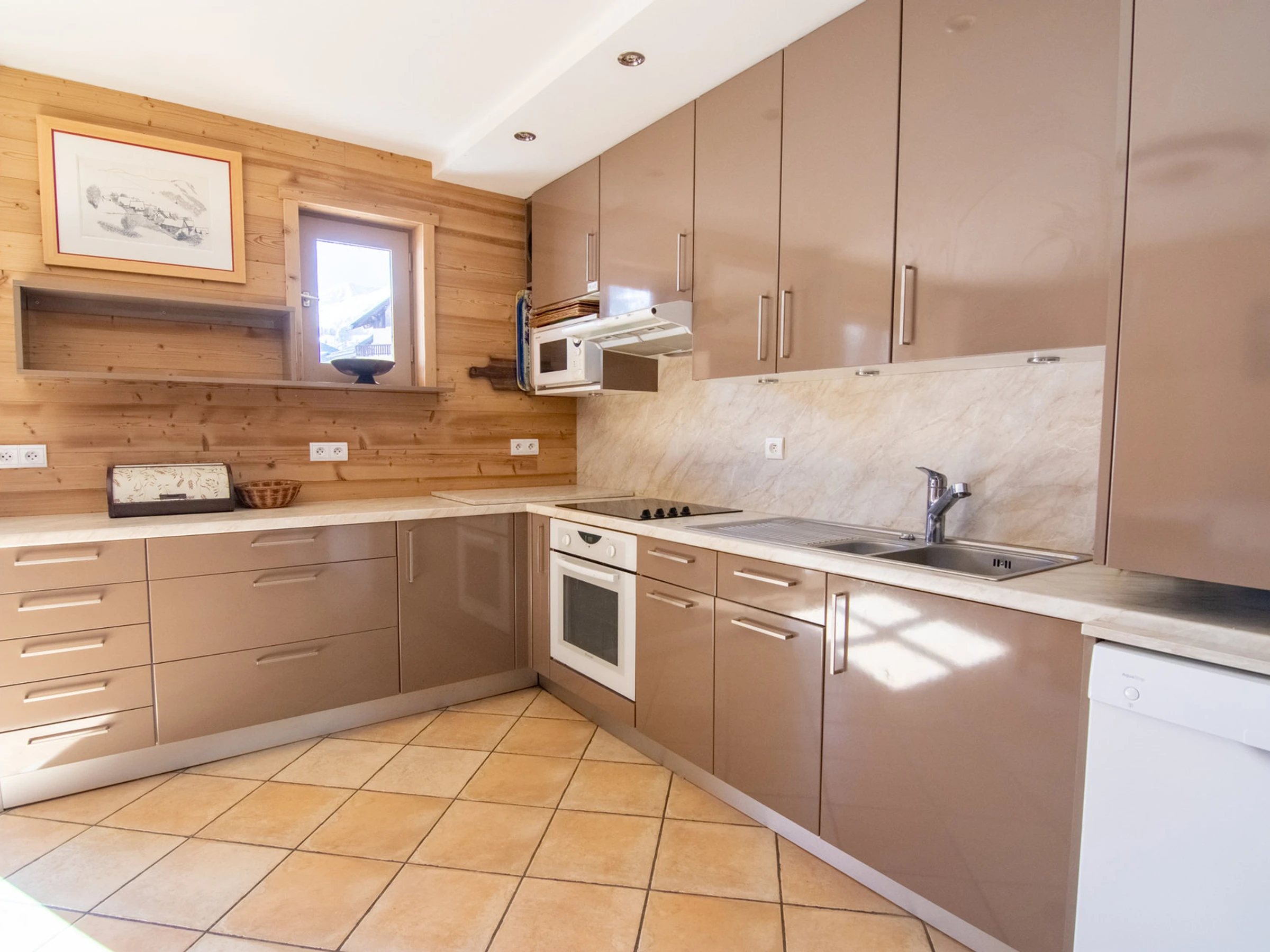 - Küchenbereich: Backofen, Geschirrspüler, Kühlschrank, Mikrowelle, Cerankochfeld (4 Kochplatten).