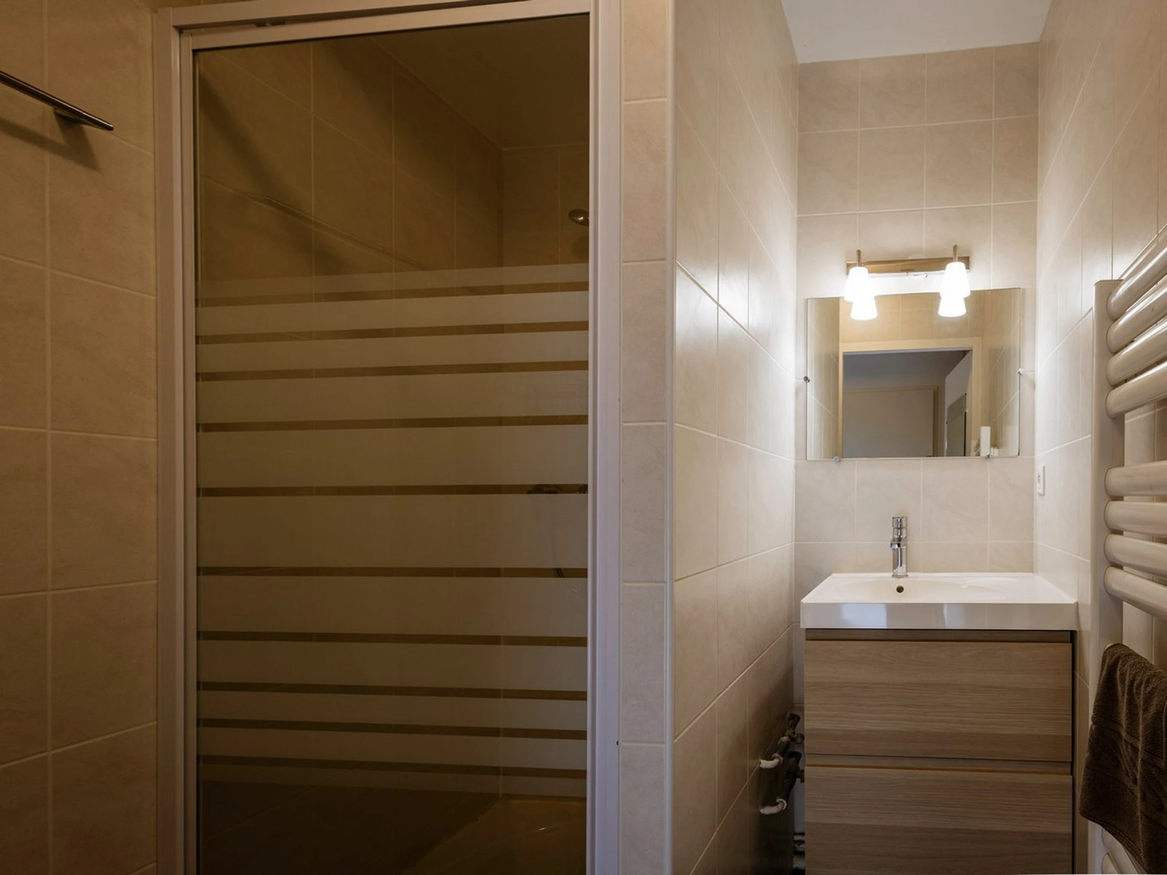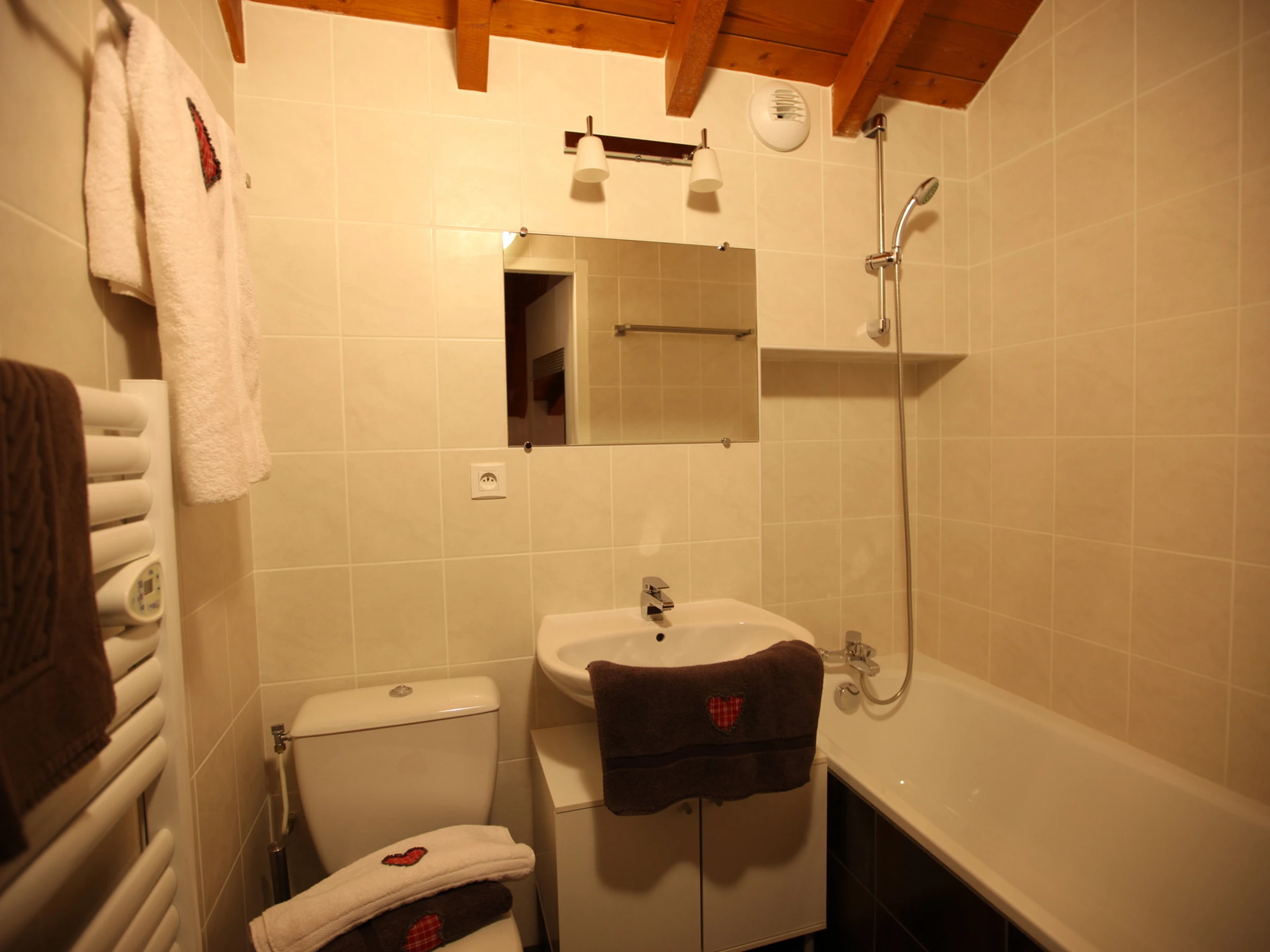 Badezimmer (2,5 m²): Waschbecken, Dusche und Haartrockner. Separates WC.