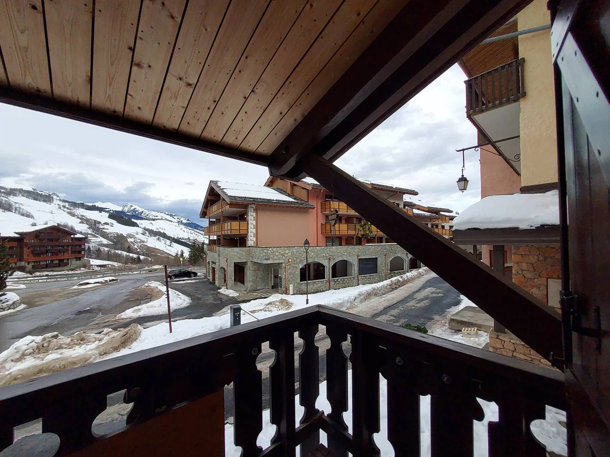 Großer Balkon mit Blick auf den Skilift
