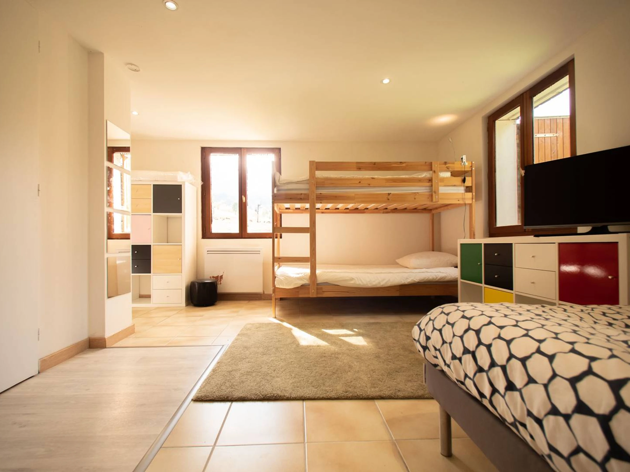 Das Chalet liegt auf einem Felsvorsprung am Eingang des Weilers La Charmette, mit Blick auf den Rocher-Hang.