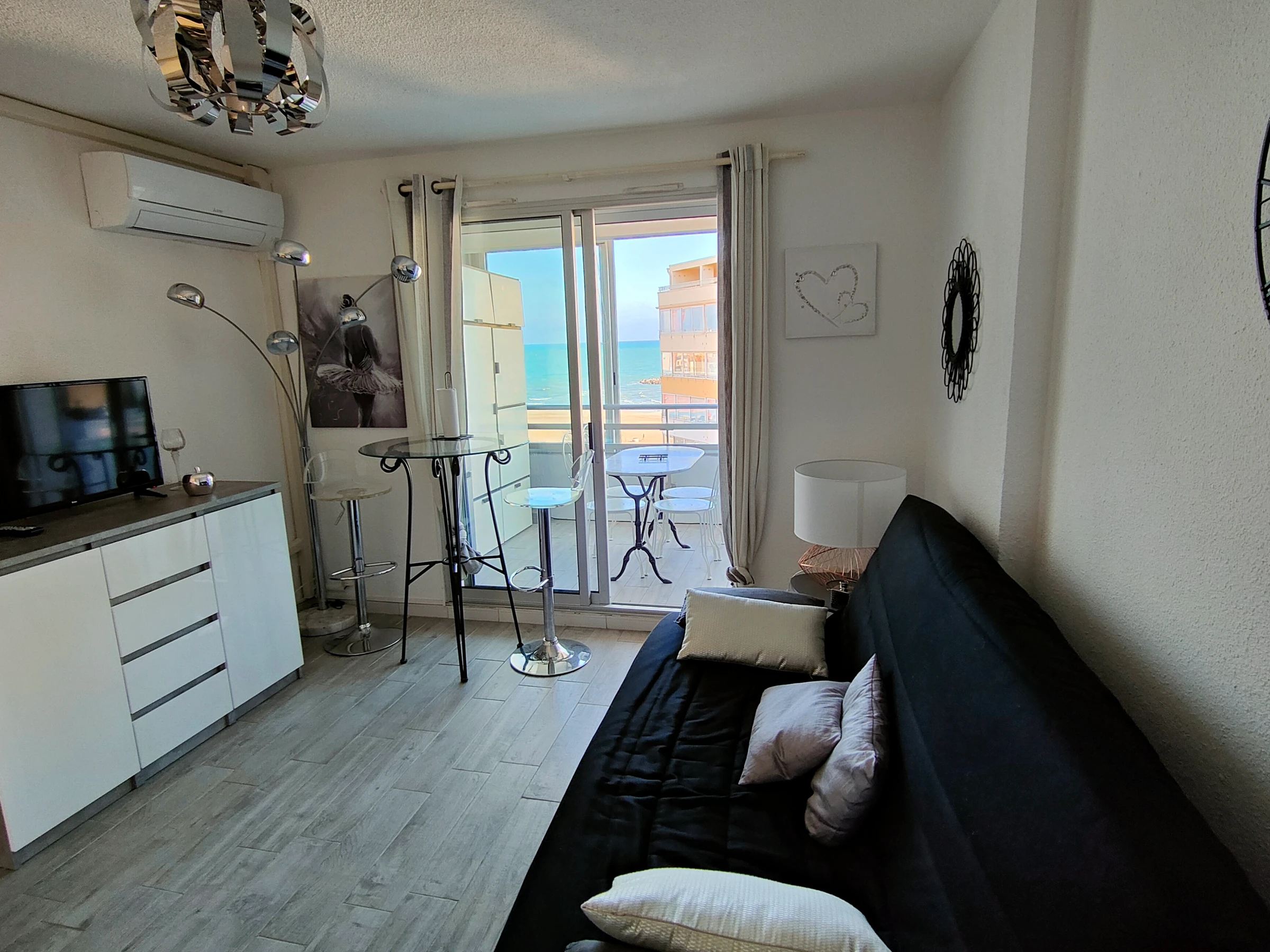Nur 50 Meter vom Strand entfernt, im 5. und obersten Stockwerk mit Aufzug, wird Sie dieses komplett renovierte Apartment mit einem Schlafzimmer mit seinem atemberaubenden Meerblick, modernem Komfort und der idealen Lage in der Nähe von Geschäften bezaubern. Objektbeschreibung: