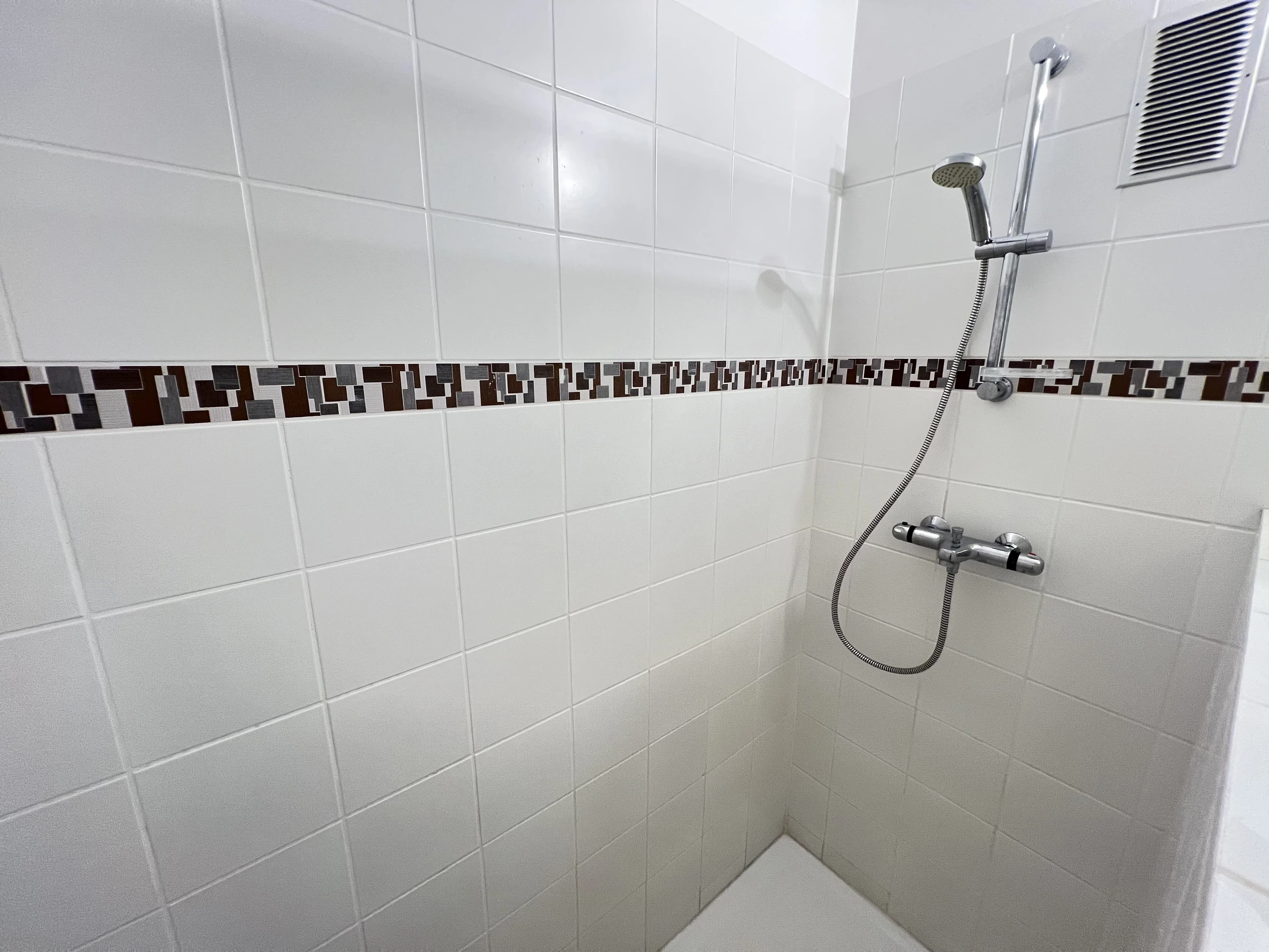 Ziemlich sichere Residenz direkt am Wasser, wo Sie keine Straße überqueren müssen, direkter Zugang zum Strand von der Residenz aus, eine geräumige Wohnung im 1. Stock, bestehend aus einem Eingang mit Schrank, einem großen hellen Wohnzimmer mit einer schön ausgestatteten Küche und möbliert, ein Schlafzimmer mit 2 90-cm-Betten, 1 Schrank und 1 140-cm-Bett, ein 2. Schlafzimmer mit 140-cm-Bett und Stauraum und ein 3. Schlafzimmer/Wohnzimmer mit einem Schlafsofa, ein Badezimmer mit geräumiger Dusche und eine separate Toilette.