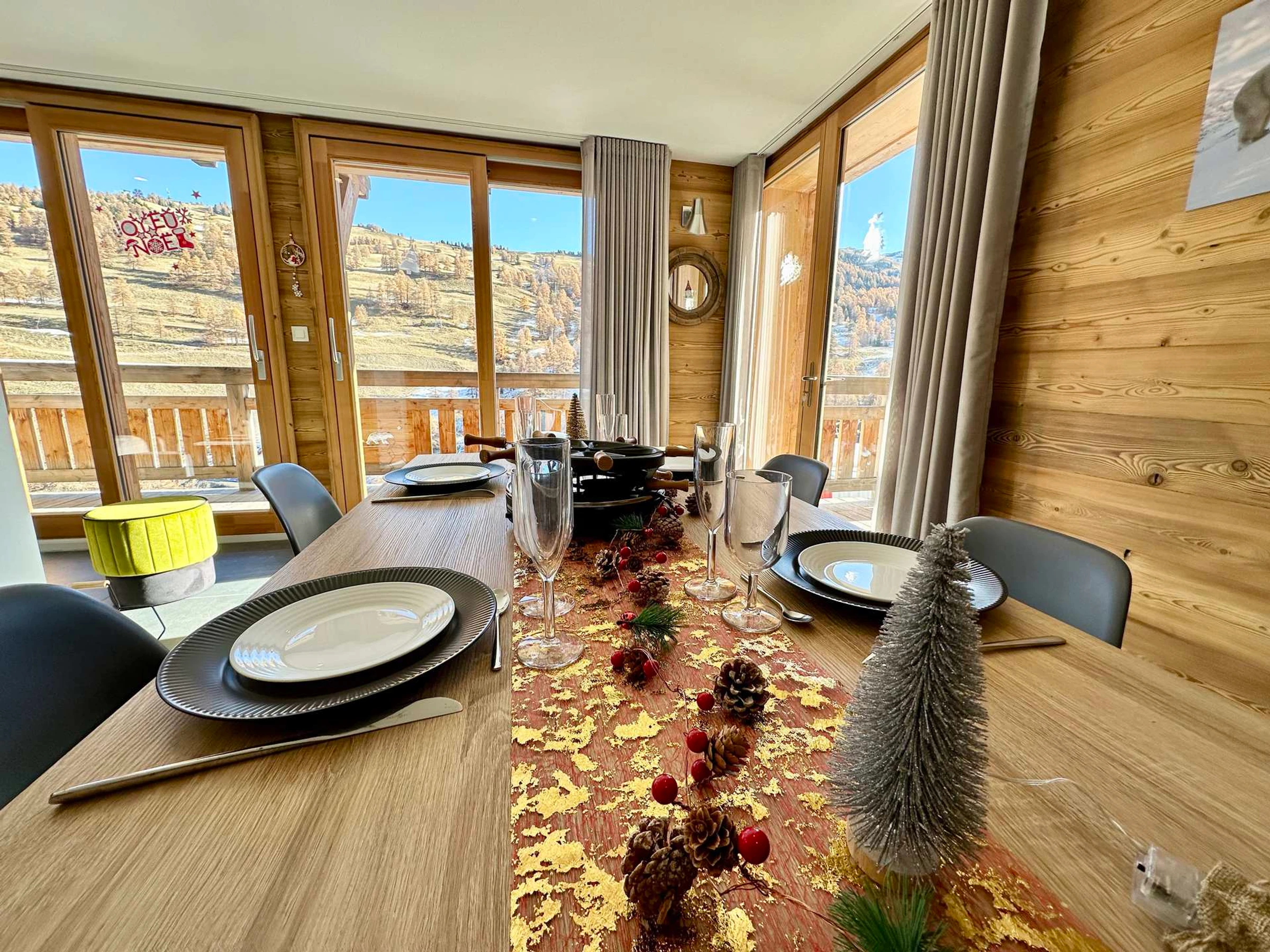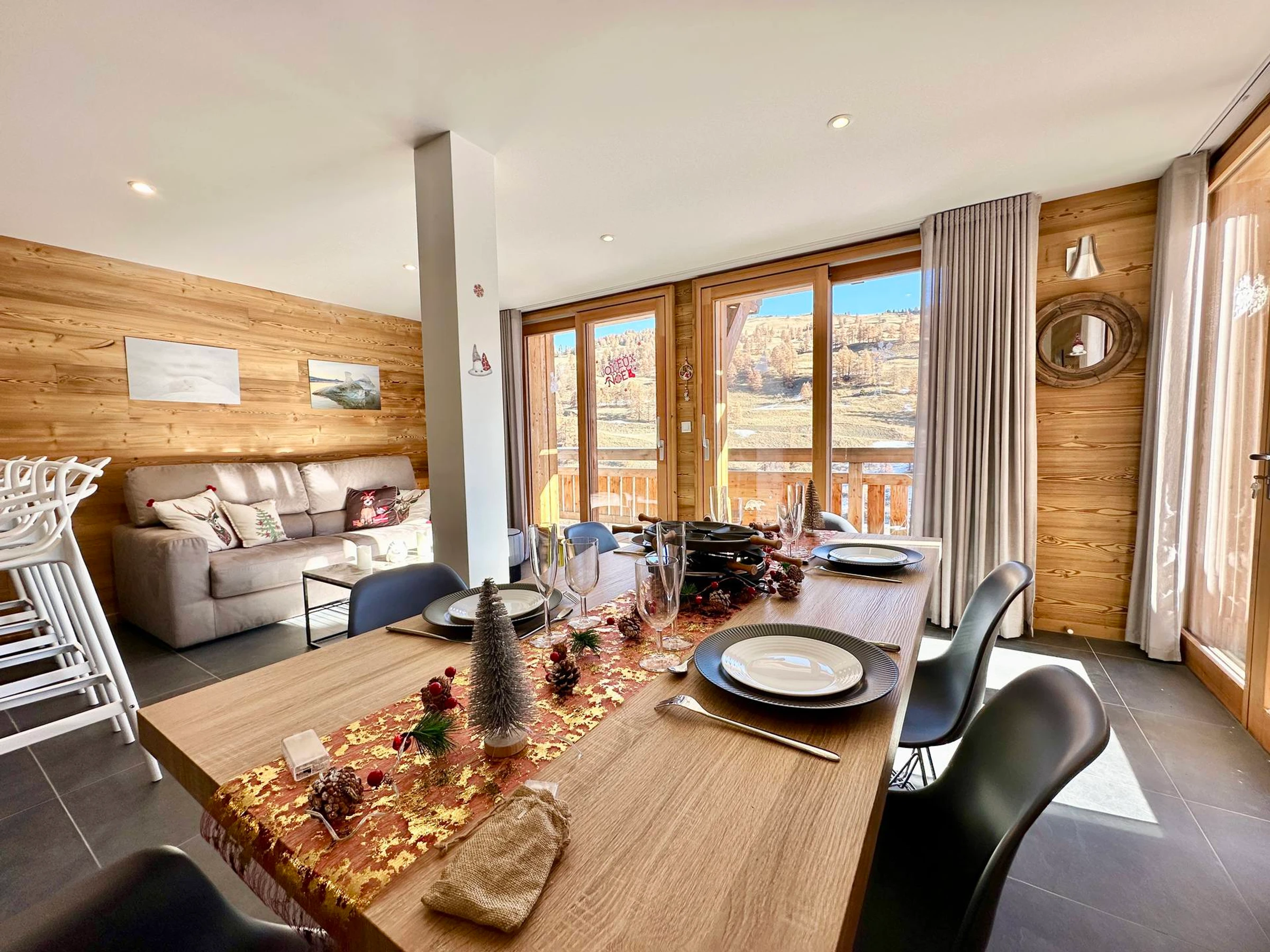 Die Agentur Forêt Blanche präsentiert dieses luxuriöse Apartment in einem Chalet in Vars 2000 mit atemberaubendem Blick auf die Berge Peynier und Paneyron.
