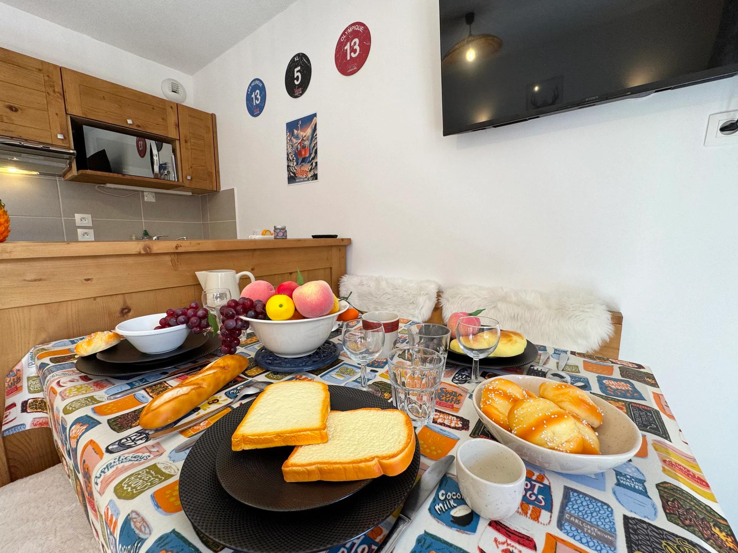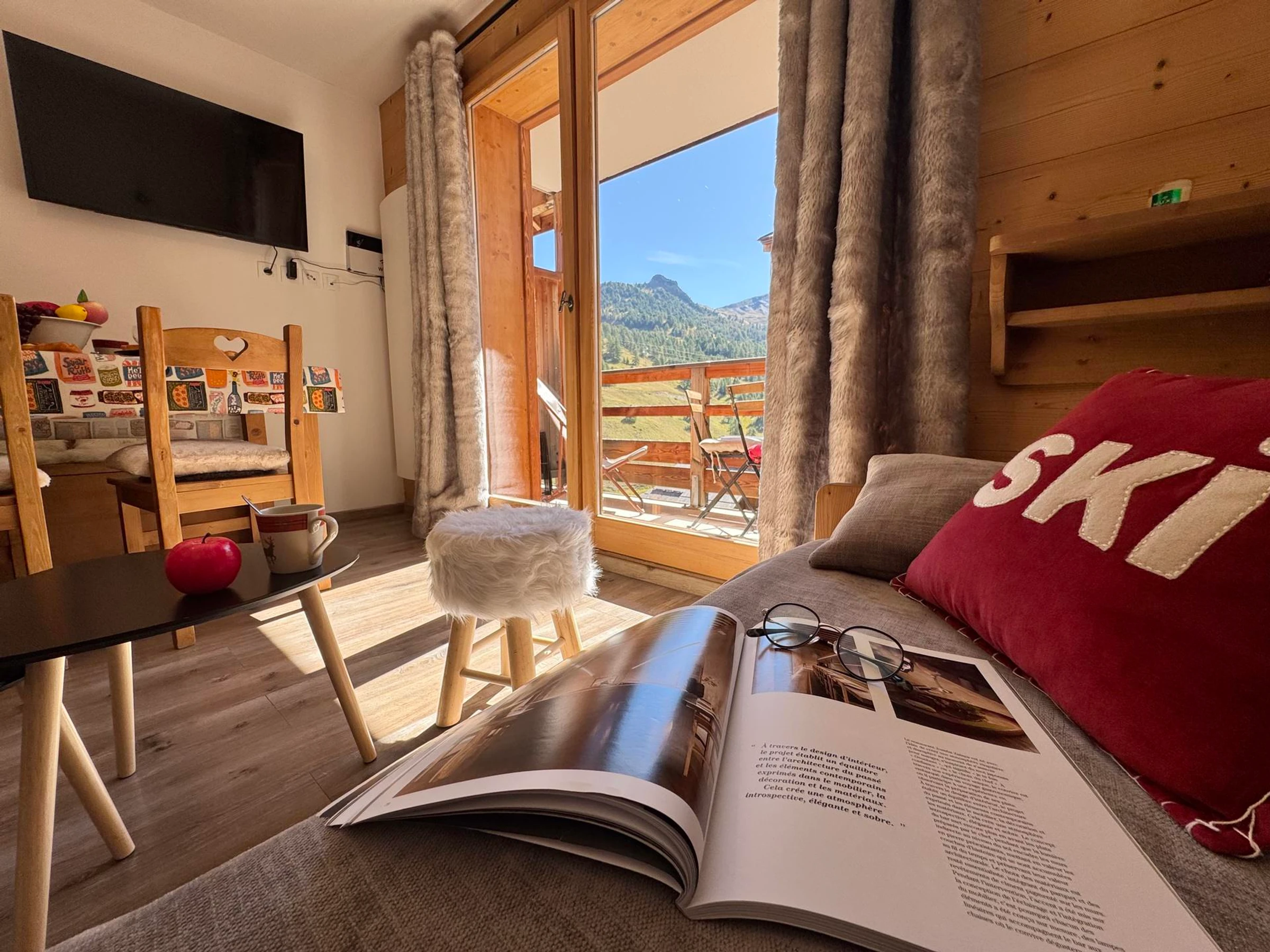 Mit einer Wohnfläche von 32 m² bietet das Apartment ausreichend Platz für bis zu vier Gäste. Genießen Sie den hellen und gemütlichen Wohnbereich mit Zugang zu einem sonnigen Balkon – der perfekte Ort, um Ihr Frühstück mit Blick auf die Alpen zu genießen. Die offene Küche ist komplett ausgestattet (Geschirrspüler, Kühlschrank, Nespresso-Maschine, Filterkaffeemaschine, Toaster, Raclette-Grill, Mikrowelle und Wasserkocher) und lädt zu geselligen Stunden nach einem Tag auf der Piste oder beim Wandern ein.