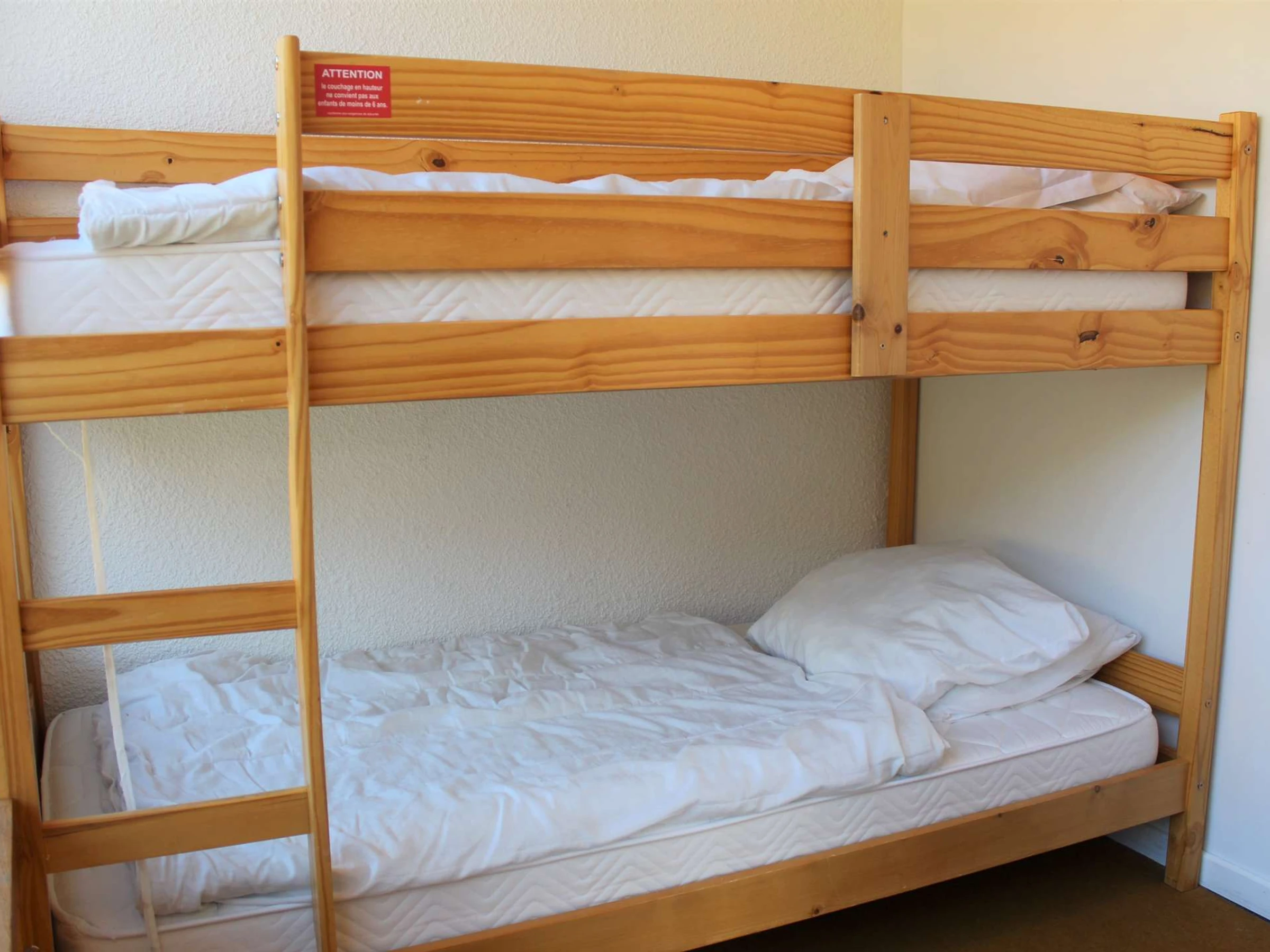 Diese Ferienwohnung verfügt über ein Schlafzimmer mit Doppelbett und ein Schlafzimmer mit zwei Etagenbetten. Das Wohnzimmer ist mit einem Schlafsofa, einer voll ausgestatteten Küchenzeile und einem Essbereich ausgestattet. Das Badezimmer verfügt über eine Badewanne und ein separates WC.