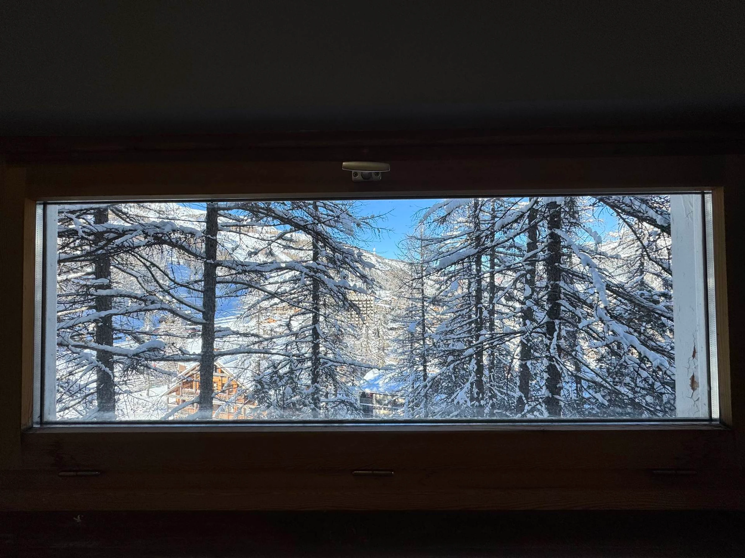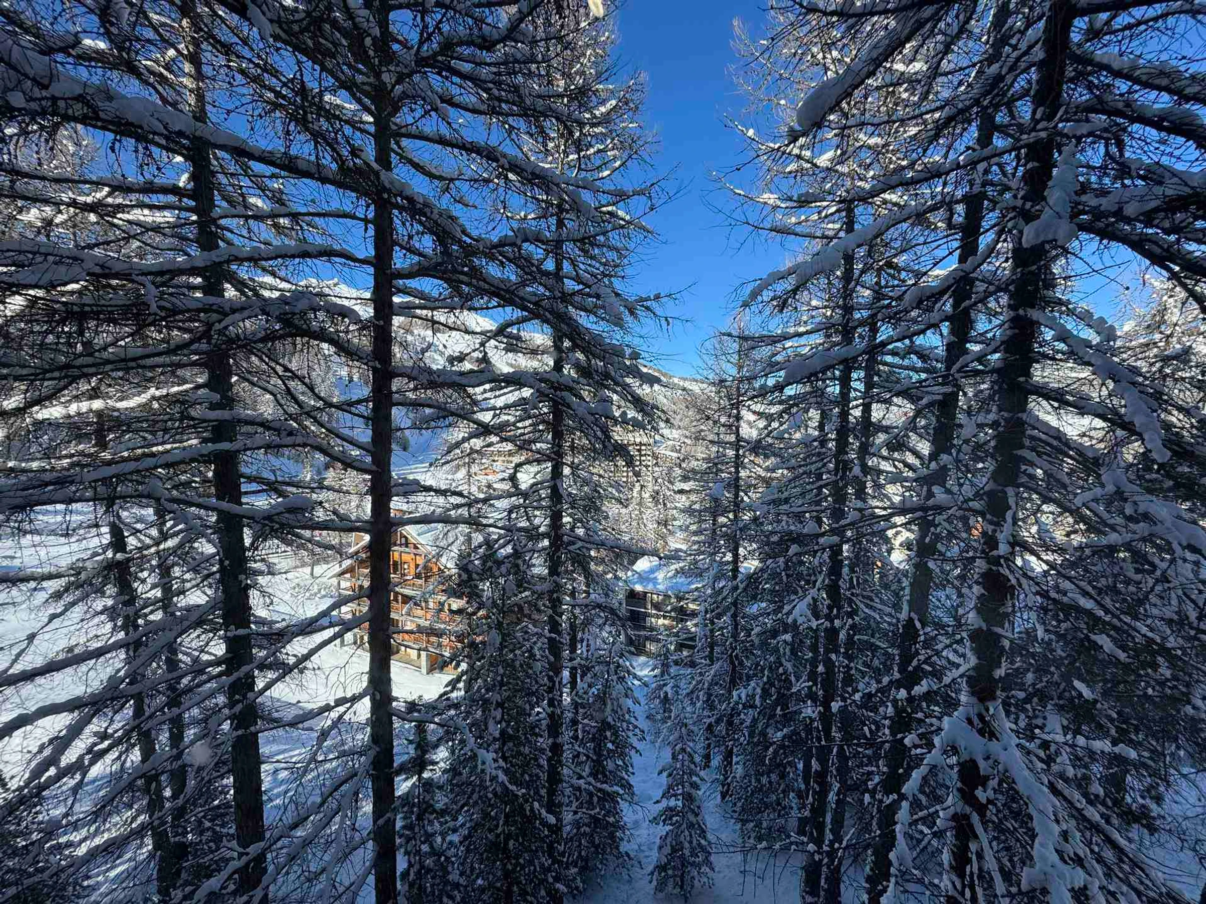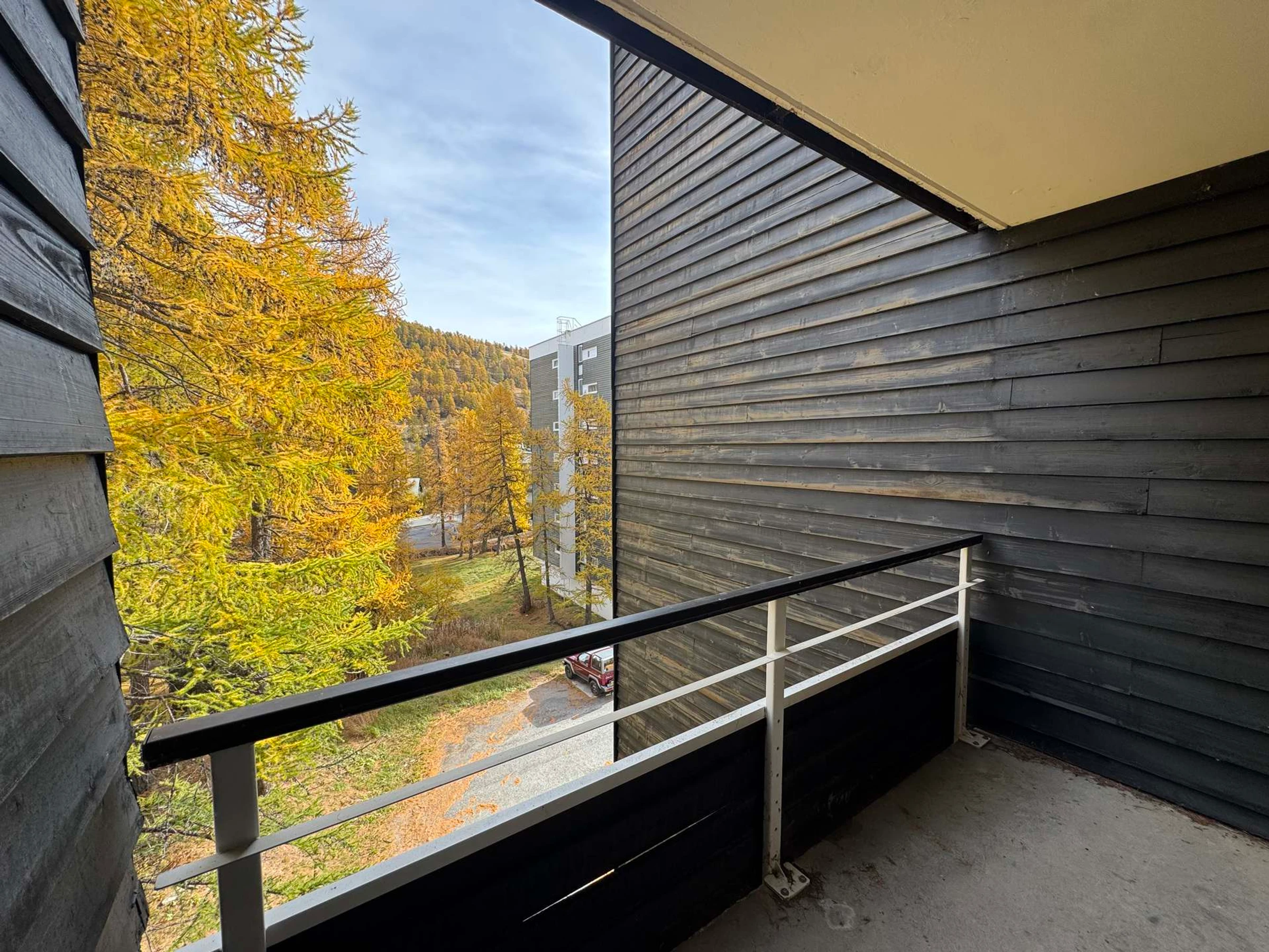 Das Apartment verfügt über einen Skiraum und besticht durch seine ideale Lage in unmittelbarer Nähe zu den Skipisten, den Treffpunkten Point Show und dem Zentrum von Vars. Das 30 m² große Apartment befindet sich im vierten Stock und ist bequem mit dem Aufzug erreichbar. Es bietet Ihnen allen Komfort für einen gelungenen Bergurlaub. Vom Eingangsbereich gelangen Sie in eine voll ausgestattete Küche (mit Grillofen, Induktionskochfeld und Kühlschrank), die sich zu einem hellen und modernen Wohnbereich öffnet. Das in warmen Farbtönen gehaltene Wohnzimmer ist mit einem Schlafsofa und einem Flachbildfernseher ausgestattet. Ein großes Fenster lässt viel Tageslicht herein und führt auf einen Balkon mit herrlichem Blick auf die Lärchen – perfekt zum Entspannen nach einem Tag auf der Piste.