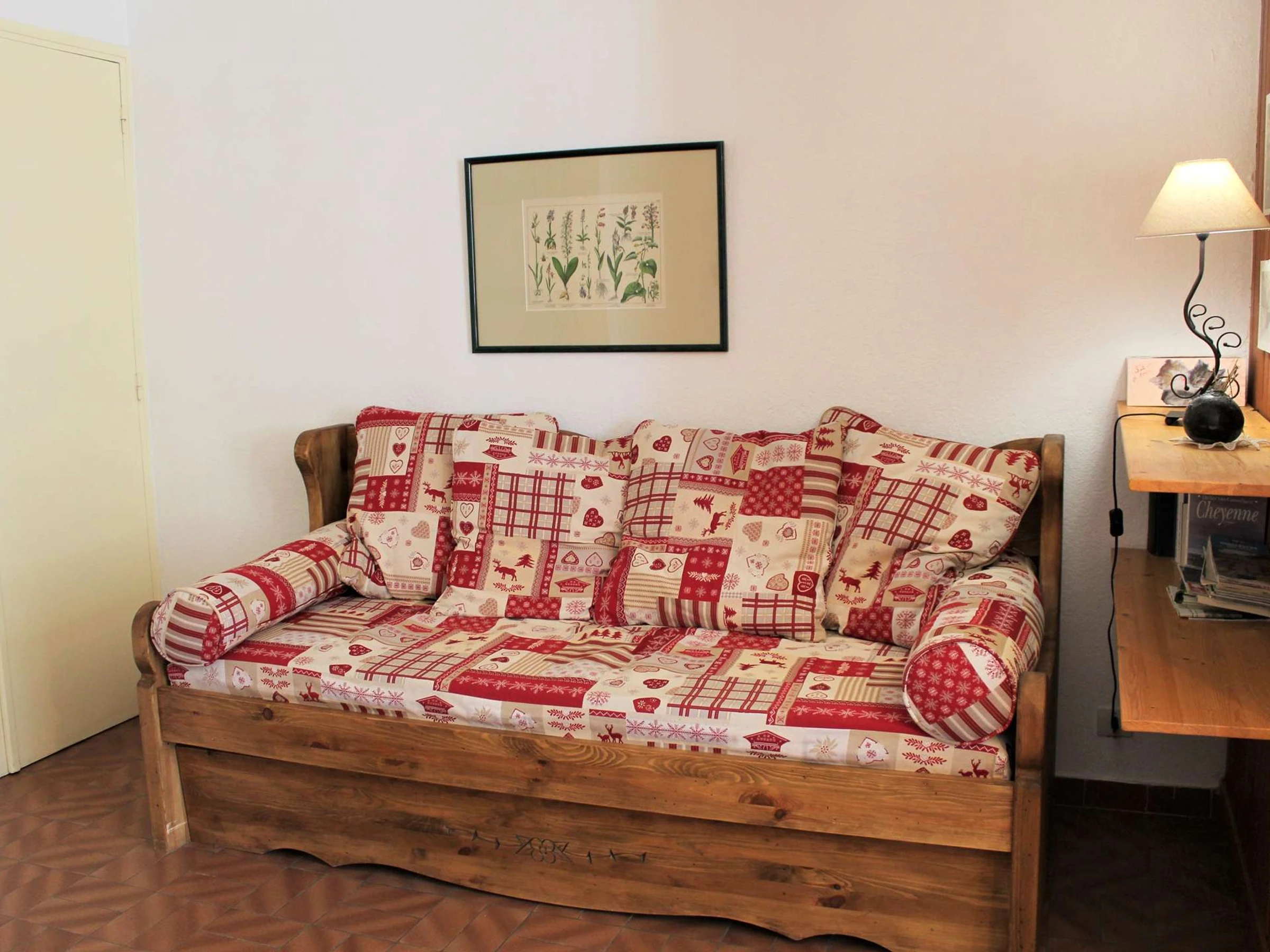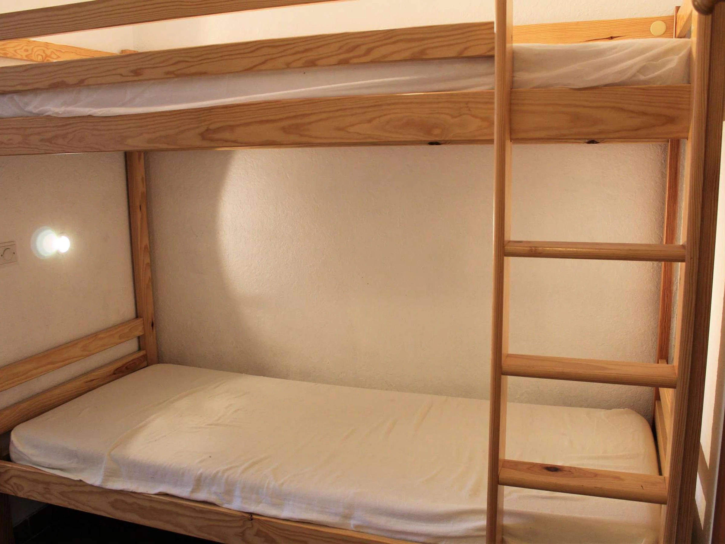 Unterkunft: Diese Ferienwohnung mit Südbalkon besteht aus einem ausgestatteten Küchenbereich und einem Wohnzimmer mit zwei ausziehbaren Einzelbetten. Im Eingangsbereich finden Sie eine Bergecke mit zwei Einzel-Etagenbetten (mit Vorhang getrennt) sowie ein Badezimmer mit Dusche und separatem WC.