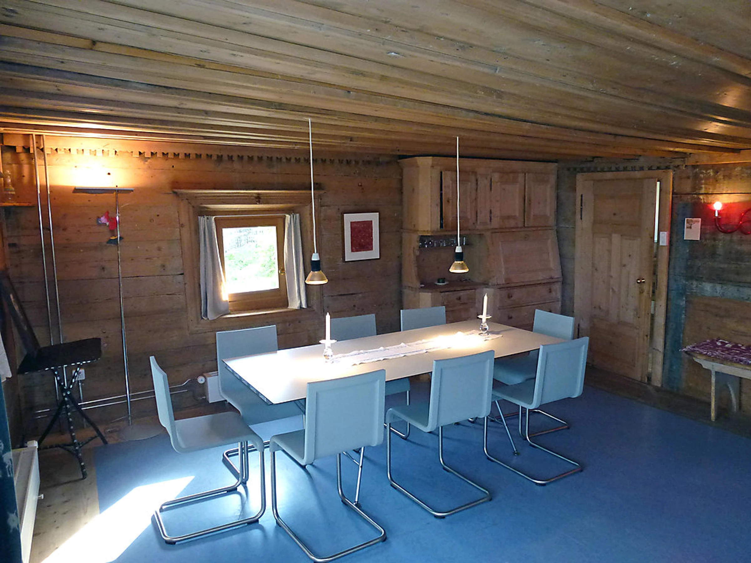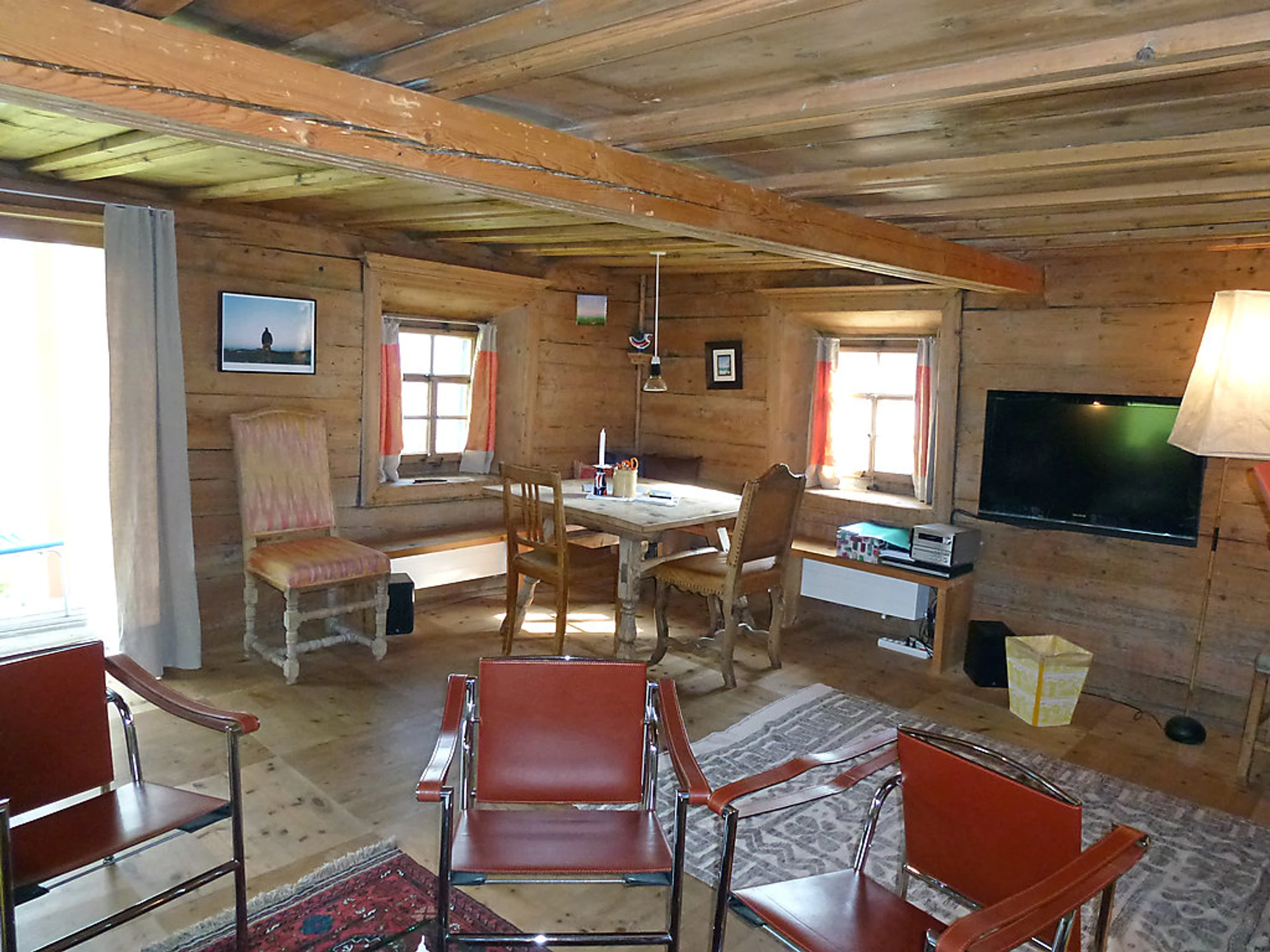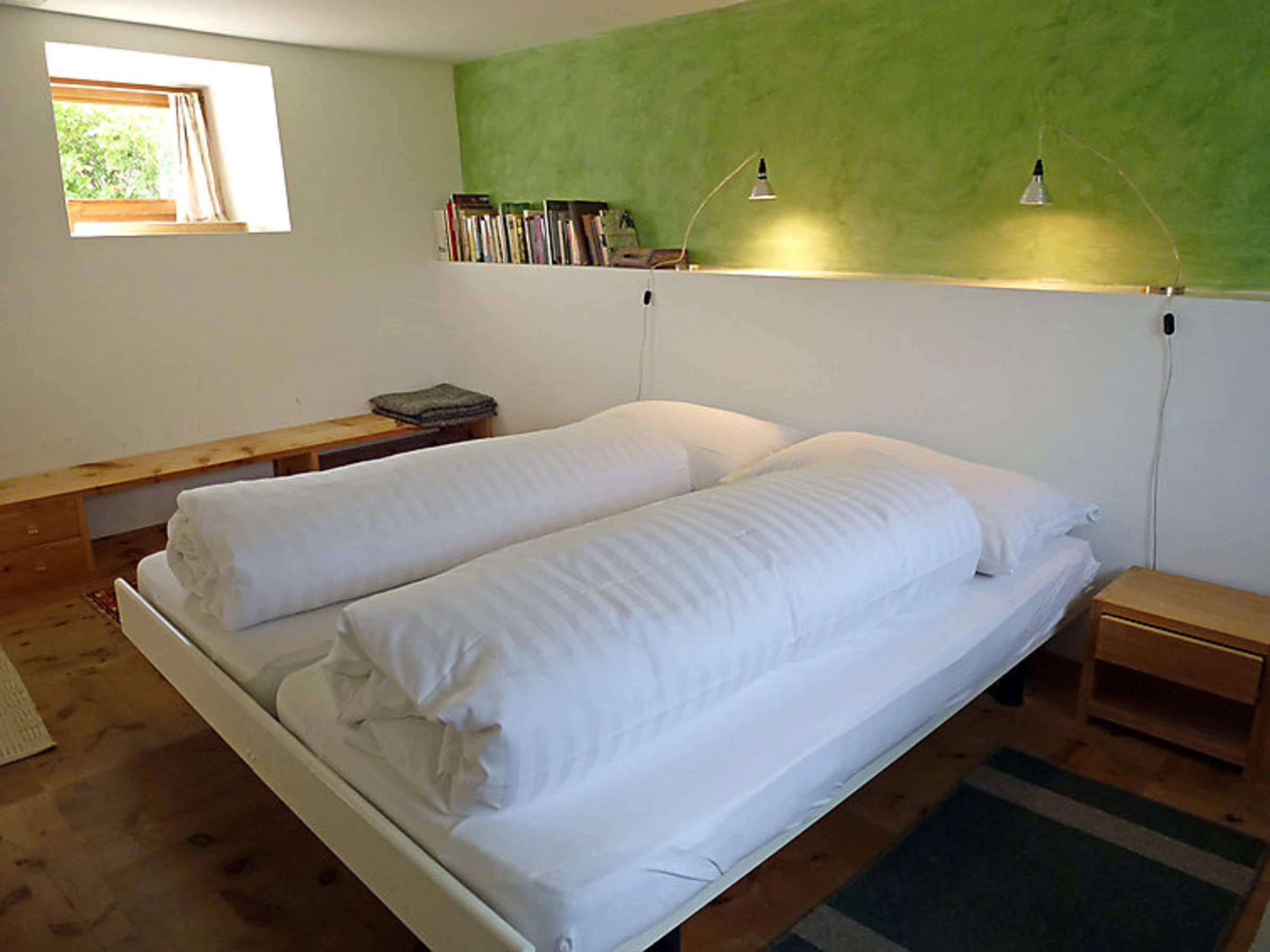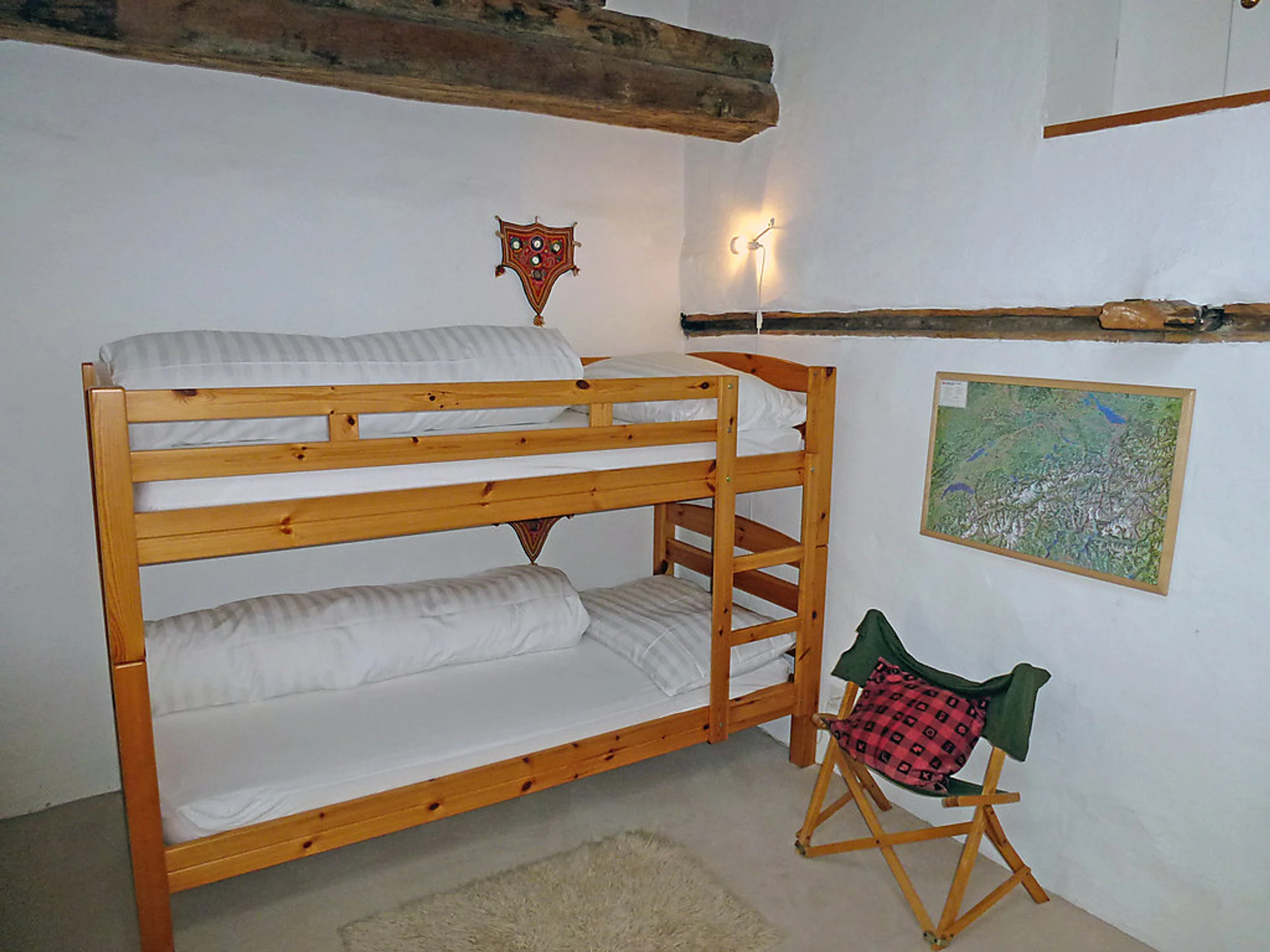 7-Zimmer-Bauernhaus 270 m2. Geräumig und hell, sehr rustikal und mit viel Holz eingerichtet: grosses Wohnzimmer mit offenem Kamin und Kabel-TV (Flachbildschirm), Radio und Stereoanlage. Ausgang zum Balkon. 1 Zimmer mit 2 Betten (90 cm, Länge 200 cm), Bad/WC. Sep. WC. Unteres Geschoss: grosses Esszimmer mit Holzofen. Ausgang zum Balkon. Kleine Küche (Backofen, Geschirrspüler, 4 Glaskeramikherd Platten, elektrische Kaffeemaschine, Racletteofen Fondue Set (Käse)) mit Holzofen. Ausgang zum Gartensitzplatz. Obergeschoss: 1 Zimmer mit 2 Betten. 1 Zimmer mit 1 x 2 Etagenbetten. 1 Doppelzimmer. Bad/WC, Doppelwaschbecken. Kleiner Balkon 10 m2, grosser Balkon 20 m2, Gartensitzplatz 9 m2. Terrassenmöbel, Liegestühle (2). Herrliche Sicht auf die Berge, das Tal, die Skipiste und die Landschaft. Zur Verfügung: Waschmaschine, Wäschetrockner, Babybett bis 3 Jahre, Holz (gratis). Internet (Wireless LAN, gratis). Parkplatz in 40 m. Bitte beachten: Nichtraucher-Haus. Feuerlöscher. Boiler 300 l. Weinkeller im Untergeschoss. Alte Holzböden und Holztreppen. Achtung: niedrige Türrahmen und Decken. Treppe ohne Geländer. Die Betten im Zweibettzimmer im Obergeschoss messen 90 x 190 cm. Enthaltet: ERV assurance annulation gratuite, Endreinigung Erhältlich vor Ort mit Aufpreis: Babybett (bis 2 Jahre) 30.7EUR pro Woche Obligatorische Extra Dienstleistungen vor Ort: Wäsche (Erstausstattung Bett- und Toilettenwäsche) 23.0EUR pro Person, Kurtaxe 3.3EUR pro Person/Tag