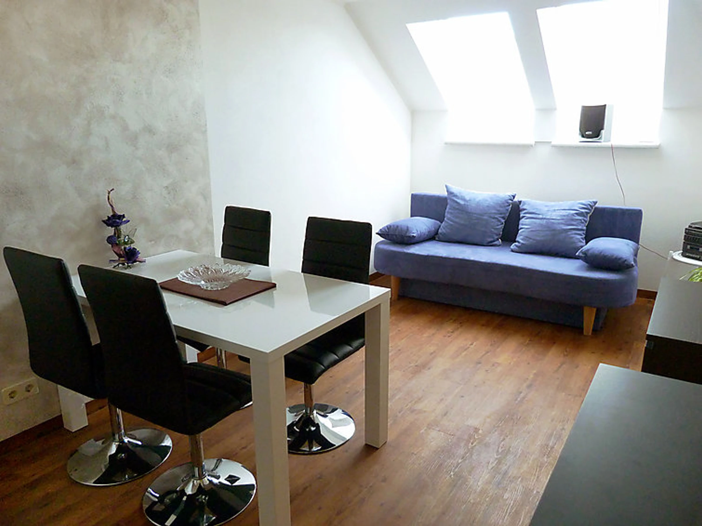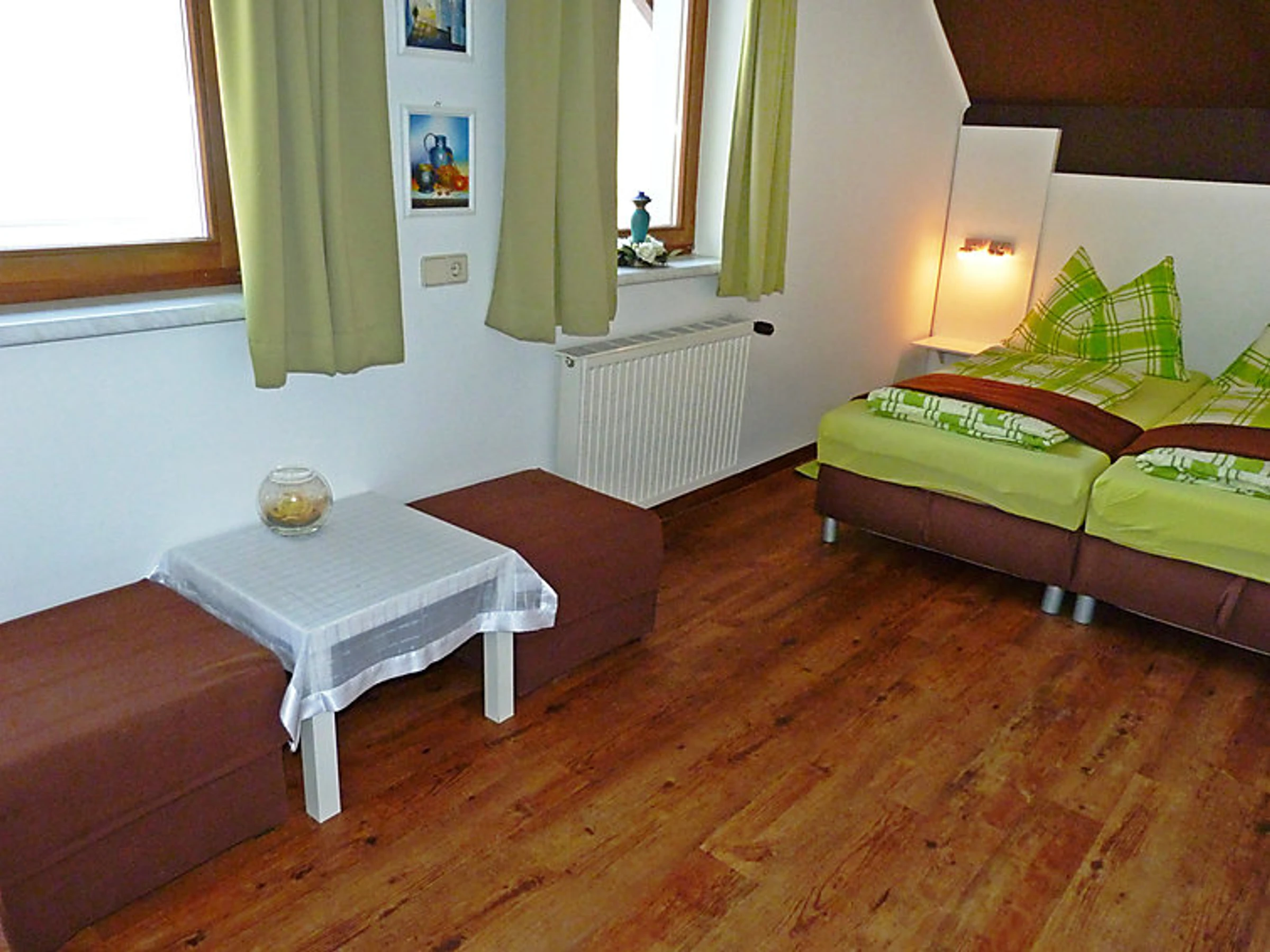 2-Zimmer-Wohnung 50 m2 im 1. Stock. Wohnzimmer mit 1 Doppeldiwanbett, Sat-TV und Radio. 1 Doppelzimmer mit Dusche/WC. Ausgang zur Terrasse. Offene Küche (4 Kochplatten, Geschirrspüler, Mikrowelle). Dusche/WC. Terrasse 12 m2. Terrassenmöbel. Maximal 1 Haustier/Hund erlaubt. Die Wohnung ist teilweise abgeschrägt. In der Vor - und Nachsaison sind auch 2 Hunde erlaubt. Erhältlich vor Ort mit Aufpreis: Haustier 20.0EUR pro Woche Obligatorische Extra Dienstleistungen vor Ort: Kurtaxe 2.5EUR pro Person/Tag, Energiekosten 0.3EUR pro kWh (Kilowattstunde)