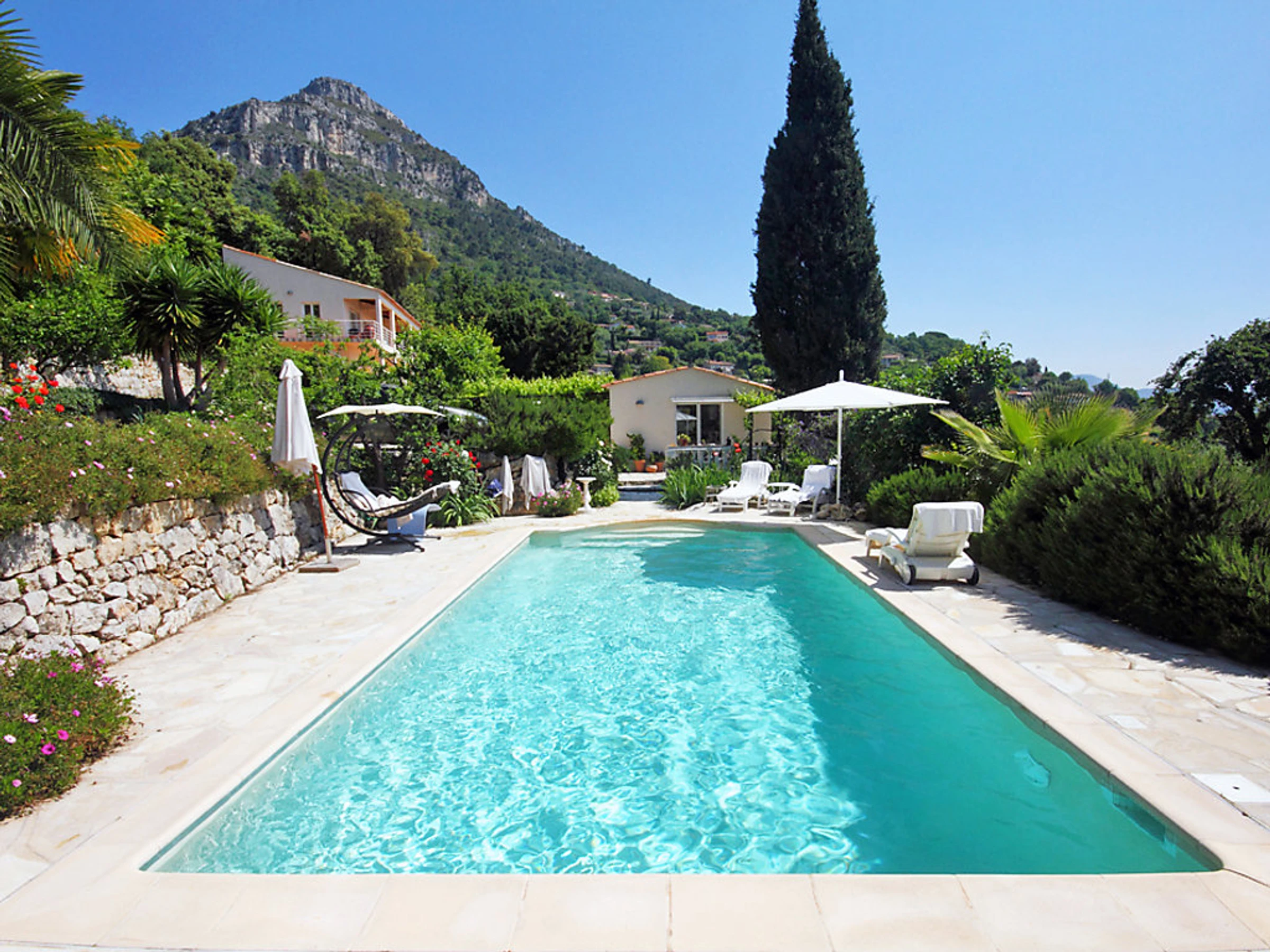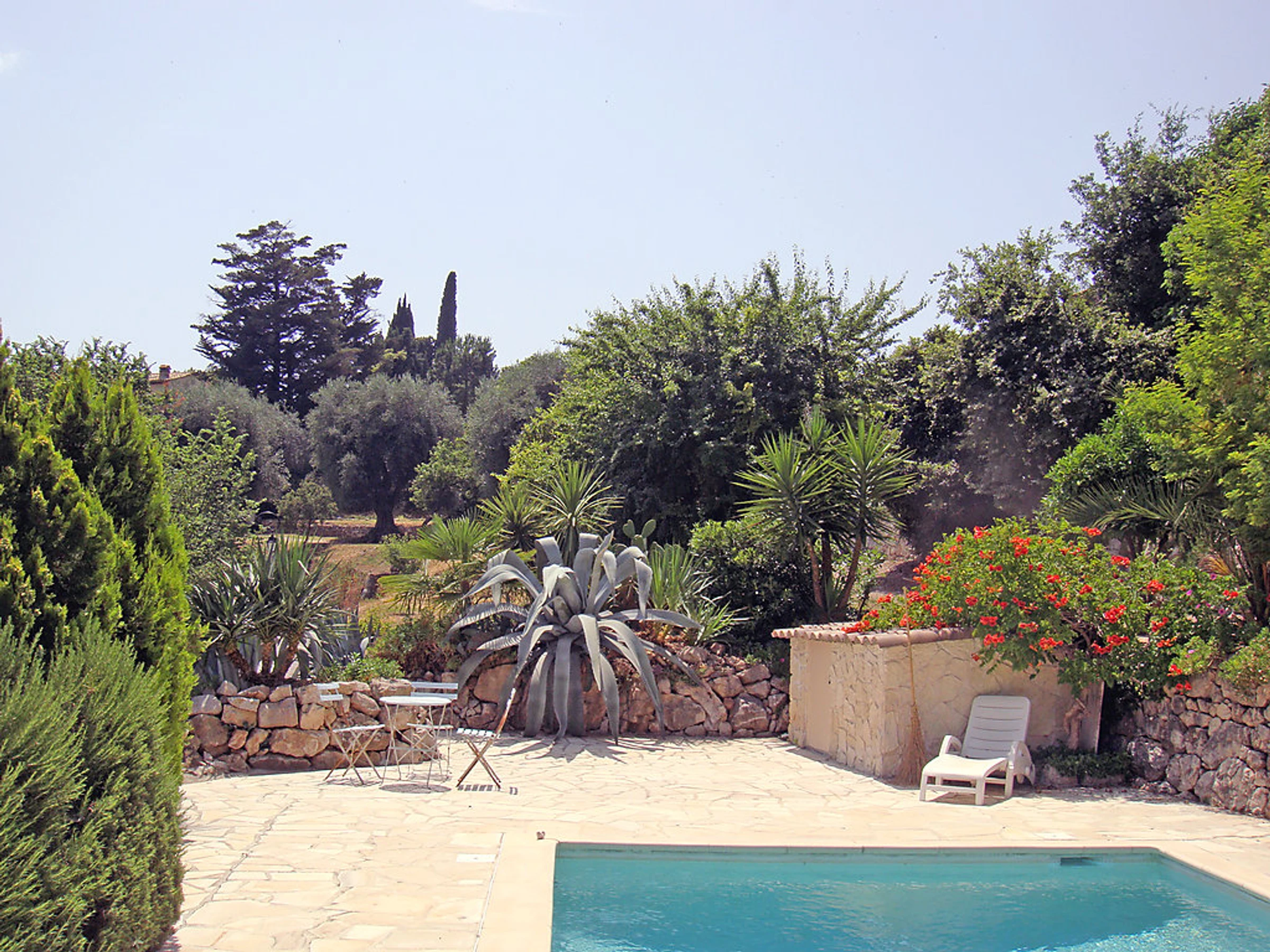 St Jeannet 8 km von Vence: Einfamilienhaus "La Fontonne", umgeben von Bäumen. Am Ortsrand, 300 m vom Zentrum von St Jeannet, 18 km vom Meer. Zur Alleinbenutzung: Grundstück 3'400 m2 mit Rasen und Blumen, Schwimmbad (9 x 4 m, 90 - 190 cm tief, 05.04.-15.10.) mit Innentreppe. Parkplatz auf dem Grundstück, öffentliche Parkplätze auf der Strasse. Einkaufsgeschäft, Restaurant 300 m, Steinstrand 18 km. Bitte beachten: Fahrzeug empfohlen.