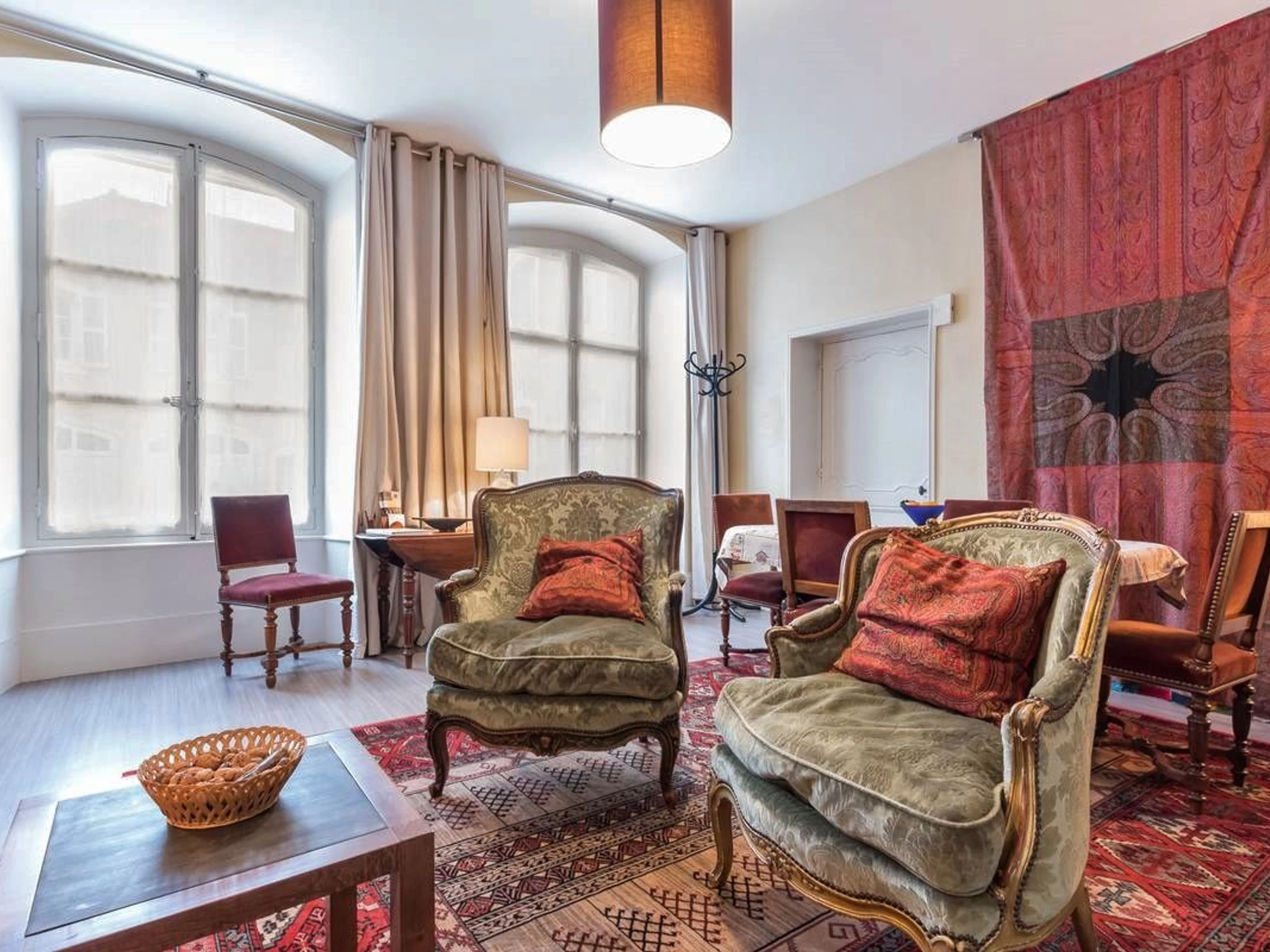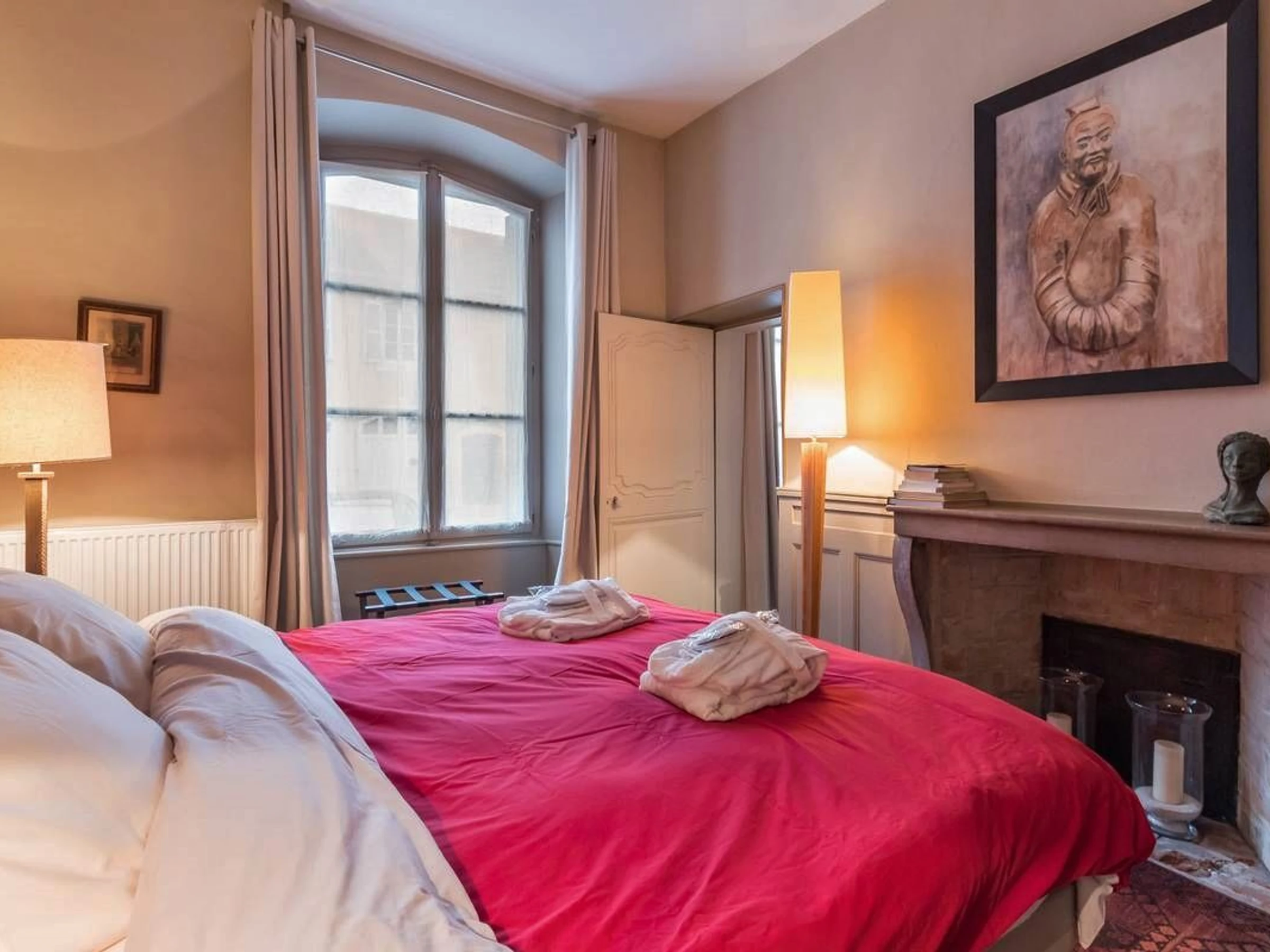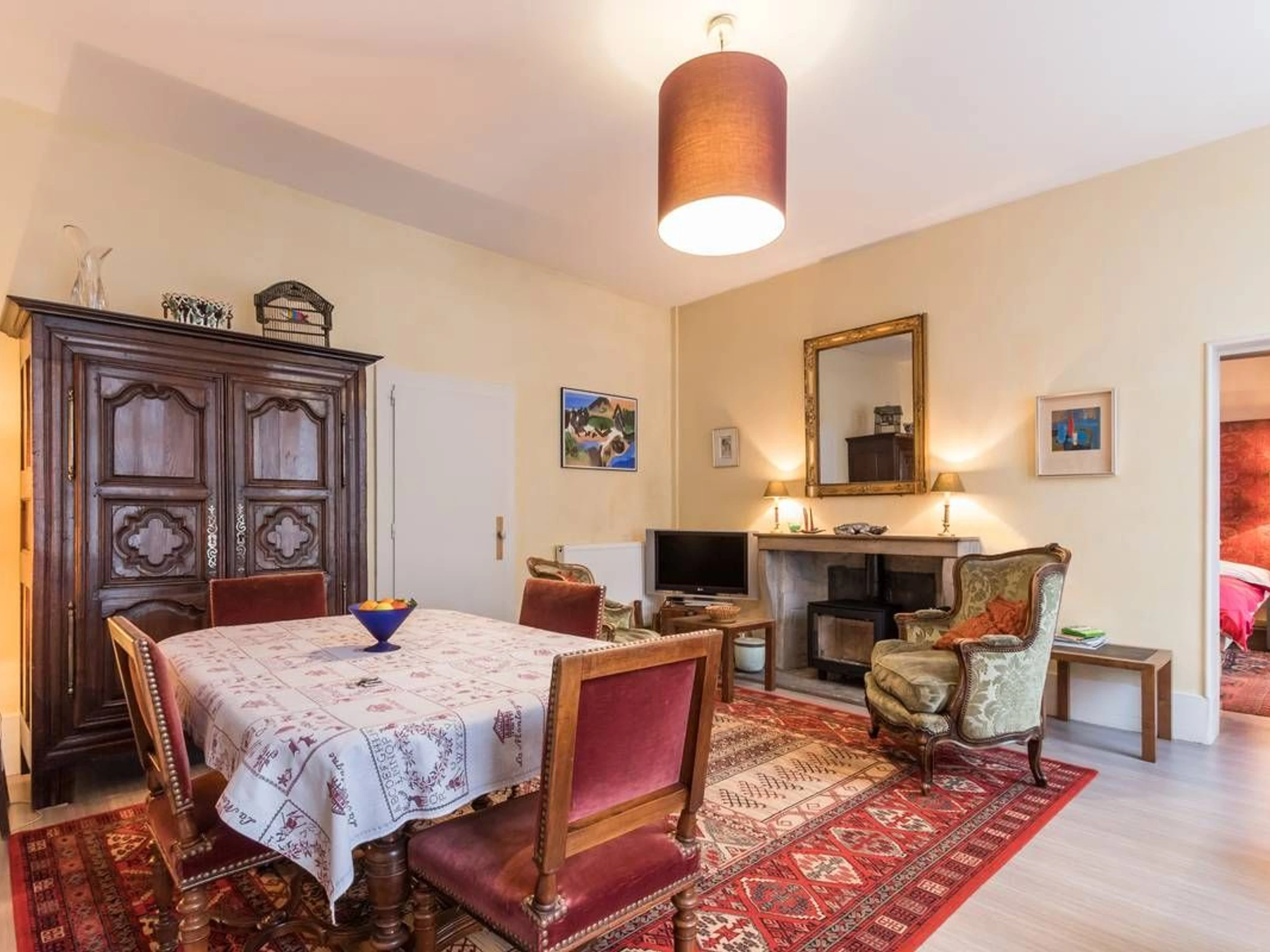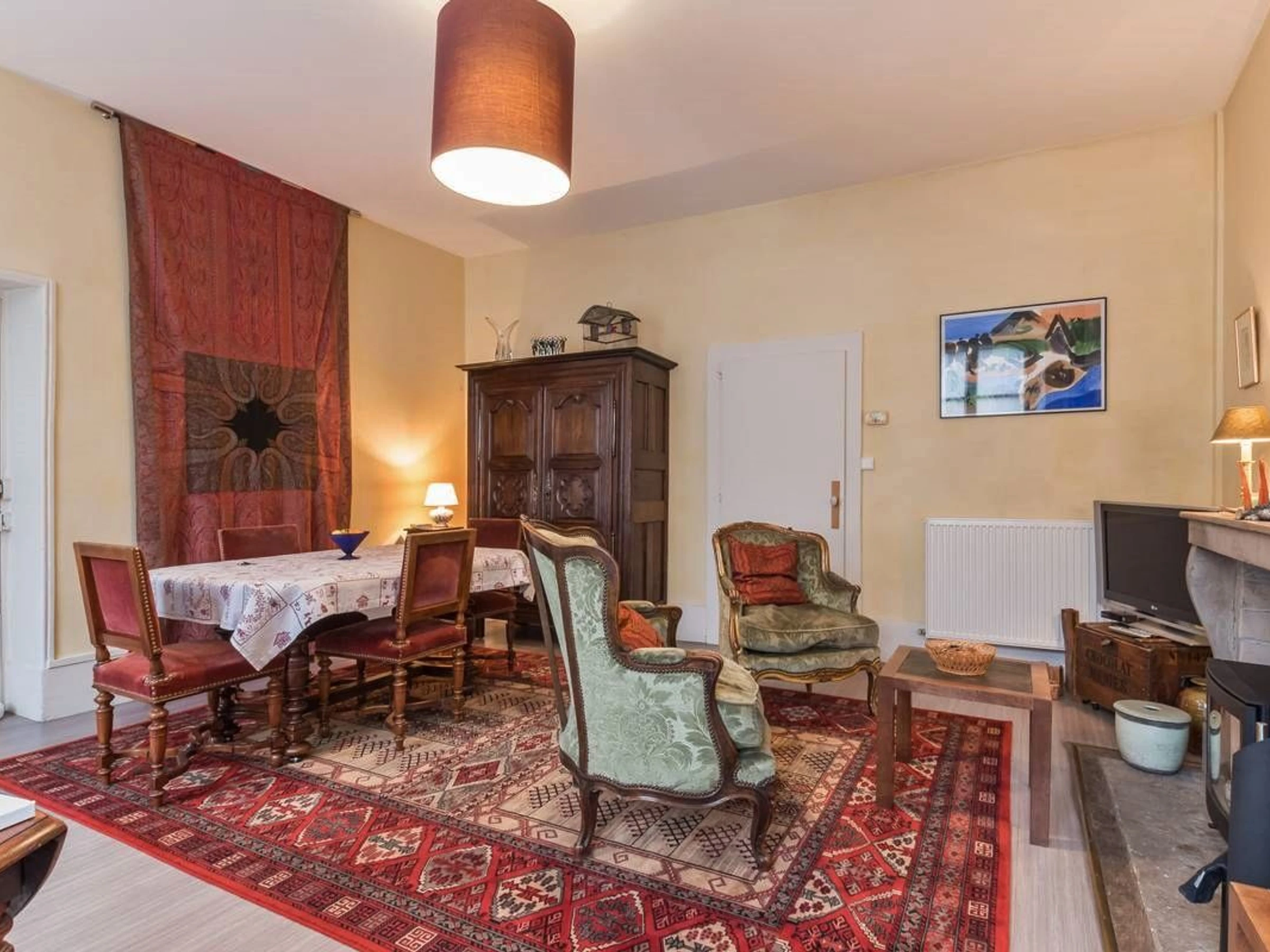 Entdecken Sie im alten Vesoul, nur einen Steinwurf von der St.-Georgs-Kirche, dem Place du Palais de Justice und dem Georges Garret Museum entfernt, die Reichtümer des historischen Zentrums, den überdachten Markt und die Einkaufsstraßen. Zu tun: der See und der Wasserpark Ludolac, das Theater, Kino, Bowling, Bike-Rail, Kartfahren... Festivals: Asiatische Kinos, Jacques-Brel-Festival... Im Herzen des historischen Zentrums von Vesoul wohnen Sie in einer sehr schönen Wohnung im Erdgeschoss des Herrenhauses aus dem 18. Jahrhundert, dem Hotel Lyautey de Genevreuille, das unter Denkmalschutz steht, gegenüber dem Hotel Thomassin, dem berühmten Haus des alten Vesoul, für seine prächtige Fassade. Sorgfältige und raffinierte Dekoration: Kaschmir-Wandteppiche, antike Möbel, Gemälde, Keramik, dekorative Kamine... Es umfasst: ein Wohn-/Esszimmer, ein Schlafzimmer (2 Einzelbetten 90/200), einen kostenlosen Ruhebereich von 8 m². (Ein Babybett kann bereitgestellt werden). Viel Stauraum. Eine moderne, voll ausgestattete Küche. Ein Badezimmer mit Toilette. Privatparkplatz im gemeinsamen Innenhof, nachts durch das schmiedeeiserne Tor verschlossen. Für Ihren Komfort: Handtücher, Bademäntel, Bettwäsche und bezogene Betten bei Ankunft. Nebenkosten und Reinigung inklusive. Glasfaser-WLAN.