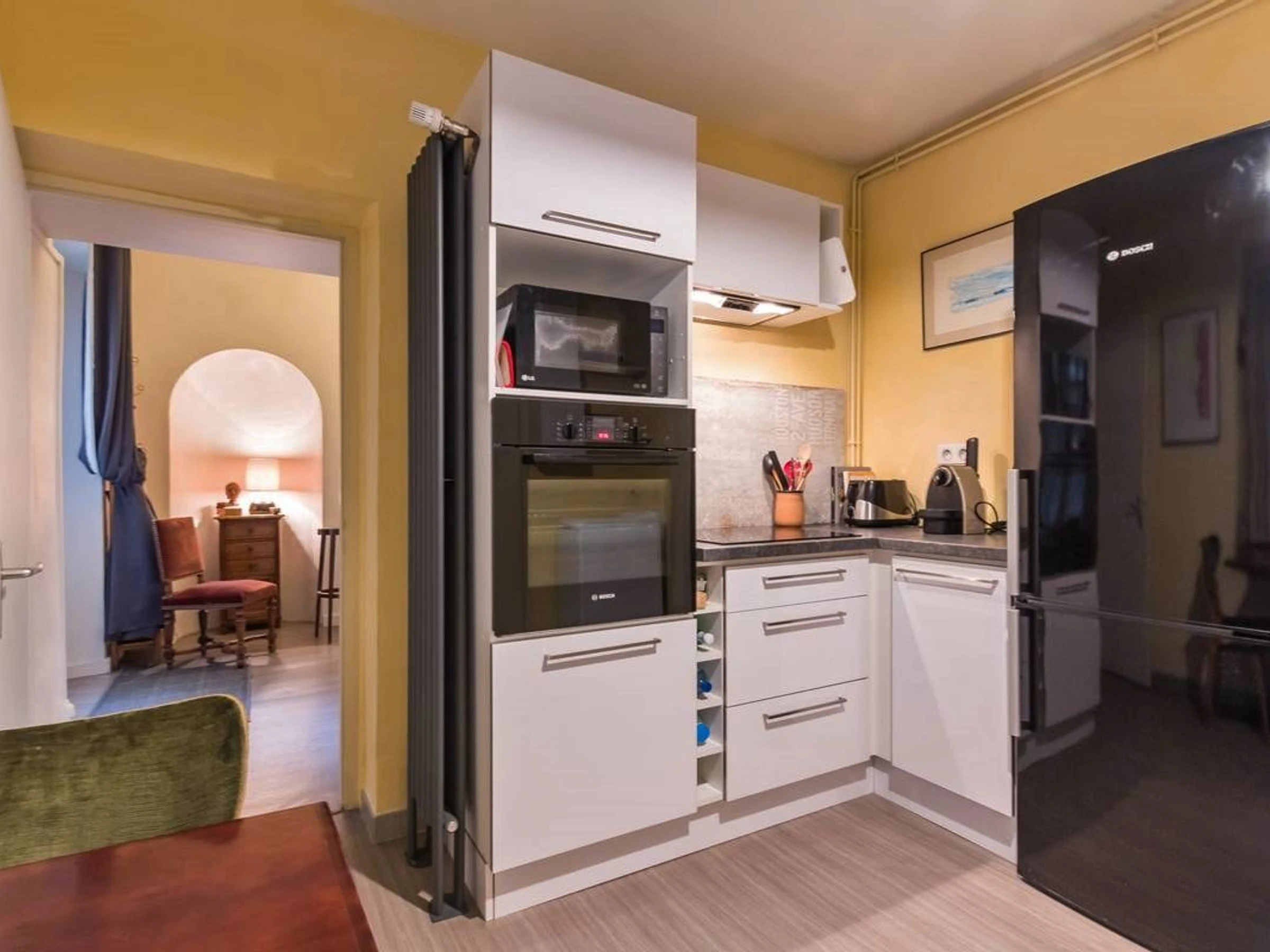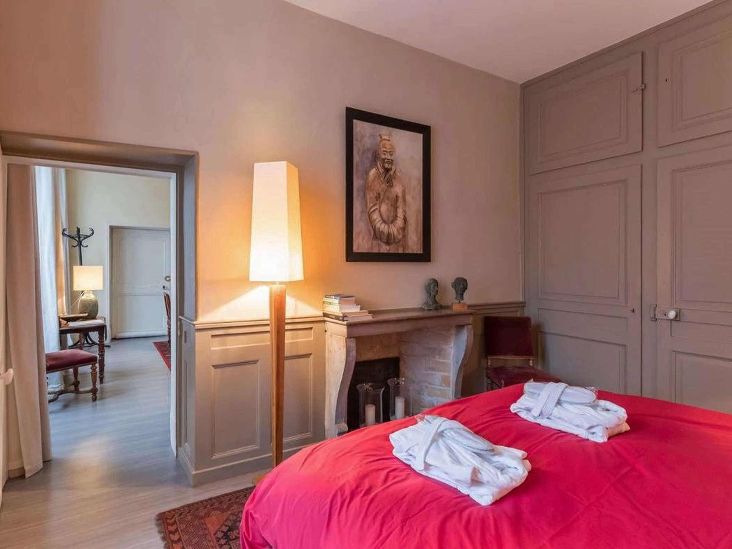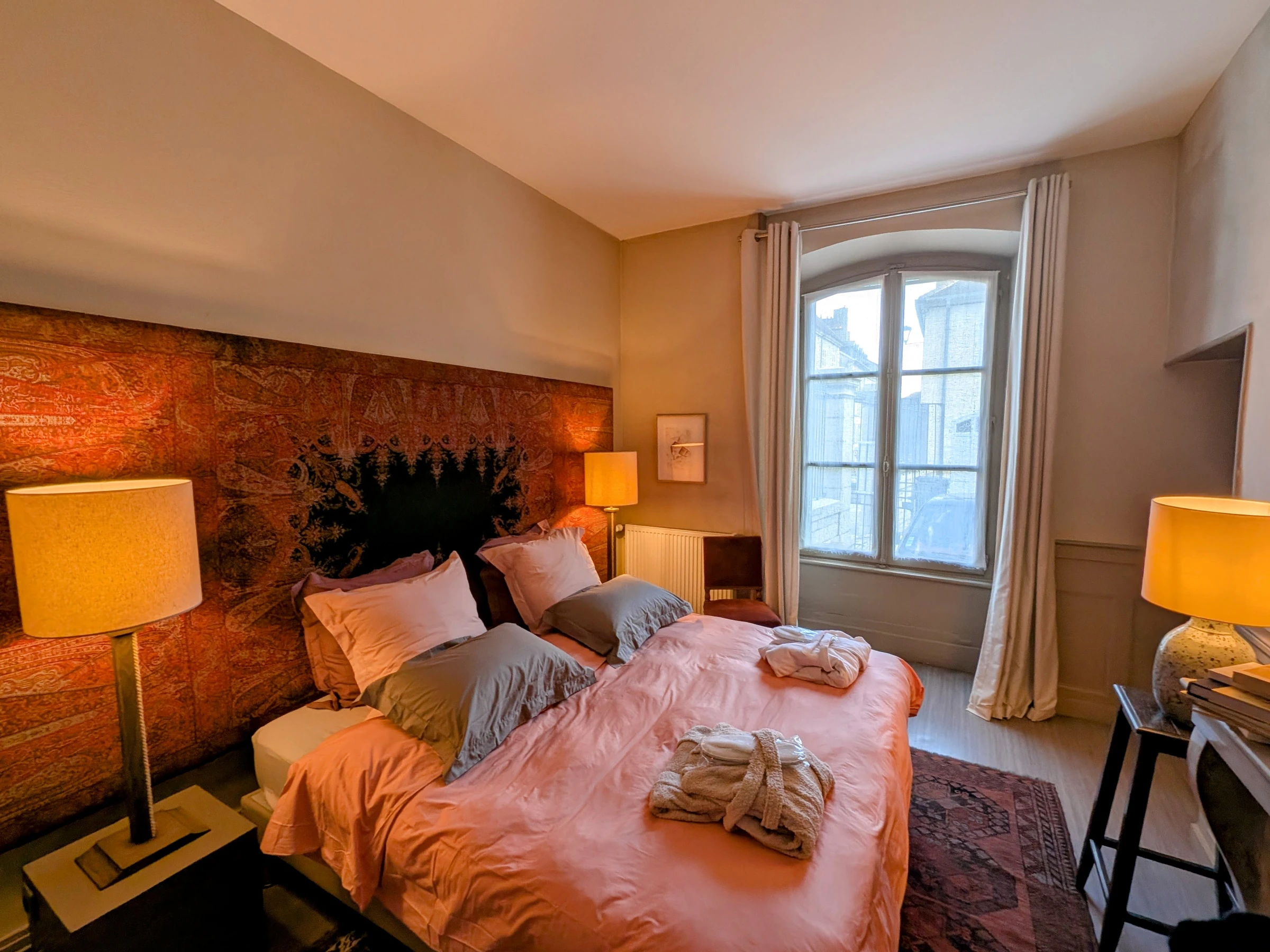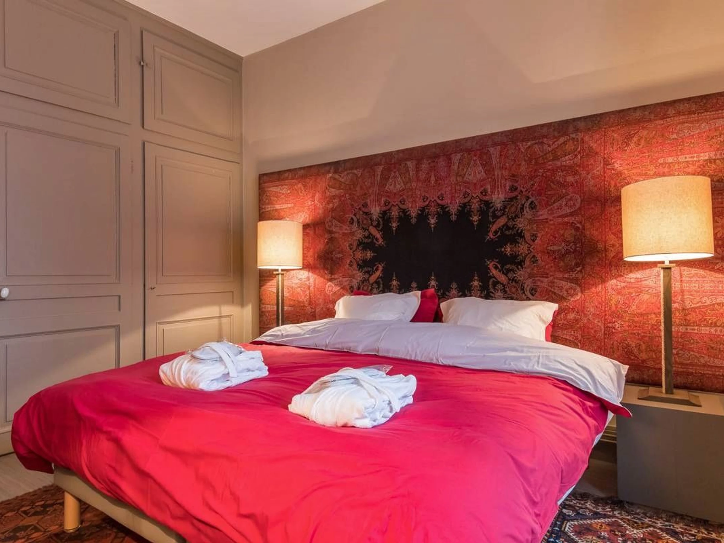 Entdecken Sie im alten Vesoul, nur einen Steinwurf von der St.-Georgs-Kirche, dem Place du Palais de Justice und dem Georges Garret Museum entfernt, die Reichtümer des historischen Zentrums, den überdachten Markt und die Einkaufsstraßen. Zu tun: der See und der Wasserpark Ludolac, das Theater, Kino, Bowling, Bike-Rail, Kartfahren... Festivals: Asiatische Kinos, Jacques-Brel-Festival... Im Herzen des historischen Zentrums von Vesoul wohnen Sie in einer sehr schönen Wohnung im Erdgeschoss des Herrenhauses aus dem 18. Jahrhundert, dem Hotel Lyautey de Genevreuille, das unter Denkmalschutz steht, gegenüber dem Hotel Thomassin, dem berühmten Haus des alten Vesoul, für seine prächtige Fassade. Sorgfältige und raffinierte Dekoration: Kaschmir-Wandteppiche, antike Möbel, Gemälde, Keramik, dekorative Kamine... Es umfasst: ein Wohn-/Esszimmer, ein Schlafzimmer (2 Einzelbetten 90/200), einen kostenlosen Ruhebereich von 8 m². (Ein Babybett kann bereitgestellt werden). Viel Stauraum. Eine moderne, voll ausgestattete Küche. Ein Badezimmer mit Toilette. Privatparkplatz im gemeinsamen Innenhof, nachts durch das schmiedeeiserne Tor verschlossen. Für Ihren Komfort: Handtücher, Bademäntel, Bettwäsche und bezogene Betten bei Ankunft. Nebenkosten und Reinigung inklusive. Glasfaser-WLAN.