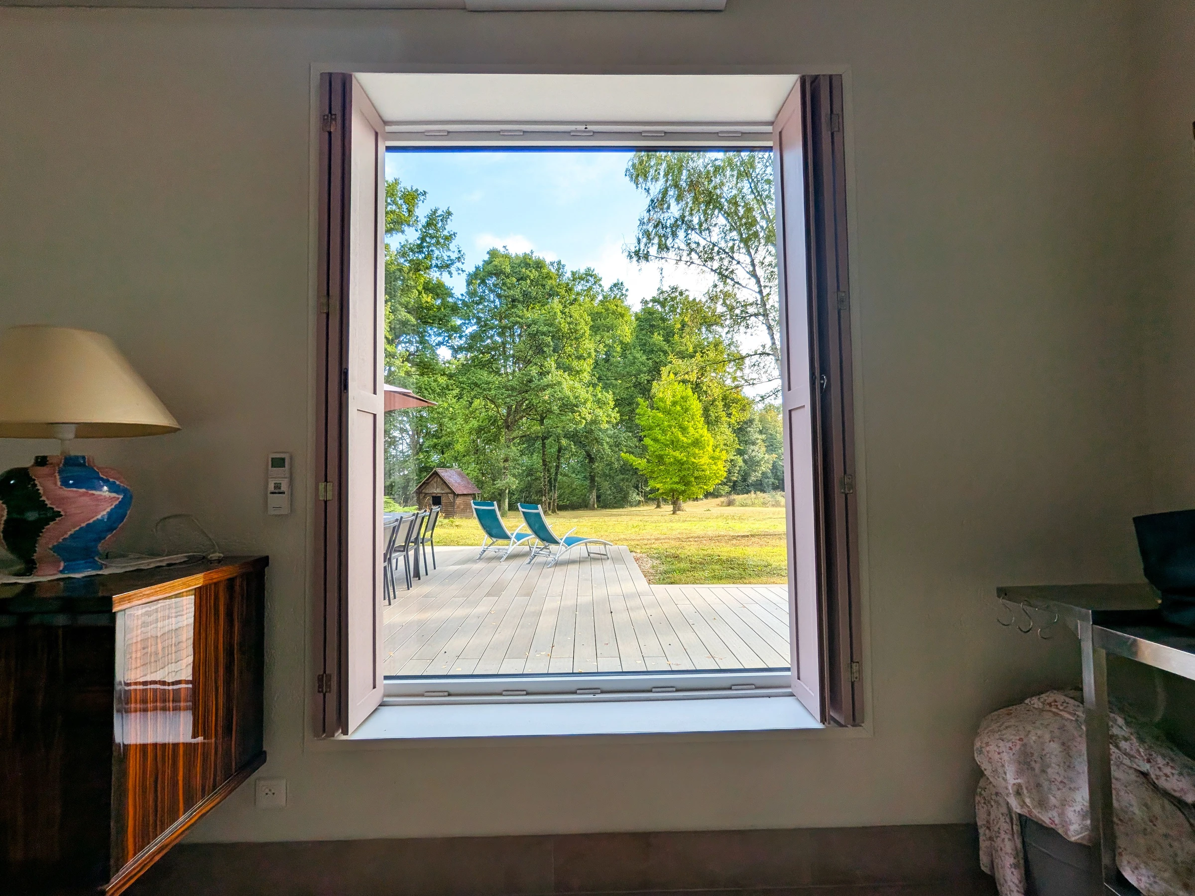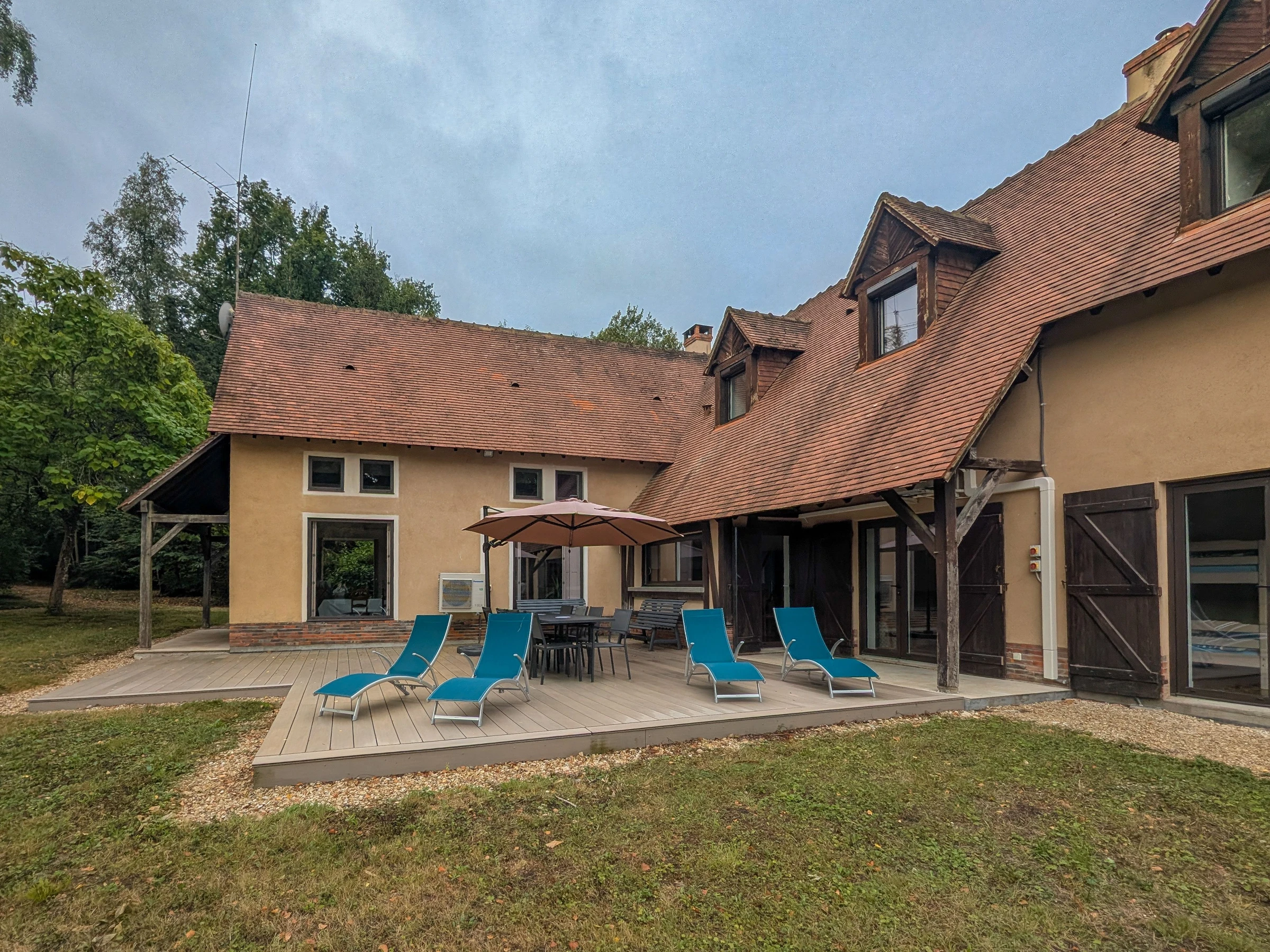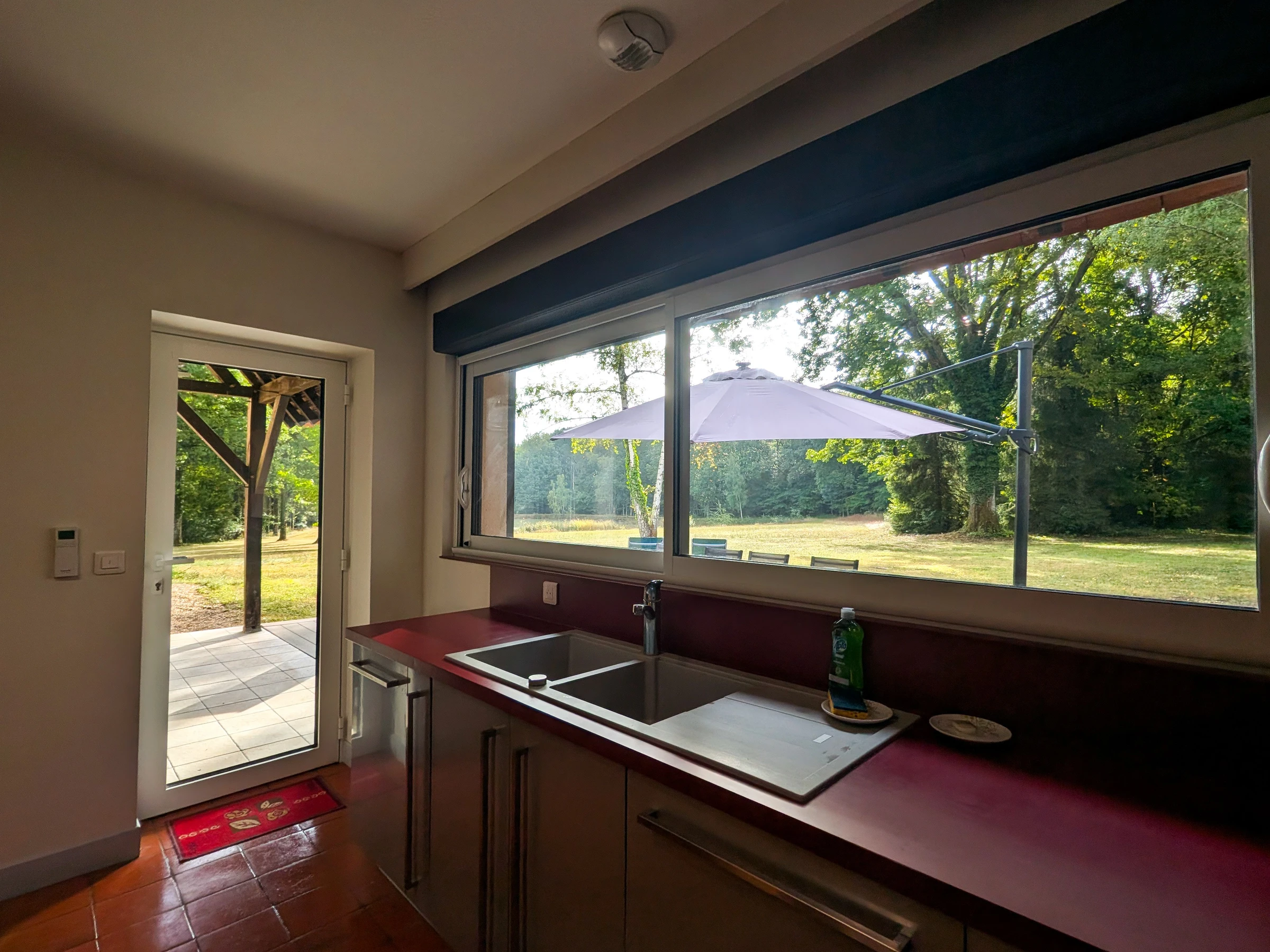 Im Herzen von Berry, nur 20 Minuten vom Zoopark Beauval und in der Nähe von Valençay und den majestätischen Schlössern des Loiretals entfernt, liegt dieses Architektenhaus eingebettet in üppiges Grün. Abgeschieden und ruhig gelegen, bietet es Blick auf einen 1 Hektar großen, bewaldeten Park mit einem herrlichen, 5.000 m² großen privaten Teich. Im Erdgeschoss: eine geräumige Eingangshalle, die zu einer Waschküche und einem separaten WC mit Waschbecken führt. Außerdem finden Sie ein Ess-/Wohnzimmer, eine voll ausgestattete Küche und ein großes, helles Wohnzimmer mit Essbereich und Sitzecke. Ein Familienschlafzimmer (ein Queensize-Bett und zwei Etagenbetten) vervollständigt diese Etage mit direktem Zugang zu einem Duschbad/WC.